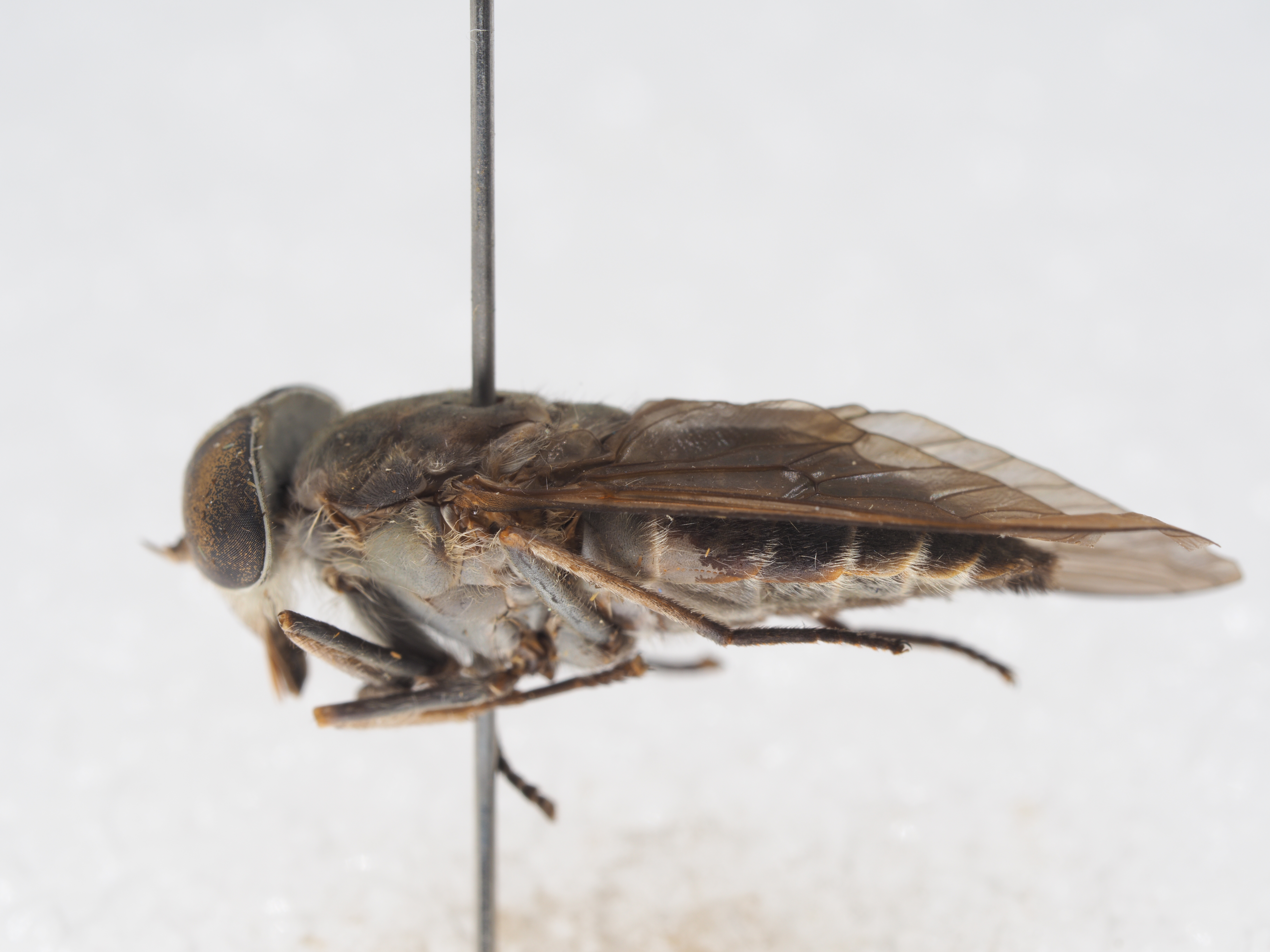 胸部盾片黑色,覆灰色粉被,有3条模糊的纵纹。小盾片纹饰同盾片。足黑色,胫节大部黄棕色,跗节黒色。翅透明,R4脉无附枝。