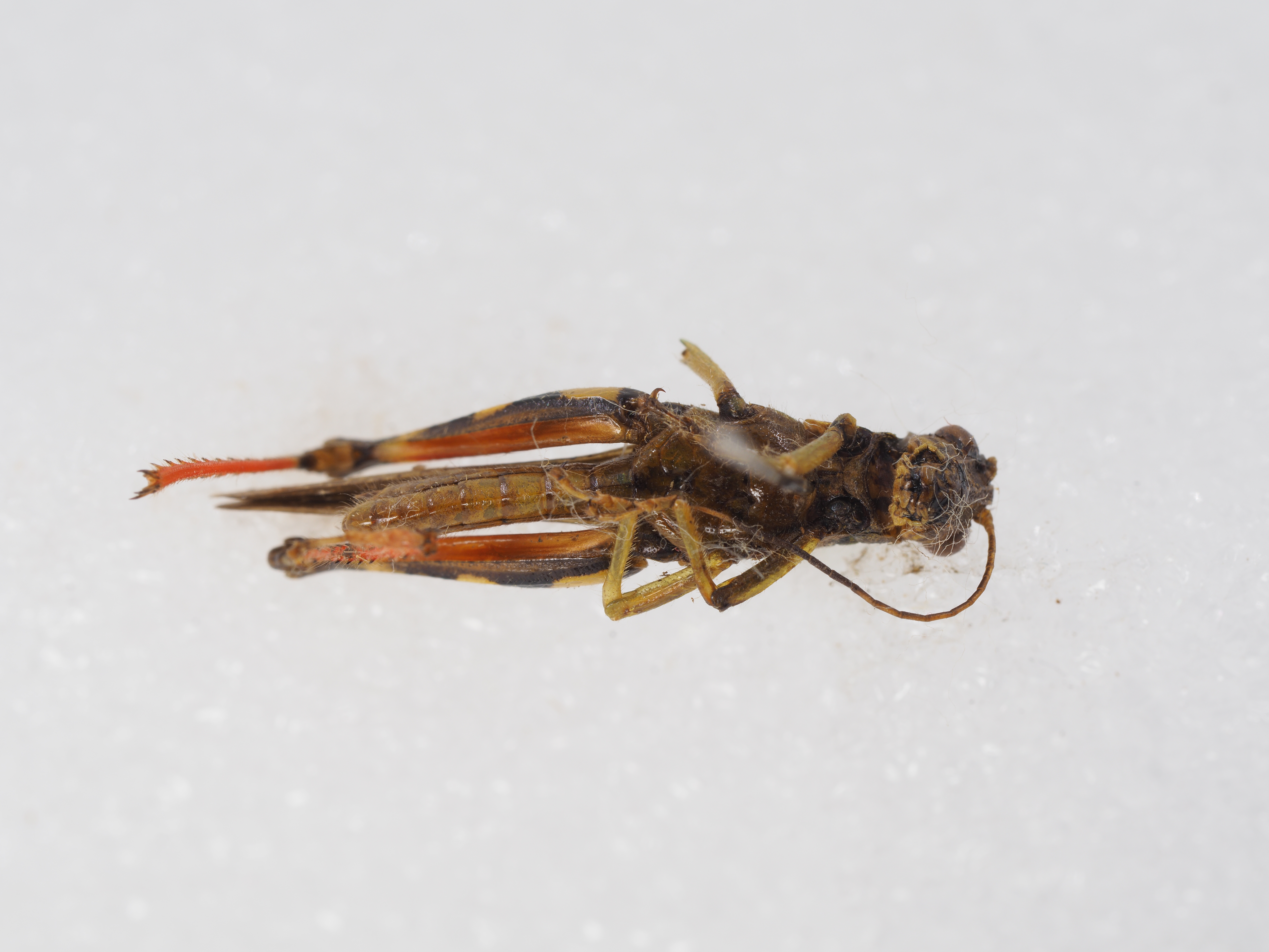 体长:♂16.0~19.0mm,♀22.0~27.0mm;前胸背板:♂4.3~5.3mm,♀5.4~7.0mm;前翅:♂14.0~17.0mm,♀16.0~22.0mm;后足股节:♂11.0~12.7mm,♀12.5~15.0mm。