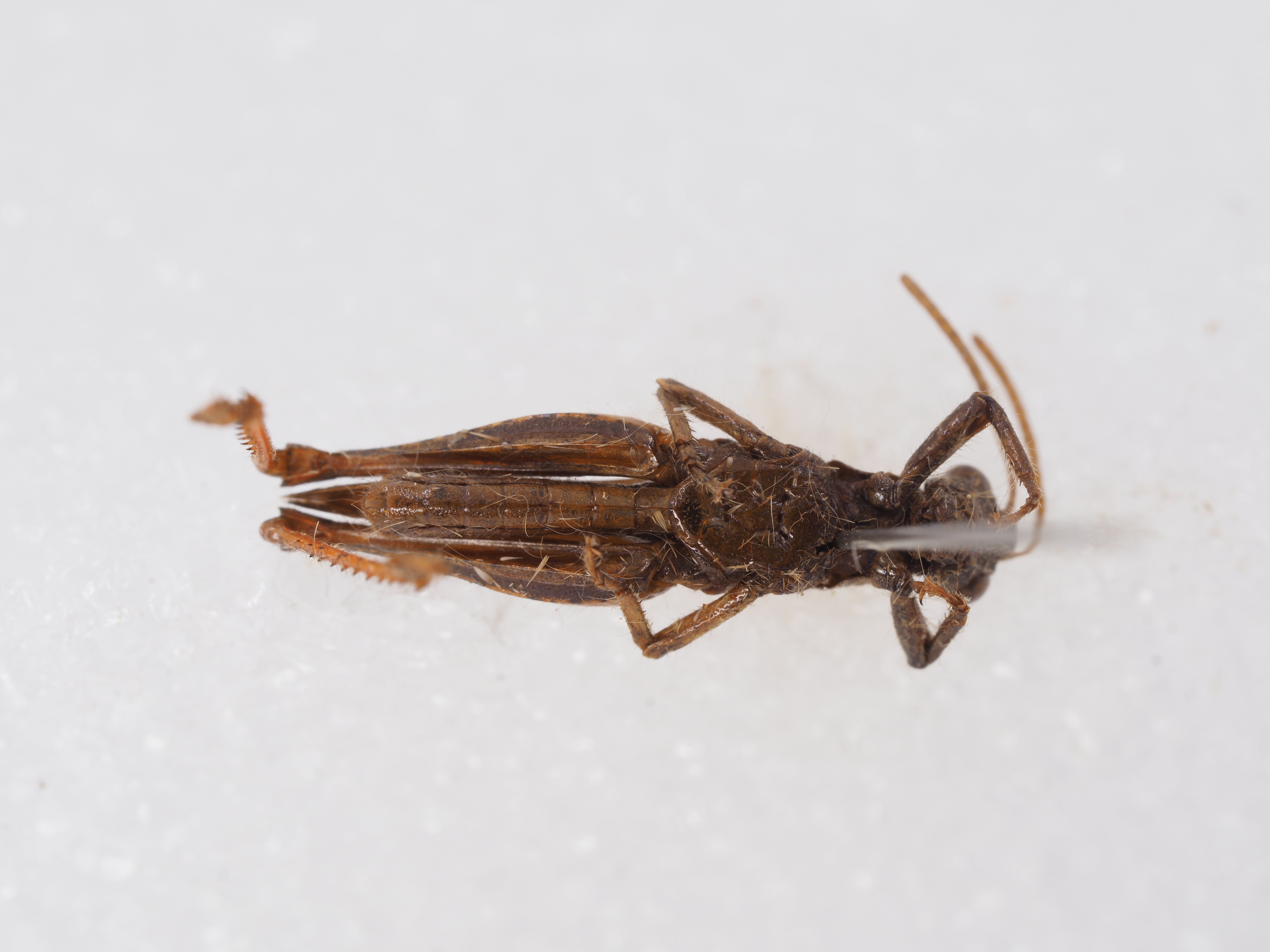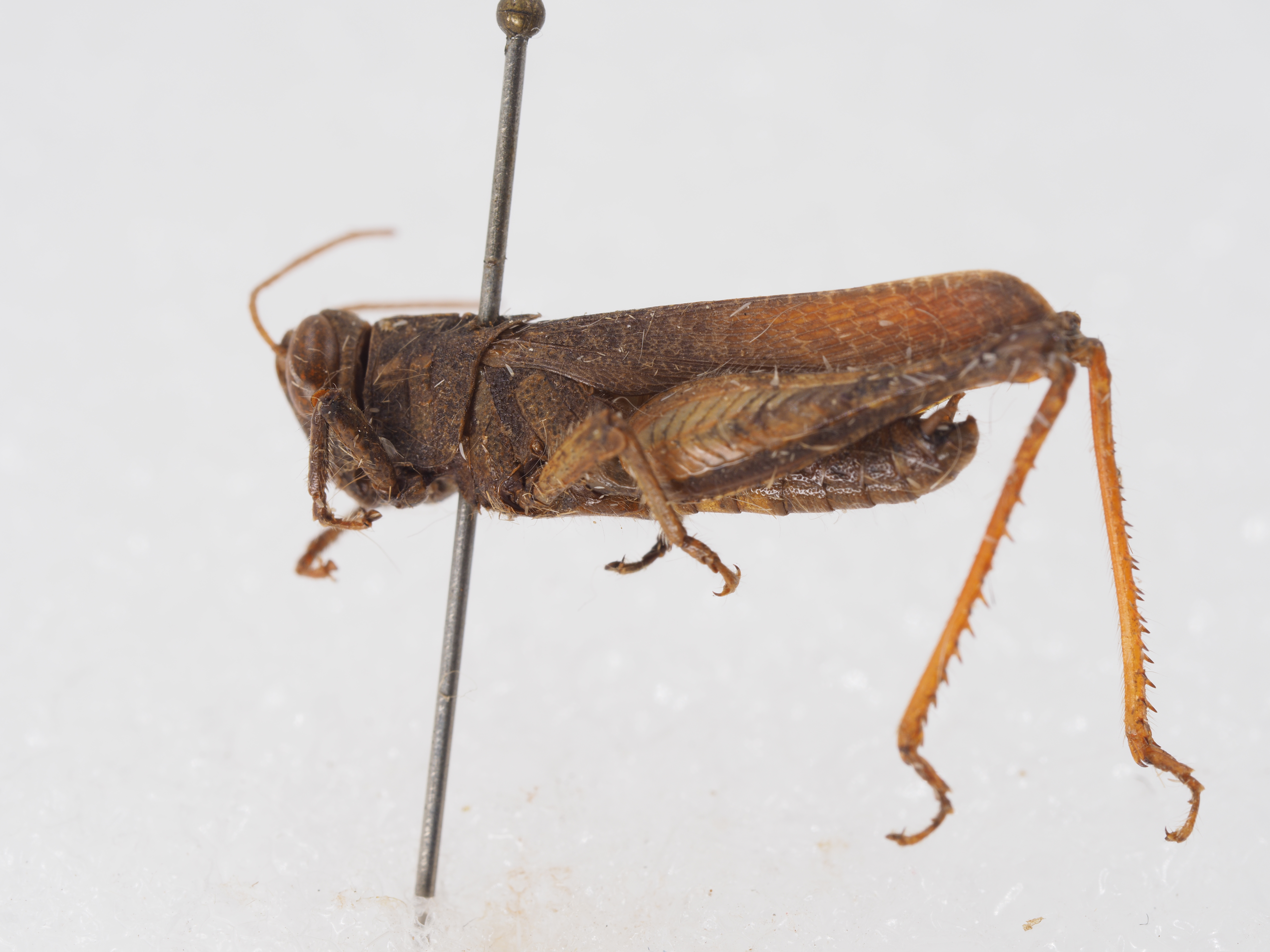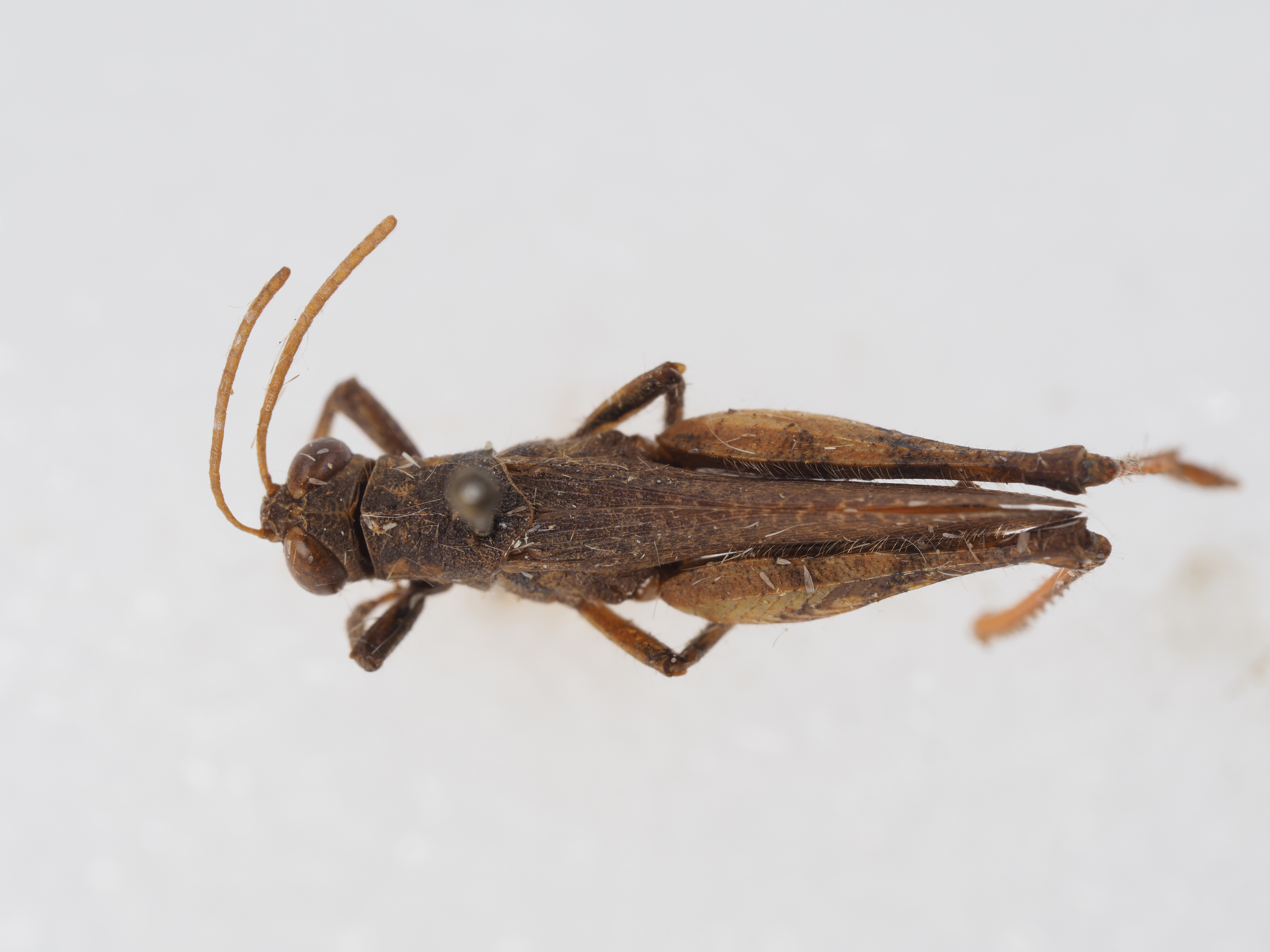 描述:雄性 体型较小,匀称,略具细刻点和稀疏绒毛。头较短,短于或等于前胸背板沟前区的长度。.头顶呈水平状,六角形,在复眼之间向后倾斜,具有侧隆线和中隆线,中隆延伸至后头较不明显。颜面隆起侧缘明显,在触角之间较宽;其宽约为头顶在复眼之间宽度的2~2.5倍;自至唇基处开始趋狭,缺纵沟,刻点密。复眼长卵形。触角丝状,其长到达或超过前胸背板后缘。前胸背板的前缘呈圆弧形,中央略微突出;后缘中央向后较突出,几乎呈直角形,顶端钝圆形;中隆线略隆起,仅被后横沟较深的切割;缺侧隆线;前横沟只在其背面清楚可见,中横沟略弯曲,后横沟位于近中部处。前、后翅均发达,其长度多数不到达或刚到达、仅小数略超过后足股节端部。前翅的前缘较直,基部具基突,端部呈圆弧形,端部之横脉略倾斜于纵脉;后翅端部边缘亦呈圆弧形,具有较小的凹口(图281c)。前胸腹板突短圆锥形,顶端略钝。中胸腹板侧叶宽略大于长,内缘较直,后缘略宽;中隔长度约等于宽度;后胸腹板侧叶明显分开。后足股节上侧上隆线具细齿,顶端中央形成小齿。膝侧片为圆形。后足胫节圆柱形,缺外端刺,外缘具刺8~10个,内缘具刺10~11个(包括内端刺)。跗节较短,不到达胫节的中部;中垫较大,但不超过爪之顶端。腹部末节背板后缘具有三角形尾片。肛上板长方形,略向后趋狭;顶端钝圓,两侧缘略隆起,基部中央具短纵沟。尾须圆锥形,向内弯,顶端较尖,其长超过肛上板顶端。下生殖板短锥形。