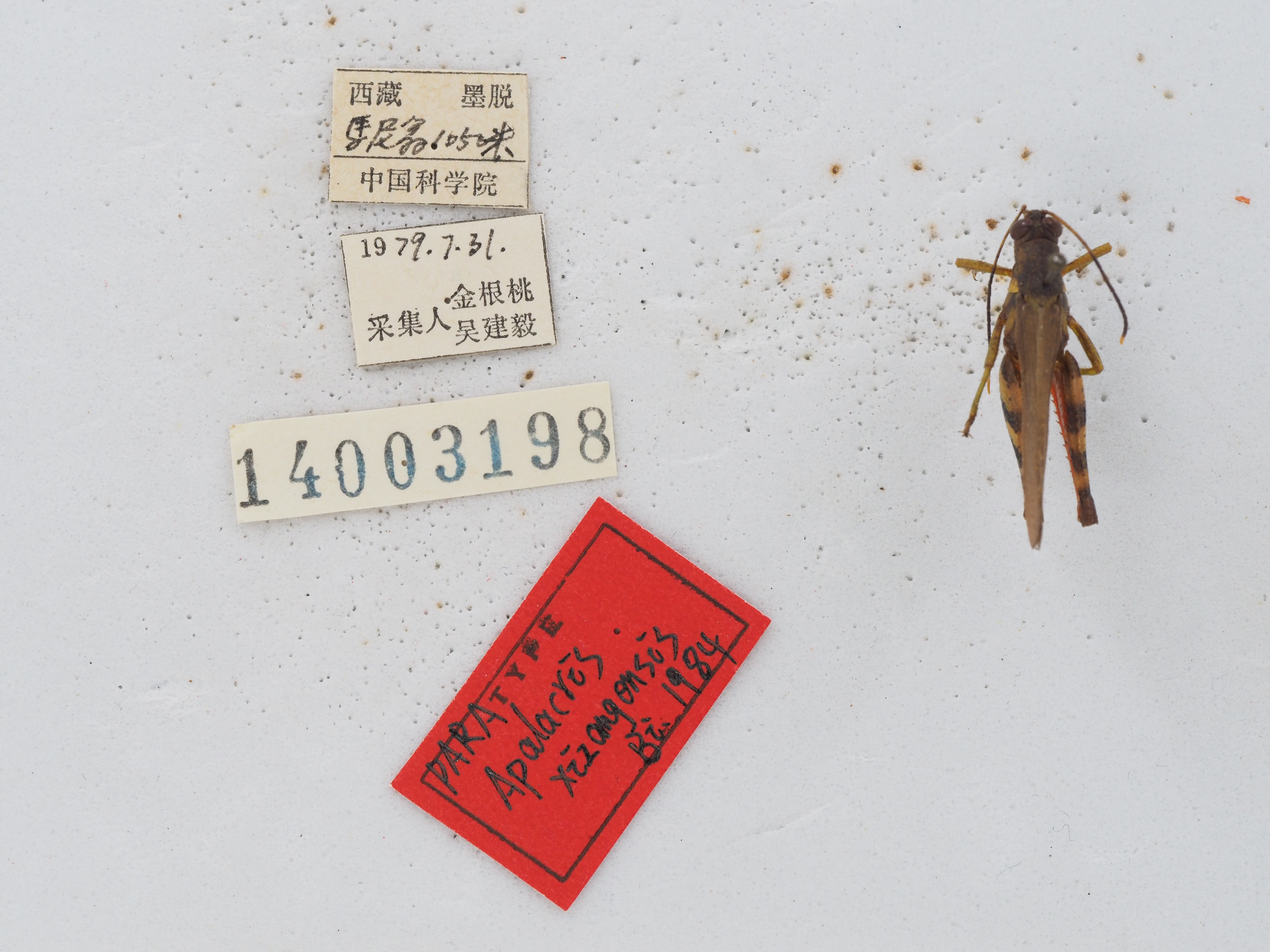 描述:雄性 体型中等。体匀称,具刻点和皱纹。腹面和足均具绒毛。头短,短于前胸背板。头顶向前倾斜,与颜面隆起组成圆弧形;头顶较狭,中央具纵沟,两侧缘明显隆起,后头具中隆线。颜面侧观略向后倾斜,颜面隆起具粗刻点,在触角之间略宽,自中央单眼之下略趋狭,并且纵沟,两侧缘在中央单眼下方处略收缩,其在复眼之间的宽度较狭于颜面隆起在触角之间的宽度。复眼长卵形,垂直的直径为其横径的2倍,其横径等于或短于眼下沟的长。触角细长,其长超过后足股节基部,其中段一节的长为宽的3.3~4.0倍。前胸背板近乎圆筒形,沟后区略向外扩展;前缘圆弧形,后缘近乎直角;中隆线明显,缺侧隆线;3条横沟均切割中隆线,后横沟约位于中部。前胸背板侧叶之长大于高,其前下角近乎直角,后下角钝圆。前胸腹板突为短锥形,顶端较尖。中胸腹板侧叶长宽相等或略大于长,内缘为圆弧形;侧叶间中隔宽大于长;后胸腹板侧叶明显分开。前、后翅均发达,其长超过后足股节顶端;前翅前缘基部较扩大,顶端近圆形斜切。后足股节粗壮,其长为宽的3.7~4.2倍;上侧中隆线具细齿;下膝侧片近圆形。后足胫节端部边缘不扩大,缺外端刺,沿其外缘具刺7~10个,内缘具刺8~10个。后足跗节较短,不超过胫节中部,其第3节长约为其余2节长度之和。腹部末节背板后缘缺尾片。尾须为短圆锥形,不超过肛上板顶端。肛上板为长三角形,顶端圆形。下生殖板圆锥形。阳具基背片见(图271b)。