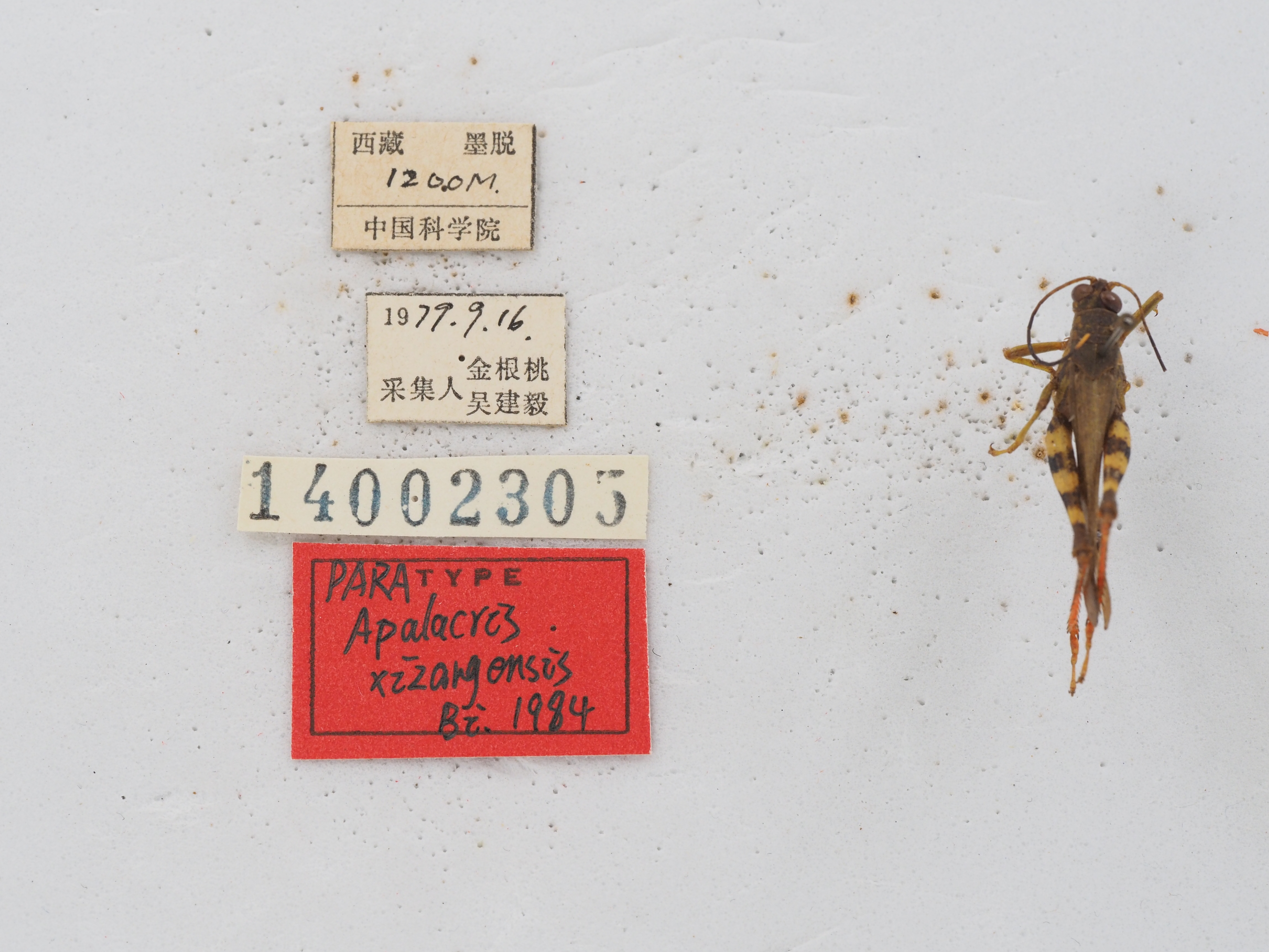 描述:雄性 体型中等。体匀称,具刻点和皱纹。腹面和足均具绒毛。头短,短于前胸背板。头顶向前倾斜,与颜面隆起组成圆弧形;头顶较狭,中央具纵沟,两侧缘明显隆起,后头具中隆线。颜面侧观略向后倾斜,颜面隆起具粗刻点,在触角之间略宽,自中央单眼之下略趋狭,并且纵沟,两侧缘在中央单眼下方处略收缩,其在复眼之间的宽度较狭于颜面隆起在触角之间的宽度。复眼长卵形,垂直的直径为其横径的2倍,其横径等于或短于眼下沟的长。触角细长,其长超过后足股节基部,其中段一节的长为宽的3.3~4.0倍。前胸背板近乎圆筒形,沟后区略向外扩展;前缘圆弧形,后缘近乎直角;中隆线明显,缺侧隆线;3条横沟均切割中隆线,后横沟约位于中部。前胸背板侧叶之长大于高,其前下角近乎直角,后下角钝圆。前胸腹板突为短锥形,顶端较尖。中胸腹板侧叶长宽相等或略大于长,内缘为圆弧形;侧叶间中隔宽大于长;后胸腹板侧叶明显分开。前、后翅均发达,其长超过后足股节顶端;前翅前缘基部较扩大,顶端近圆形斜切。后足股节粗壮,其长为宽的3.7~4.2倍;上侧中隆线具细齿;下膝侧片近圆形。后足胫节端部边缘不扩大,缺外端刺,沿其外缘具刺7~10个,内缘具刺8~10个。后足跗节较短,不超过胫节中部,其第3节长约为其余2节长度之和。腹部末节背板后缘缺尾片。尾须为短圆锥形,不超过肛上板顶端。肛上板为长三角形,顶端圆形。下生殖板圆锥形。阳具基背片见(图271b)。