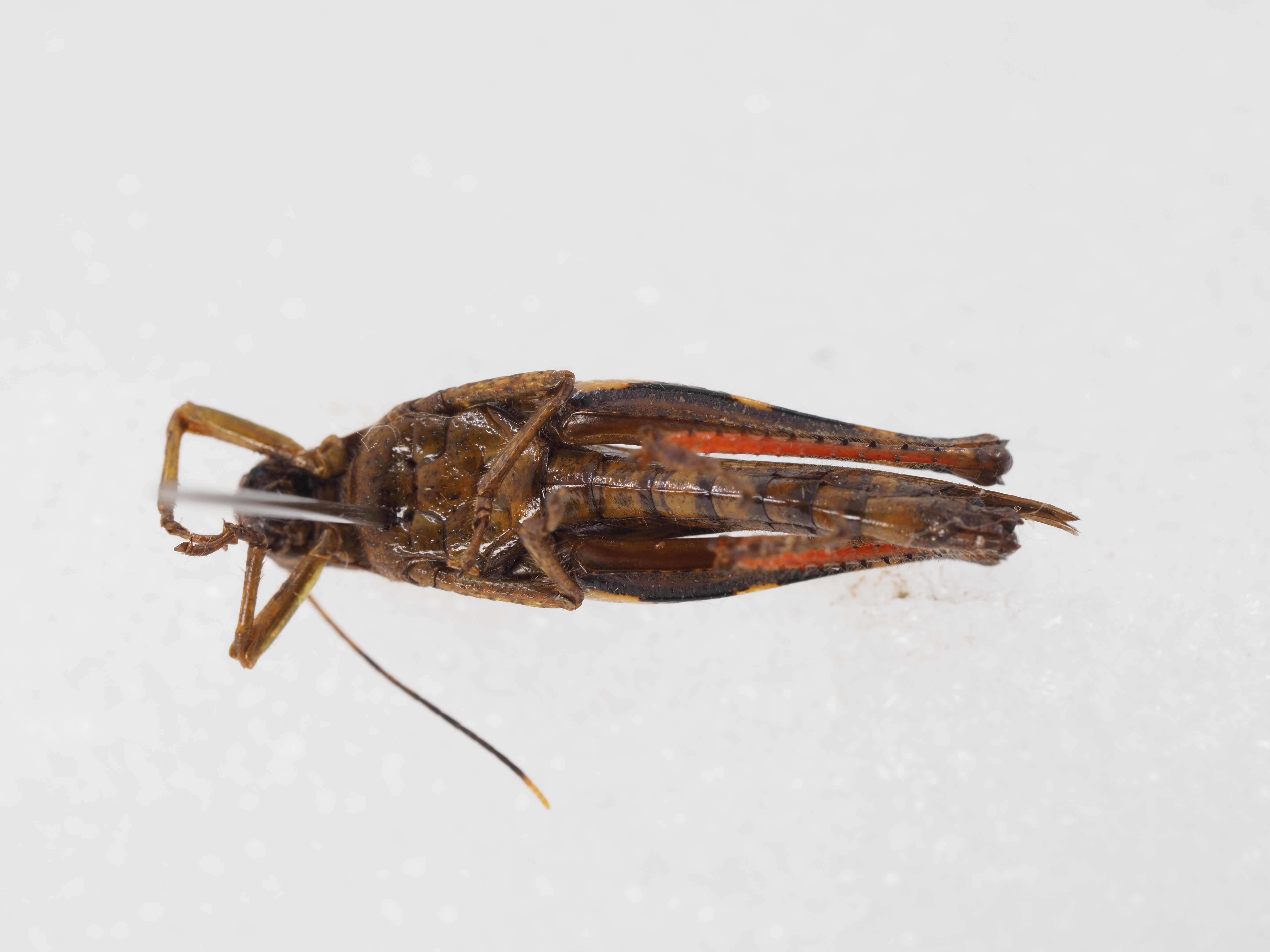 体长:♂18.0~20.0mm,♀26.0~30.0mm;前胸背板:♂4.6~5.0mm,♀6.6~7.5mm;前翅:♂16.0~18.0mm,♀22.0~24.0mm;后足股节:♂11.5~12.8mm,♀15.0~17.0mm。