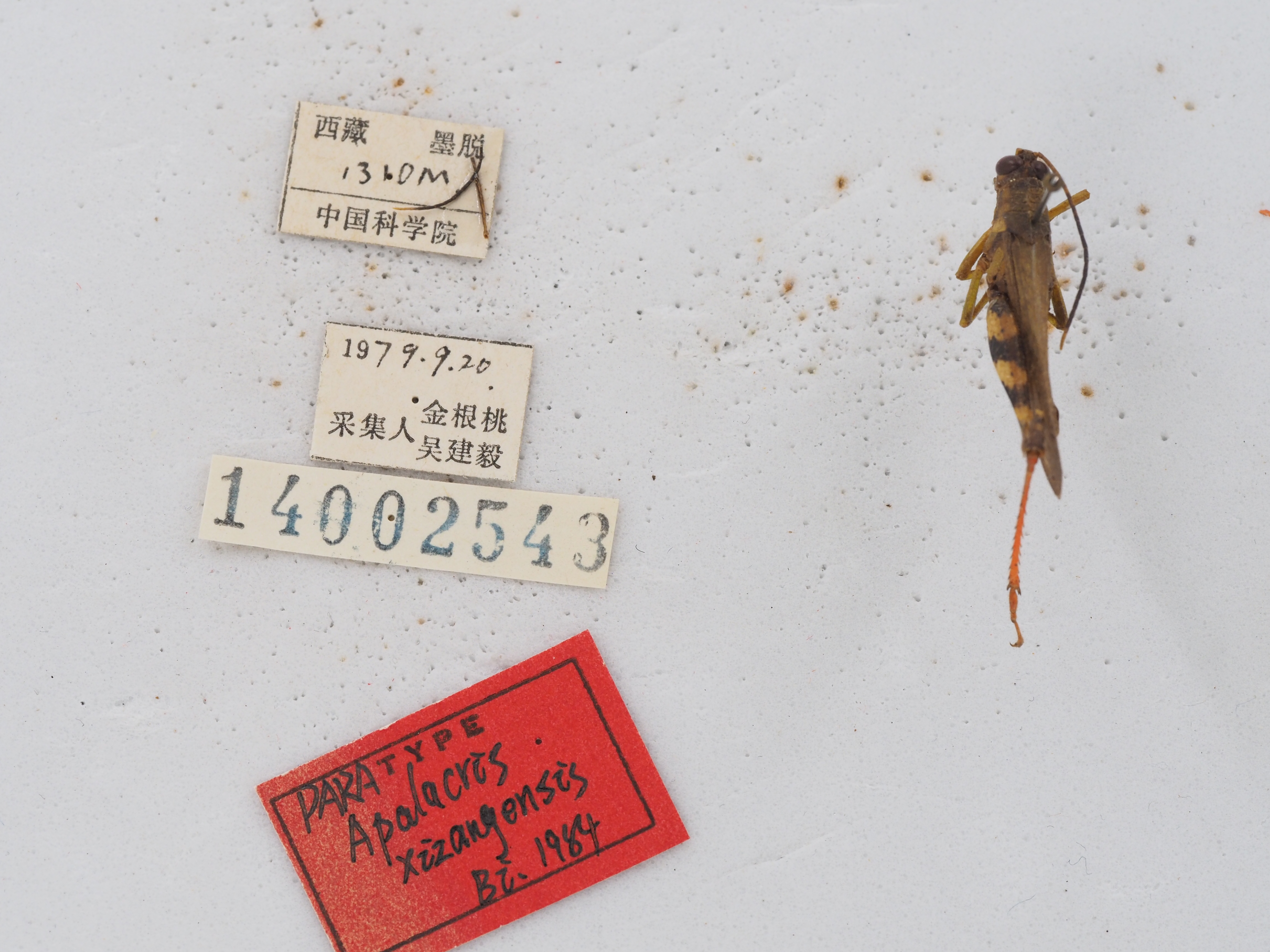 描述:雄性 体型中等。体匀称,具刻点和皱纹。腹面和足均具绒毛。头短,短于前胸背板。头顶向前倾斜,与颜面隆起组成圆弧形;头顶较狭,中央具纵沟,两侧缘明显隆起,后头具中隆线。颜面侧观略向后倾斜,颜面隆起具粗刻点,在触角之间略宽,自中央单眼之下略趋狭,并且纵沟,两侧缘在中央单眼下方处略收缩,其在复眼之间的宽度较狭于颜面隆起在触角之间的宽度。复眼长卵形,垂直的直径为其横径的2倍,其横径等于或短于眼下沟的长。触角细长,其长超过后足股节基部,其中段一节的长为宽的3.3~4.0倍。前胸背板近乎圆筒形,沟后区略向外扩展;前缘圆弧形,后缘近乎直角;中隆线明显,缺侧隆线;3条横沟均切割中隆线,后横沟约位于中部。前胸背板侧叶之长大于高,其前下角近乎直角,后下角钝圆。前胸腹板突为短锥形,顶端较尖。中胸腹板侧叶长宽相等或略大于长,内缘为圆弧形;侧叶间中隔宽大于长;后胸腹板侧叶明显分开。前、后翅均发达,其长超过后足股节顶端;前翅前缘基部较扩大,顶端近圆形斜切。后足股节粗壮,其长为宽的3.7~4.2倍;上侧中隆线具细齿;下膝侧片近圆形。后足胫节端部边缘不扩大,缺外端刺,沿其外缘具刺7~10个,内缘具刺8~10个。后足跗节较短,不超过胫节中部,其第3节长约为其余2节长度之和。腹部末节背板后缘缺尾片。尾须为短圆锥形,不超过肛上板顶端。肛上板为长三角形,顶端圆形。下生殖板圆锥形。阳具基背片见(图271b)。