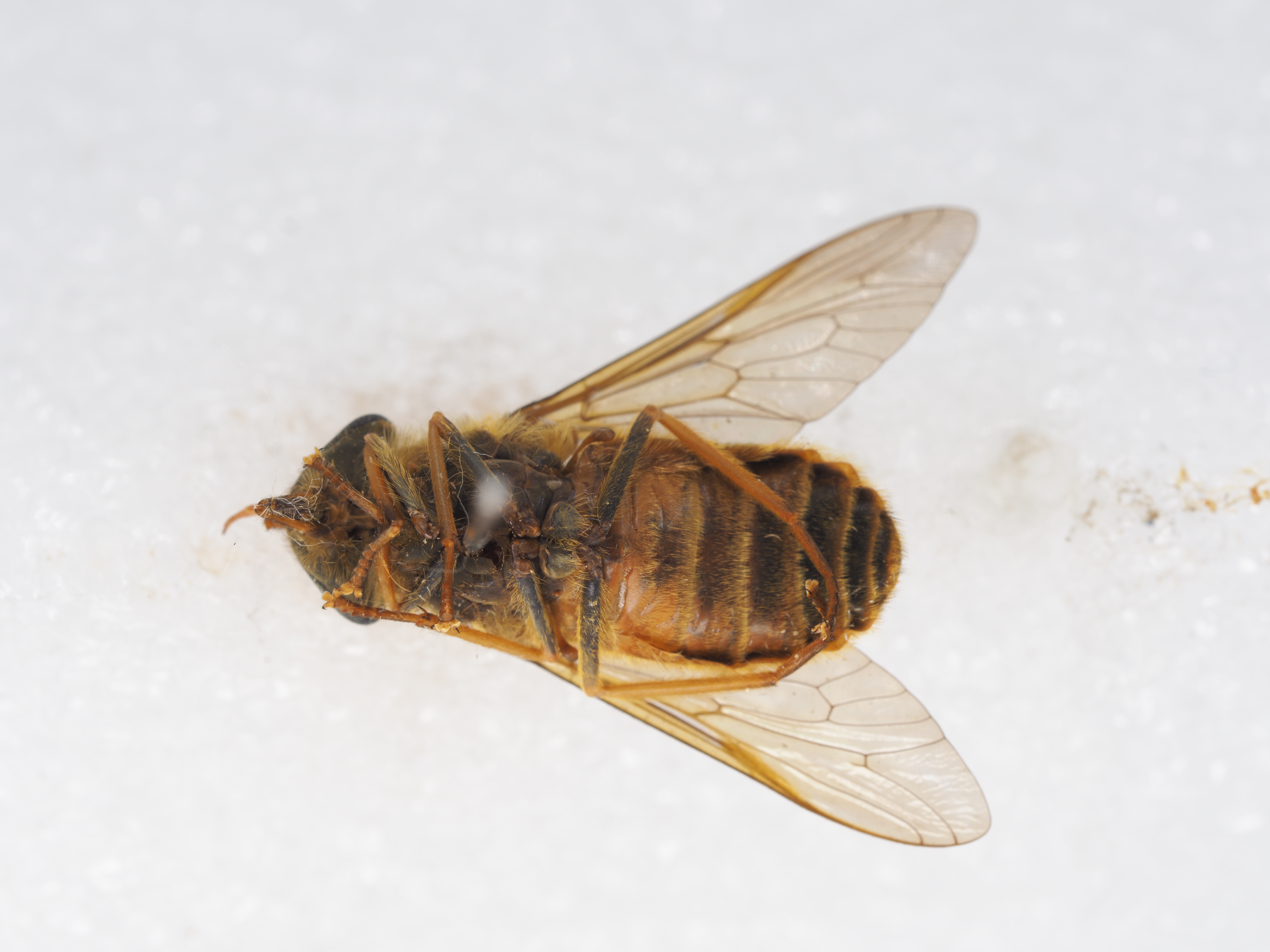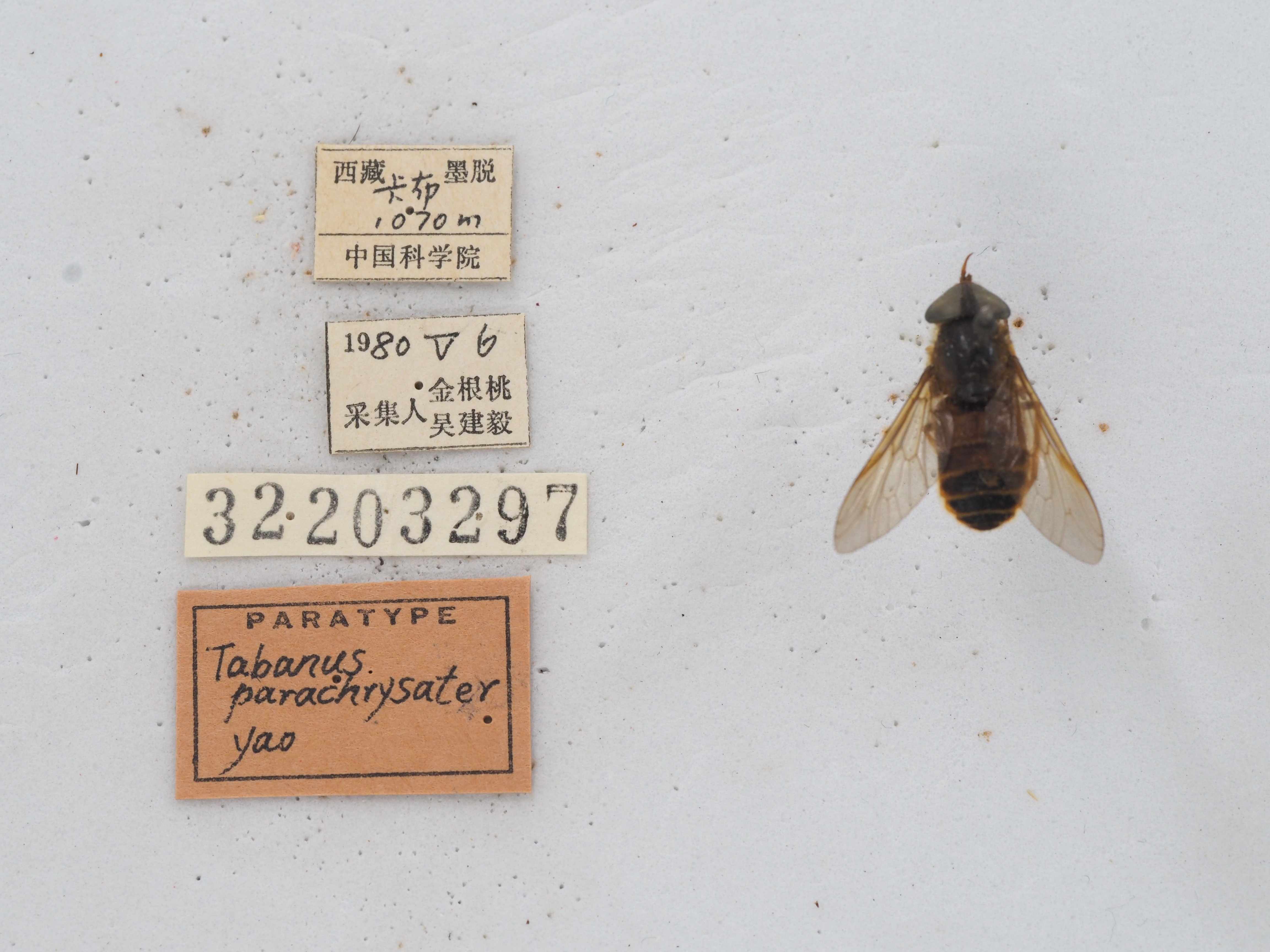 描述:雌虫体长17毫米。头部前额(frons)黑色,覆棕黄色粉被,顶部宽于基部,高约为基宽的5.5倍;基胛(basal callus)三角形,棕黑色,下缘有三个突出,中央一个突出与亚胛(subcallus)接触,两侧与眼分离;中胛(median callus)棒状,与基胛紧密接连;有的副模基胛下缘突起不明显,亚胛覆棕黄色粉被;颊(gena)上部及颜(face)覆棕黄色粉被,但浅于亚胛,颊下部灰黄色,着生黄毛,上部着生黑毛多触角第1、2节棕黄色,着生黑毛及少量黄毛,第3节棕红色,第1环节近基部有直角突,最末一个环节末端色暗;下颚须(palpi)第2节棕黄色,长约为最宽处4倍,密覆黑毛,副模夹少量黄毛。