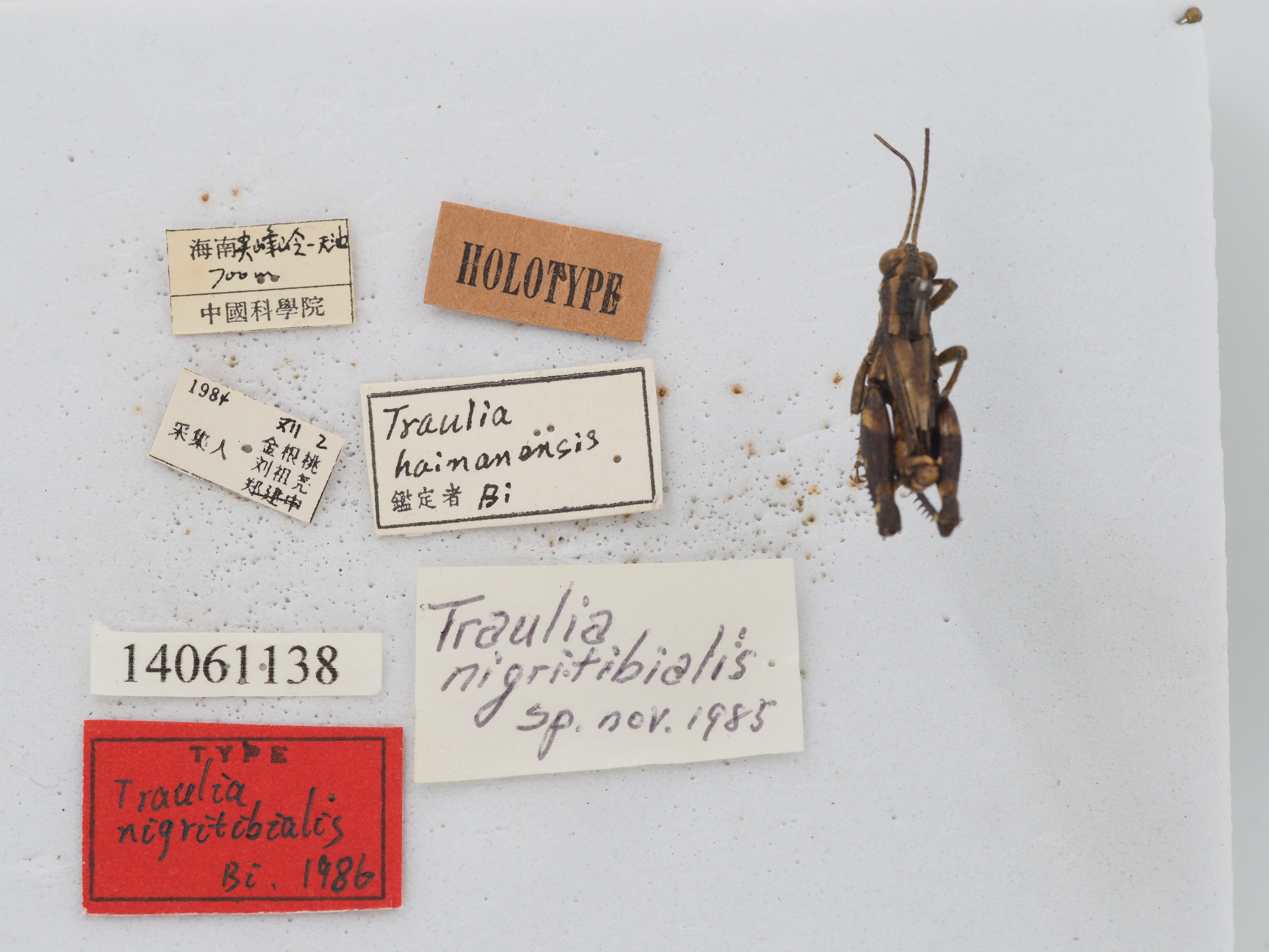 描述:雄性 体型中等,体表具粗刻点和皱纹。头大而短,较短于前胸背板。头顶向前倾斜,背面较低凹,颜面隆起在触角之间颇向前突出;其在复眼之间的宽度约为颜面隆起在触角之间宽度的2.2倍;全长具纵沟,两侧不平行,近上唇基略向外扩展;颜面侧隆线明显,略弯。复眼卵圆形,向外突出。触角丝状,21节,超过前胸背板的后缘,到达后足股节基部。前胸背板圆筒形,前缘较直,缺三角形凹口,后缘为钝角形向后突出;中隆线较隆起,全长明显;缺侧隆线;3条横沟明显深切中隆线,沟前区较长,约为沟后区长的1.6倍。前胸腹板突为圆锥形,顶端较钝。中胸腹板侧叶间之中隔较宽,其宽度大于长度;后胸腹板侧叶较宽地分开。前、后翅较短,到达或超过后足股节中部。后足股节略粗壮,上隆线具细齿;下膝侧片端部为圆弧形。后足胫节略弯,端部不扩大,缺外端刺,胫节刺外缘具刺7个,内缘具刺7~8个(包括端刺)。腹部向上翘起,腹部末节背面后缘中央两侧各具一个小点状尾片。肛上板为盾形,顶端略锐,基部中央较低凹,两侧中部各具一个较高的突起。尾须侧扁,基部较宽,端部呈刀状,中央略狭,其长超肛上板的端部。下生殖板短锥形,向上翘。阳具基背片和阳具复合体见图257d~e。