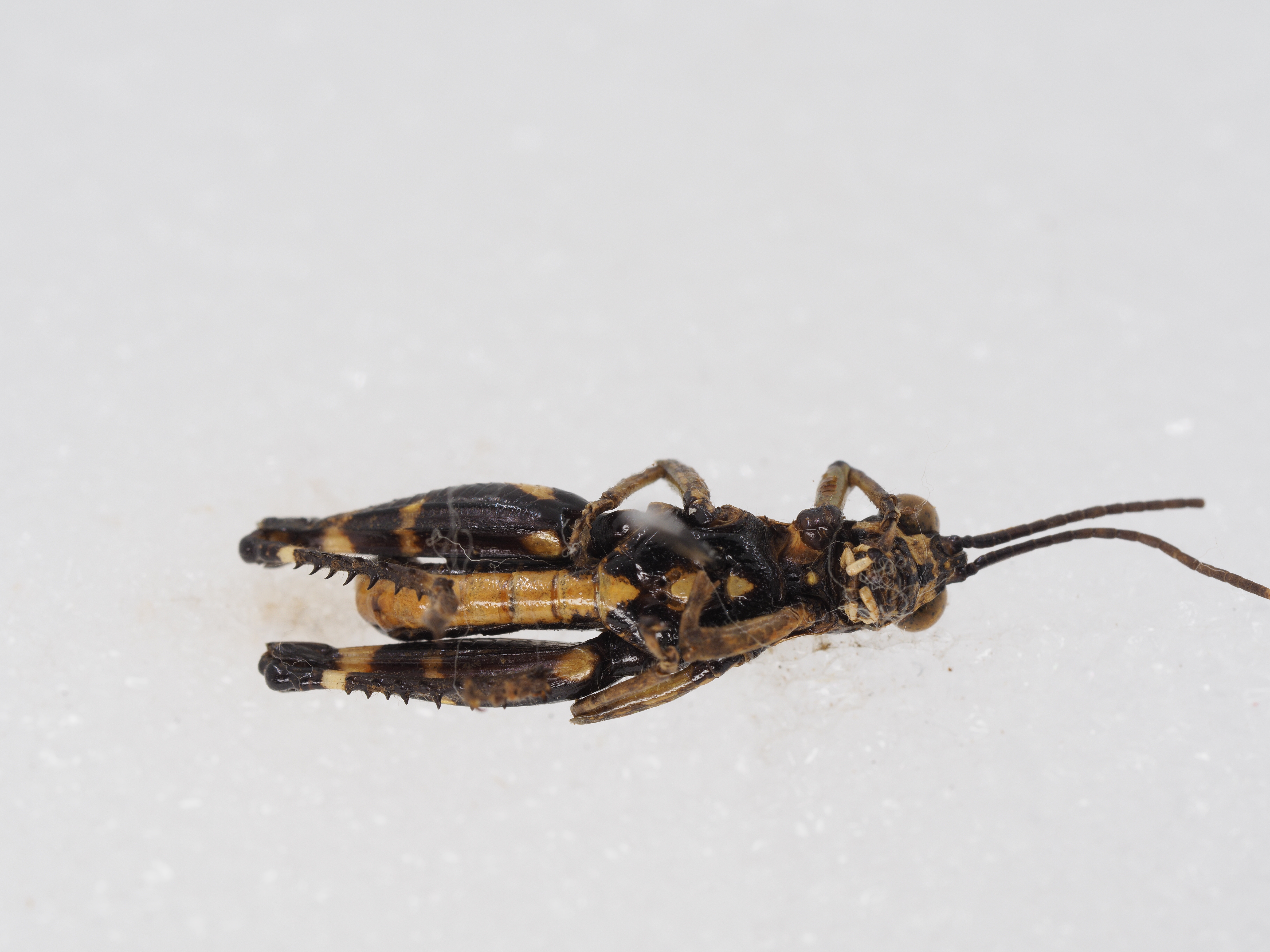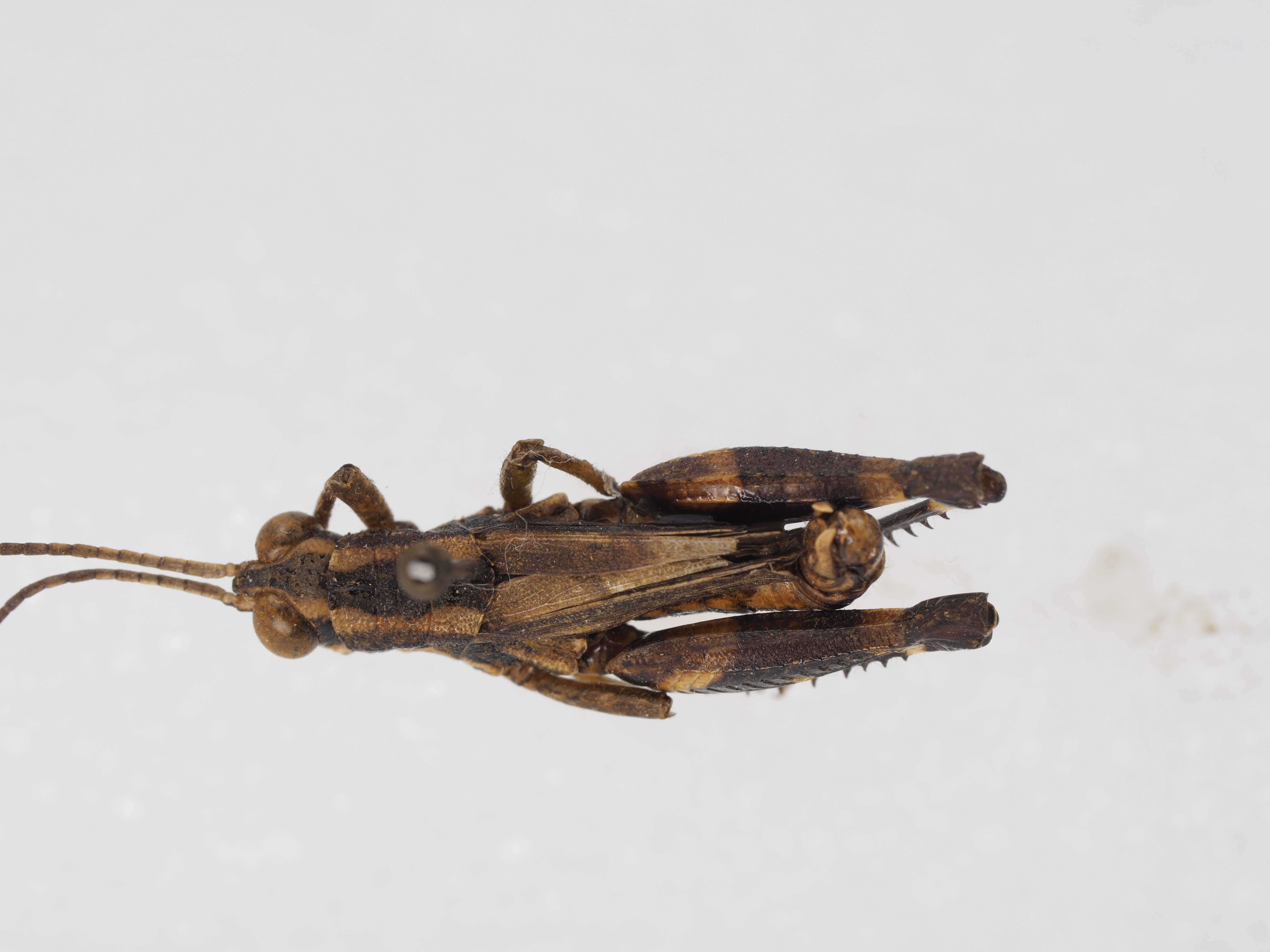 体长:♂23.5~26.5mm,♀33.5~38.5mm;前胸背板:♂5.3~6.1mm,♀8.0~8.1mm;前翅:♂11.0~12.5mm,♀15.0~16.5mm;后足股节:♂12.5~14.0mm,♀14.0~18.5mm。