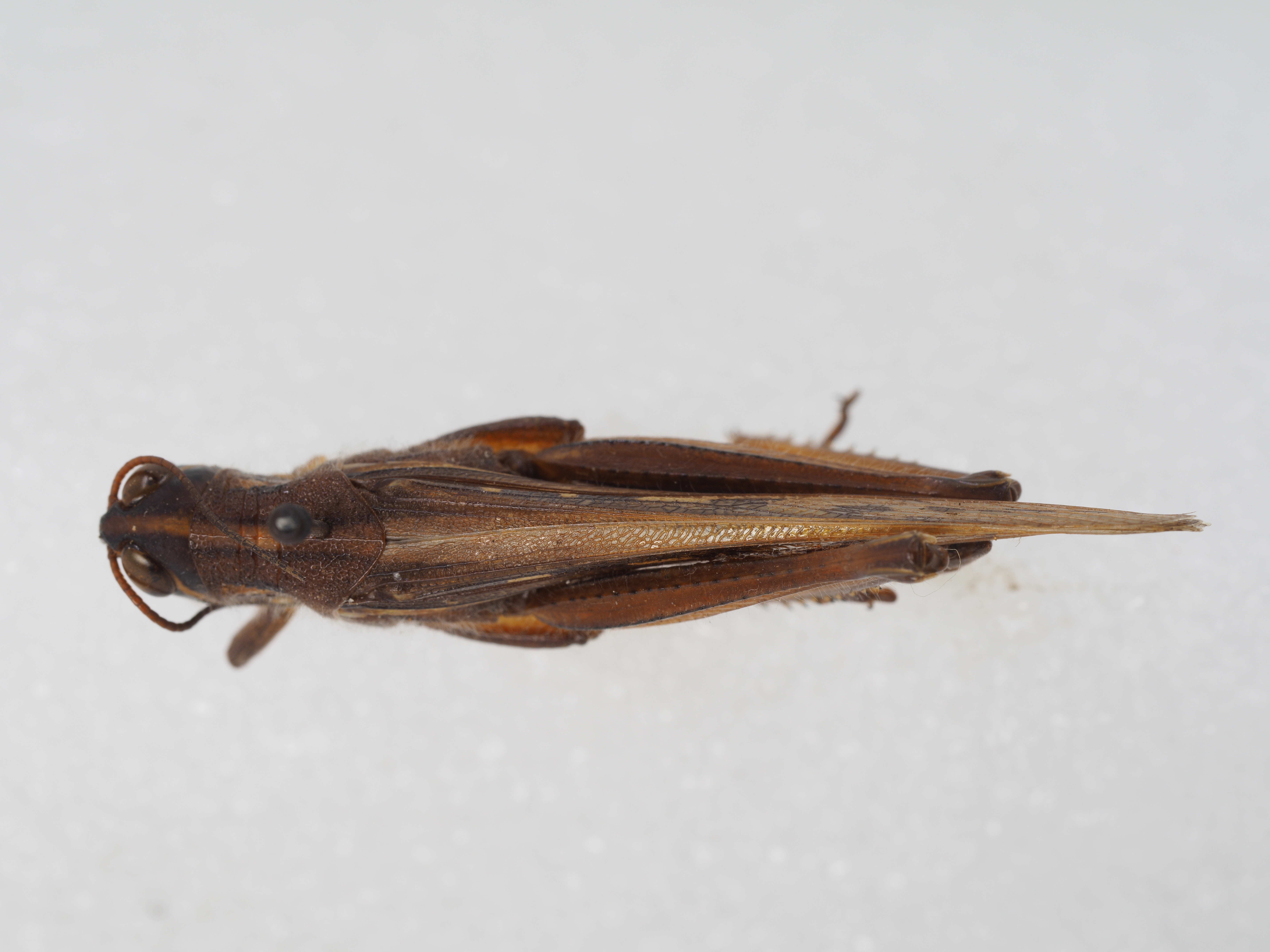 描述:雄性 体型较短小,匀称,具毛和刻点。头短。头顶短宽,略向前突出,背观与颜面隆起形成圆弧形隆起;头侧窝具刻点,三角形。颜面隆起在中单眼处具深沟,两侧缘在中单眼处略向内弯曲,近上唇基向外扩大,其上刻点深而大,颜面侧隆线成弧形。复眼卵形,其垂直直径分别为横径的1.4~1.6倍和眼下沟的1.7倍。触角丝状,26节,仅到达前胸背板的后缘,其中段一节的长为宽的1.5倍。前胸背板马鞍形,前缘略向前突出,后缘中央向后突出,呈圆弧形;两侧中部较狭,具密的刻点和皱纹;中隆线略凸起,缺侧隆线;3条横沟深割中隆线,后横沟略偏前,沟后区的长度约为沟前区长的1.1倍。前胸腹板突为圆柱形,端部趋细向后倾,顶端钝圆。中胸腹板侧叶间之中隔近长方形,长约为宽的1.3倍,侧叶之长为其最狭处的1.3倍。后胸腹板侧叶相互毗连。前翅狭长,长约为宽的5.3~5.7倍,不到达后足胫节中部。后足股节略细,长约为宽的4.7~5倍;上侧中隆线具有均匀分布的细齿。后足胫节外缘具刺7~8个,内缘具刺10~11个(包括端刺),缺外端刺。肛上板长三角形,顶端较尖;两侧前缘各具一个突起;基部中央具深纵沟,直到中部或到达肛上板2/3处合为隆起到达顶端。阳具复合体和阳具基背片见图247b~d。