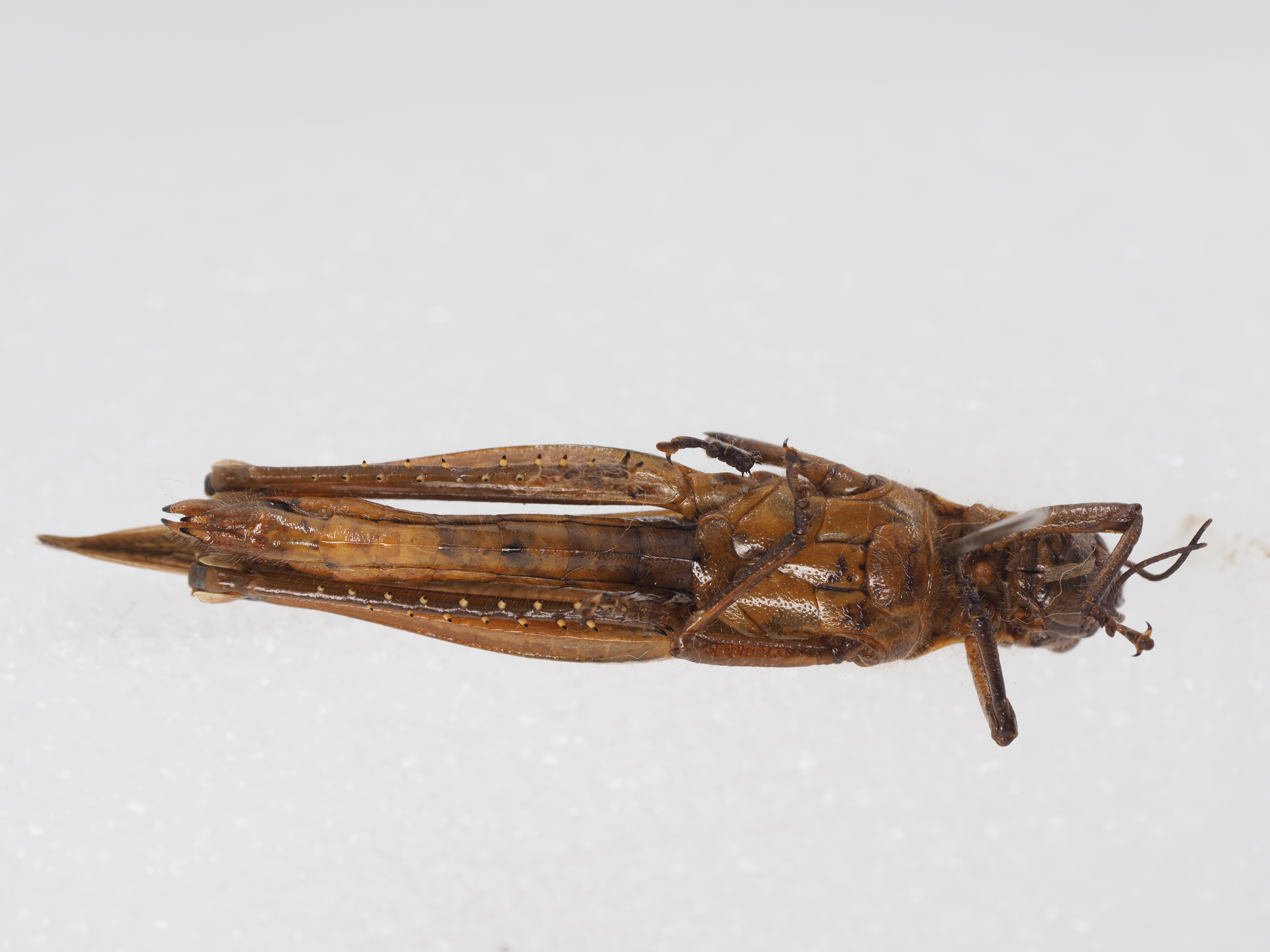 体长:♂31.0~36.0mm,♀41.0~44.0mm;前胸背板:♂6.5~7.9mm,♀9.0~10.0mm;前翅:♂28.0~35.0mm,♀38.0~44.0mm;后足股节:♂17.0~19.0mm,♀22.0~24.0mm。