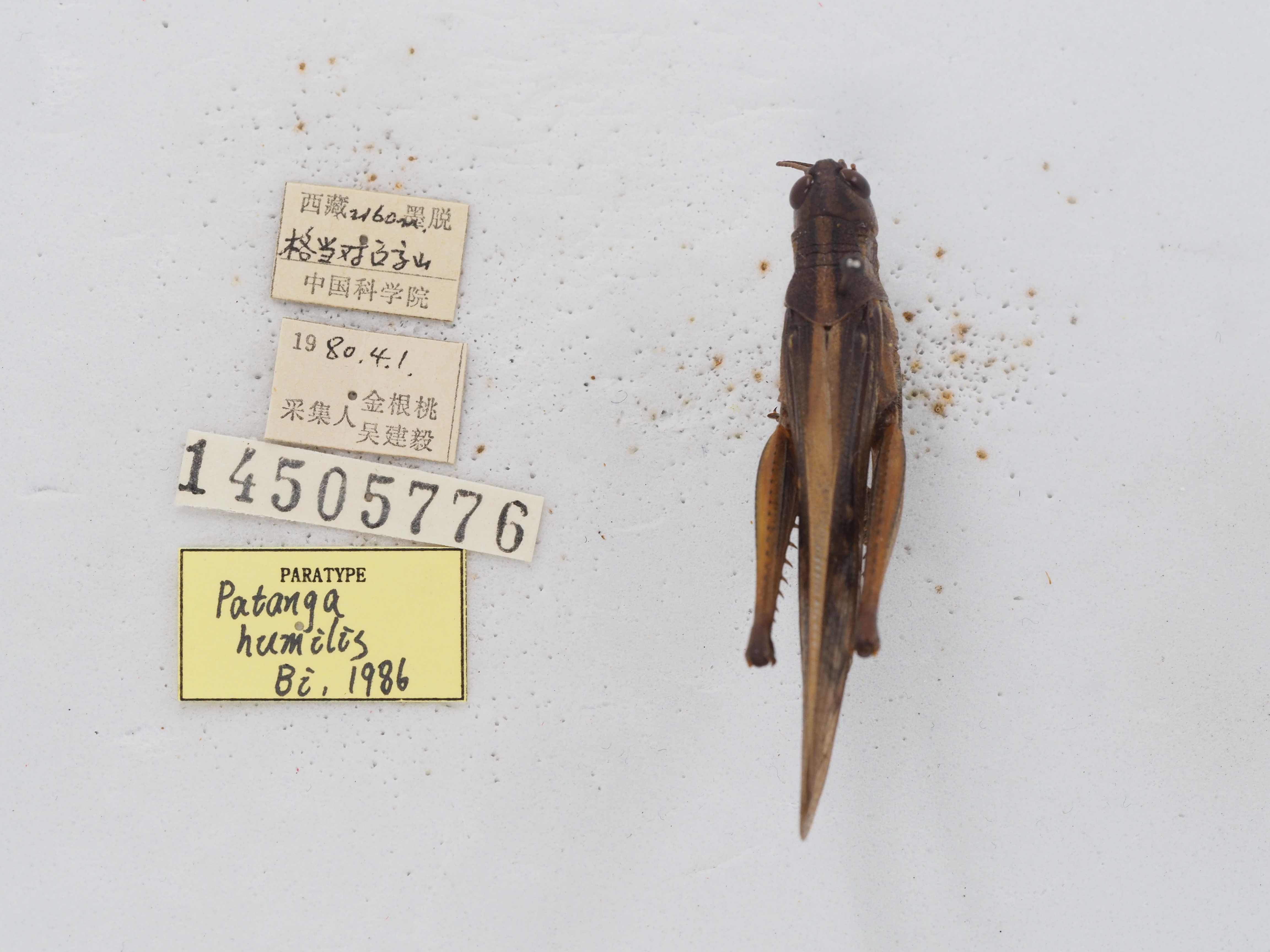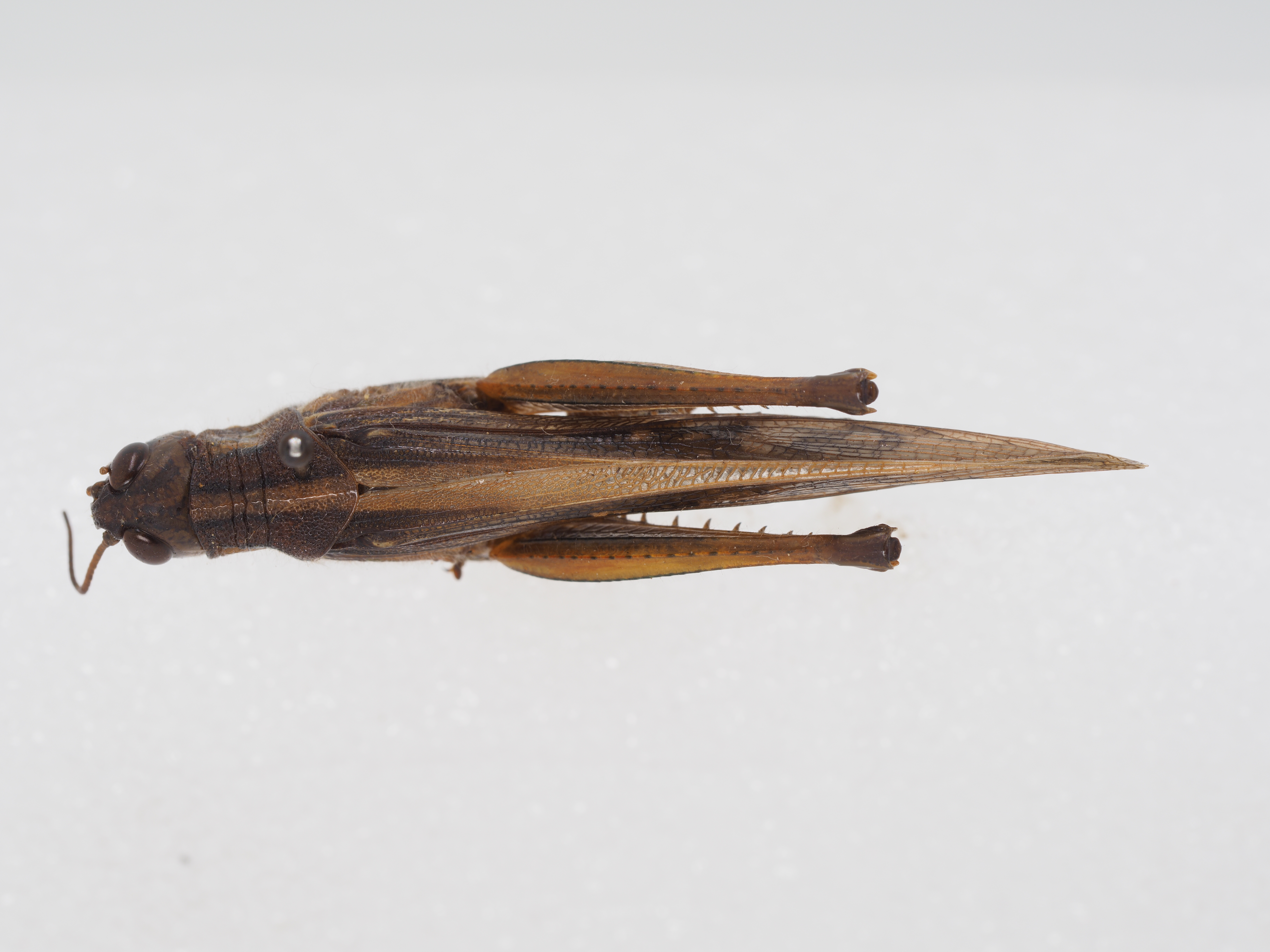 描述:雄性 体型较短小,匀称,具毛和刻点。头短。头顶短宽,略向前突出,背观与颜面隆起形成圆弧形隆起;头侧窝具刻点,三角形。颜面隆起在中单眼处具深沟,两侧缘在中单眼处略向内弯曲,近上唇基向外扩大,其上刻点深而大,颜面侧隆线成弧形。复眼卵形,其垂直直径分别为横径的1.4~1.6倍和眼下沟的1.7倍。触角丝状,26节,仅到达前胸背板的后缘,其中段一节的长为宽的1.5倍。前胸背板马鞍形,前缘略向前突出,后缘中央向后突出,呈圆弧形;两侧中部较狭,具密的刻点和皱纹;中隆线略凸起,缺侧隆线;3条横沟深割中隆线,后横沟略偏前,沟后区的长度约为沟前区长的1.1倍。前胸腹板突为圆柱形,端部趋细向后倾,顶端钝圆。中胸腹板侧叶间之中隔近长方形,长约为宽的1.3倍,侧叶之长为其最狭处的1.3倍。后胸腹板侧叶相互毗连。前翅狭长,长约为宽的5.3~5.7倍,不到达后足胫节中部。后足股节略细,长约为宽的4.7~5倍;上侧中隆线具有均匀分布的细齿。后足胫节外缘具刺7~8个,内缘具刺10~11个(包括端刺),缺外端刺。肛上板长三角形,顶端较尖;两侧前缘各具一个突起;基部中央具深纵沟,直到中部或到达肛上板2/3处合为隆起到达顶端。阳具复合体和阳具基背片见图247b~d。
