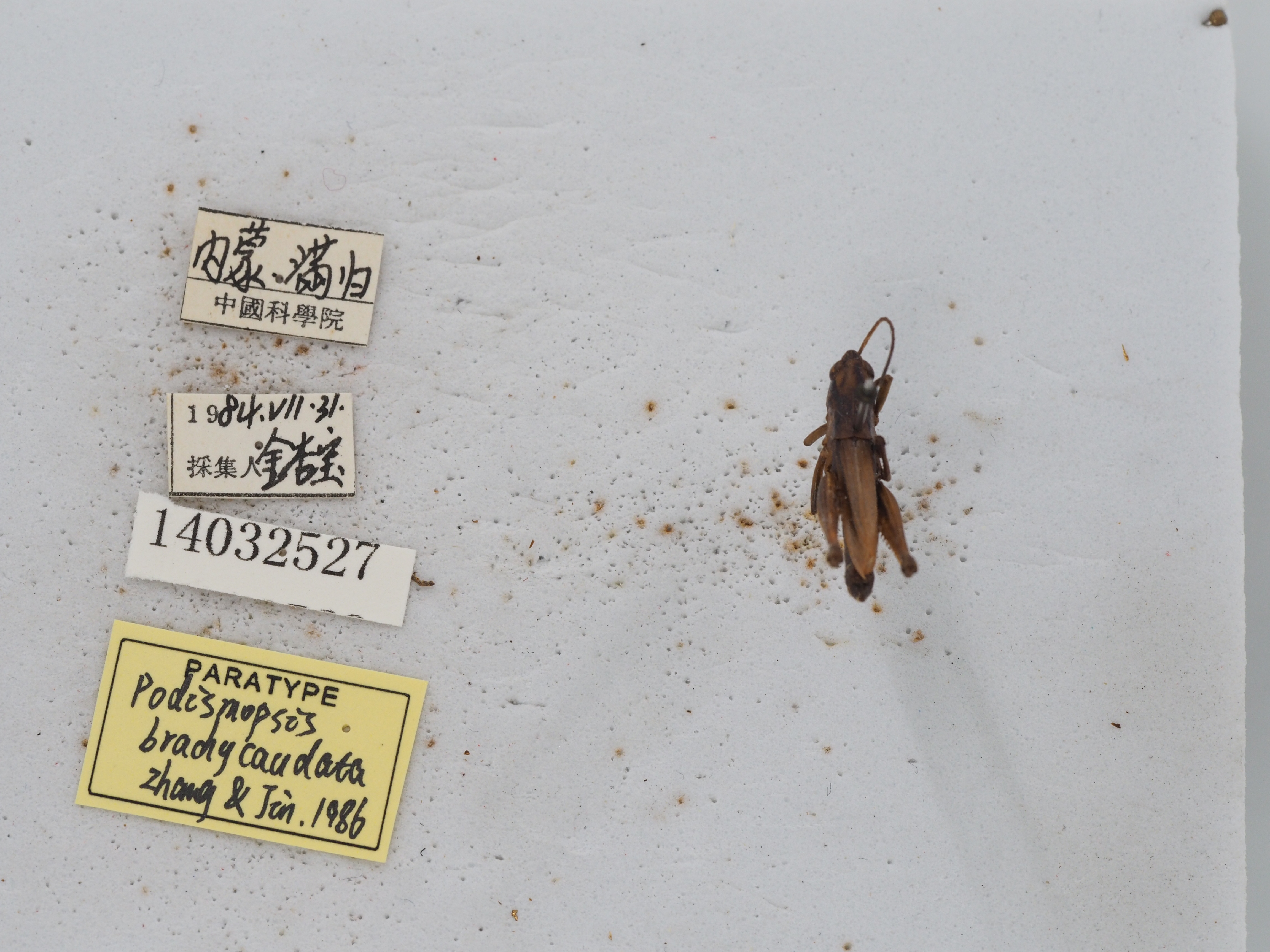 描述:雄性 体中小型。头顶宽短,具中隆线,眼间距宽为触角间颜面隆起宽的2—2.5倍,缺头侧窝。颜面倾斜,颜面隆起直达唇基,纵沟明显。触角丝状,超过前胸背板后缘,中段一节的长度为宽度的2.5—3倍。复眼卵形,垂直直径为横径的1.5倍,而为眼下沟长的1.3—1.5倍。前胸背板前缘平直,后缘平,中央略凹陷;中隆线明显,侧隆线略弯曲,近平行;前、中横沟不明显,后横沟切断中、侧隆线;沟前区长度为沟后区长的1.4—1.6倍;侧片长大于高,下缘中央突出。前翅顶端斜截,其长度到达后足股节的1/2—2/3处,翅长为宽的3倍;缘前脉域狭长,超过前翅中部,具闰脉;前缘脉域的宽度为亚前缘脉域宽的1.5—2倍;径脉域为亚前缘脉域宽的1.5倍。后翅极退化,很小。后足股节匀称,长为宽的5.5倍,内侧具一列发音齿,音齿数116个,音齿顶钝圆;下膝侧片顶圆形。后足胫节外侧具刺12个,内侧11—12个,缺外端刺。鼓膜孔宽卵形,长为宽的1.5—1.7倍。中胸腹板侧叶间中隔宽为长的1.7—2倍。后胸腹板侧叶间中隔宽略大于长或相等。肛上板三角形,中央具纵沟。尾须长锥形,顶尖,到达肛上板的顶端。下生殖板短锥形,顶尖,其长为基部最宽处的1.8—2倍。阳具基背片如图136c。