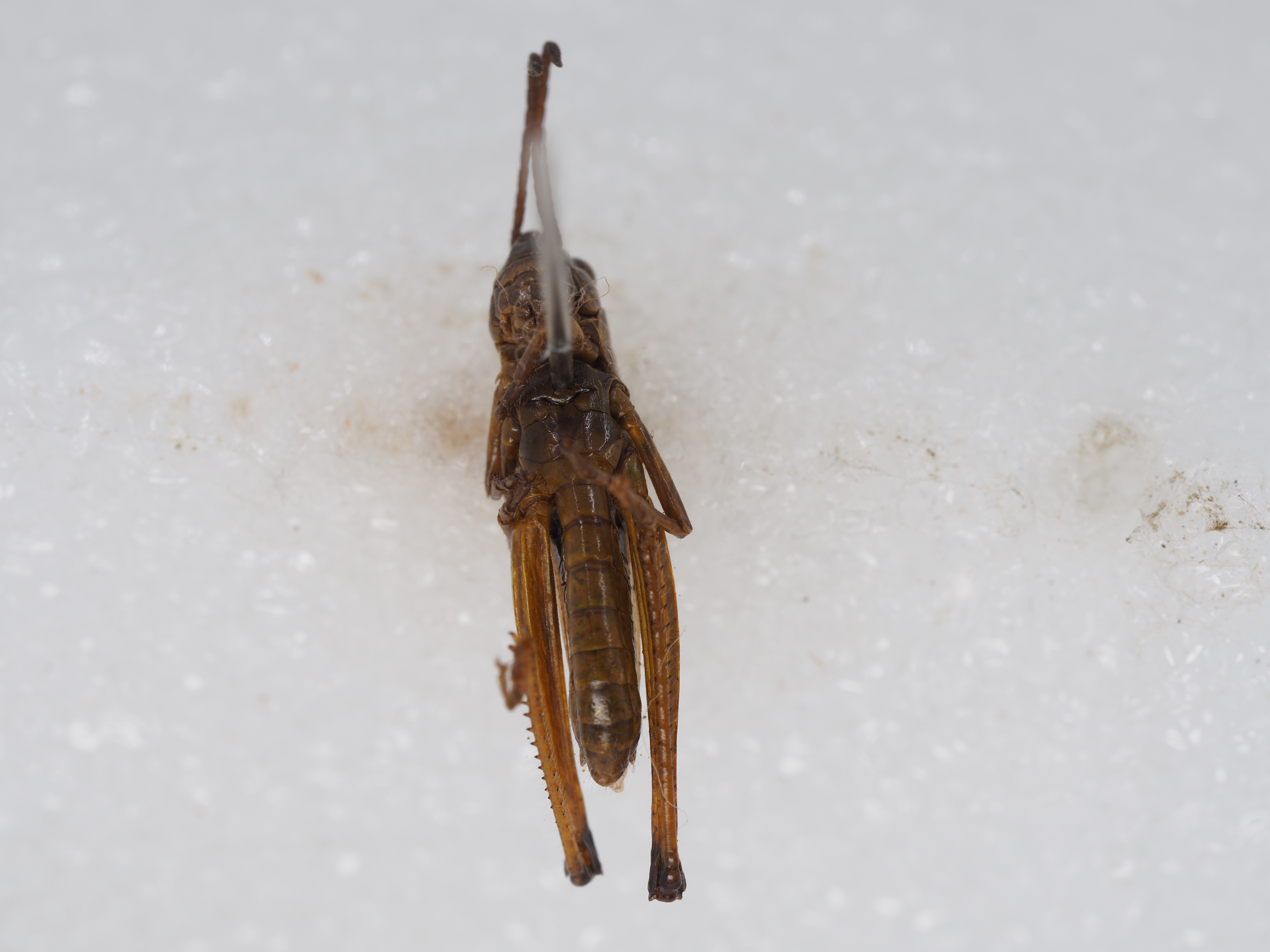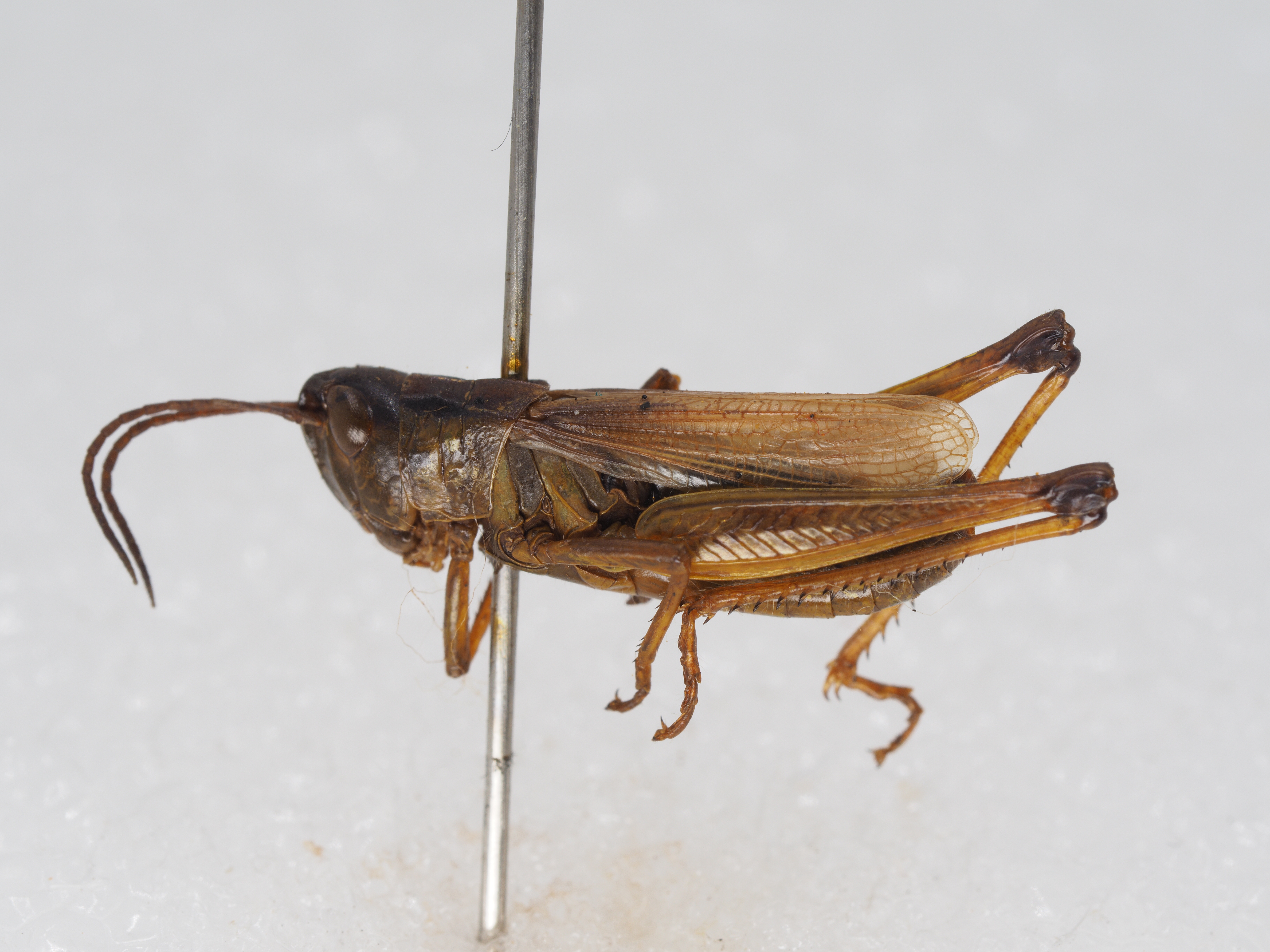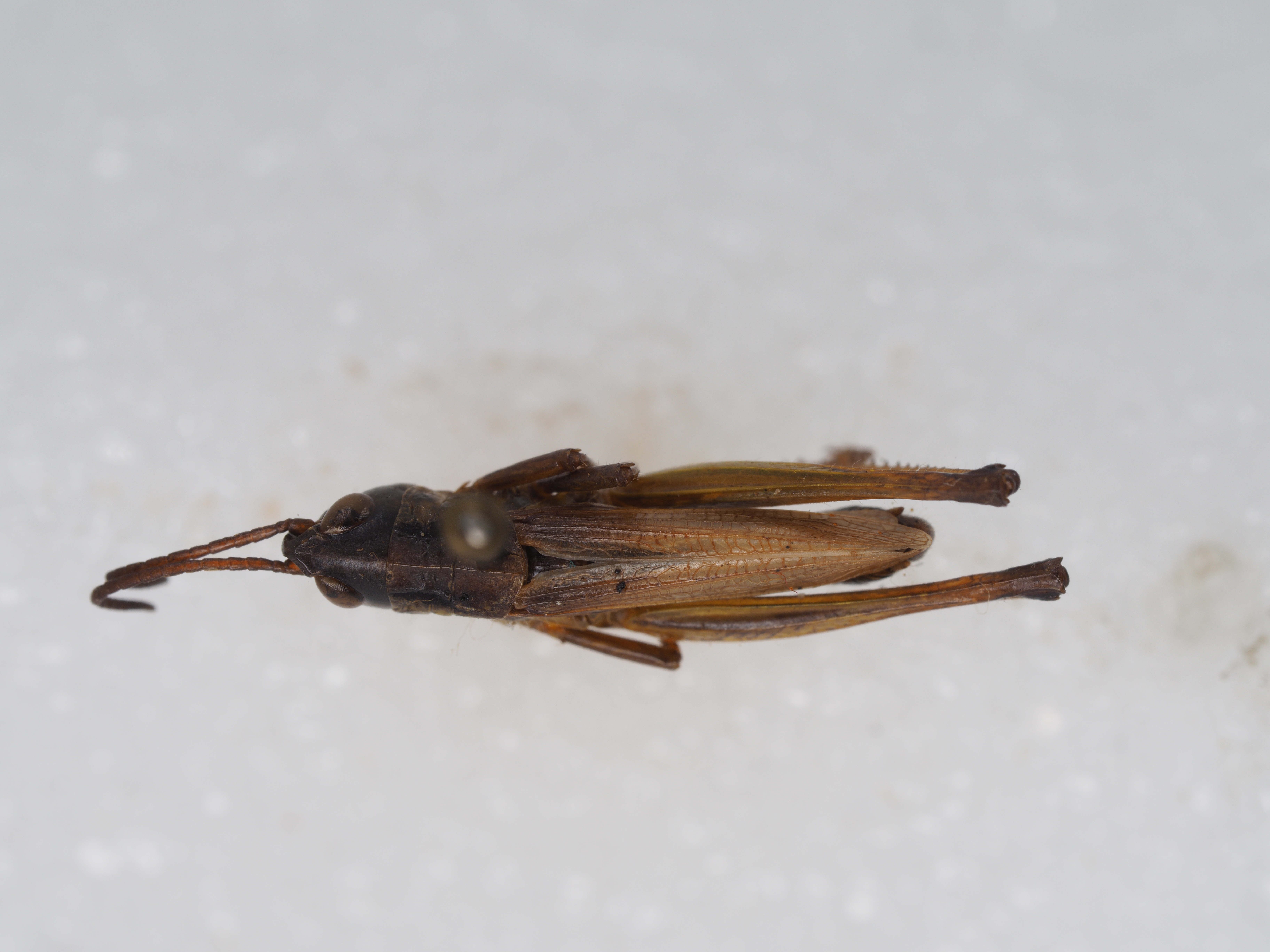 体色 草绿色。前胸背板棕色,沿侧隆线外侧有细黑纹。后足股节膝部黑色。