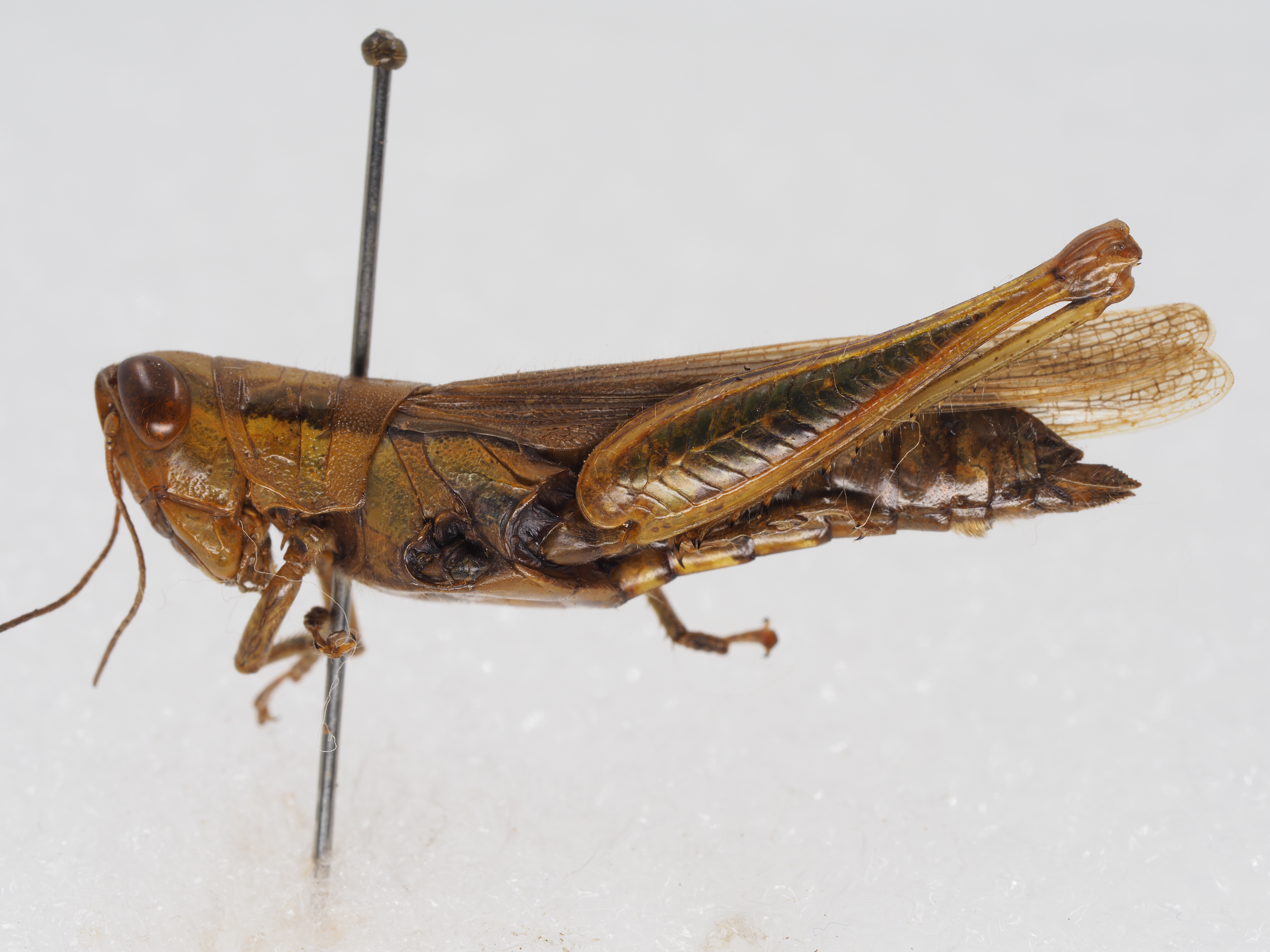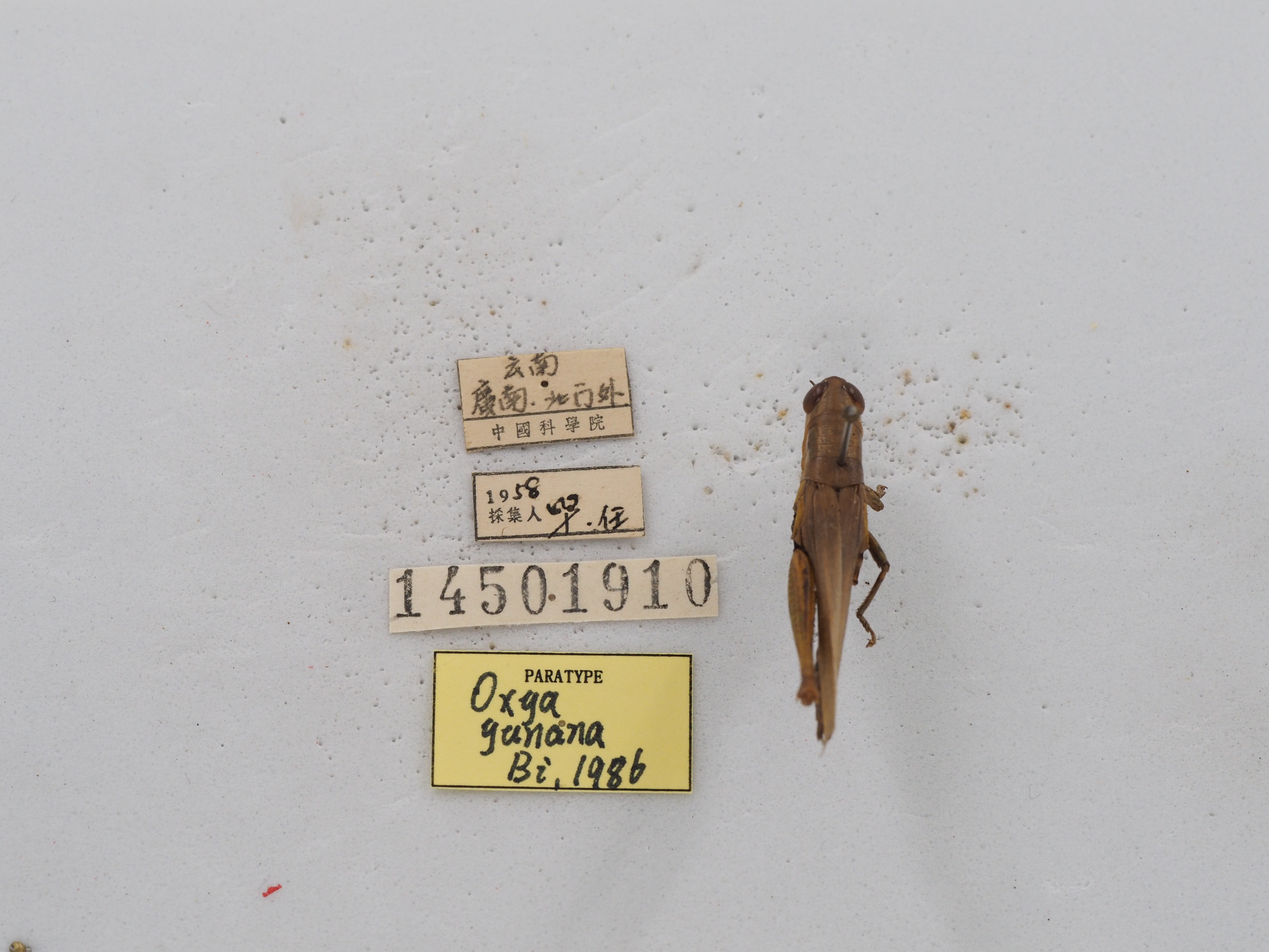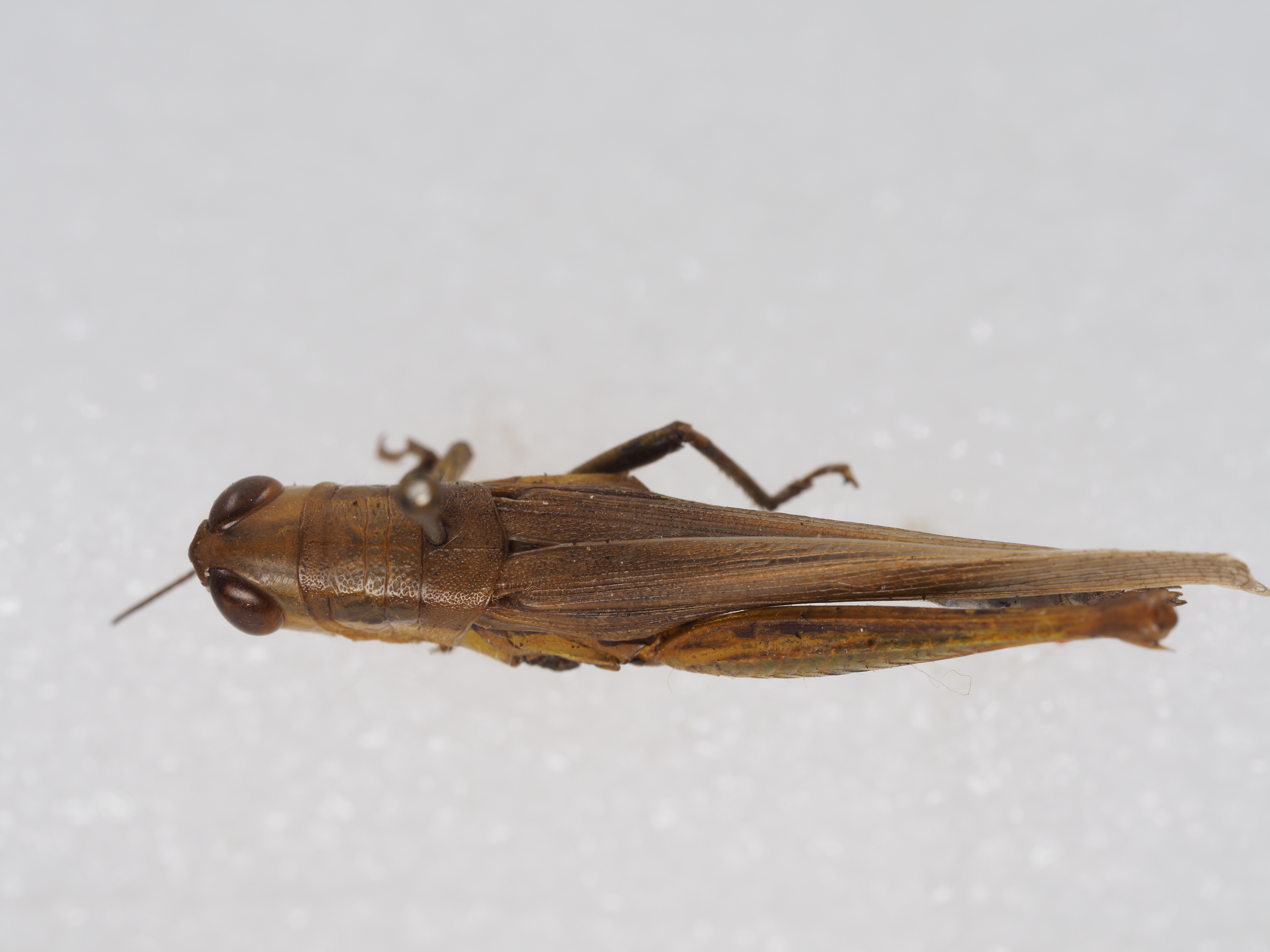描述:雄性 体型略大,体表具有细小刻点。头顶向前倾斜突出,顶端圆形,其宽约为在复眼前缘之长的两倍,其在复眼之间宽度略宽或等于其颜面隆起在触角之间的宽度。颜面隆起在中央单眼之下较宽,中央单眼之上较狭,全长具较宽纵沟。触角丝状,其长超过前胸背板的后缘。复眼卵圆形,其纵径为横径的1.4倍,为其眼下沟长的3倍。前胸背板较平,其前缘平弧形,后缘呈钝角突出,两侧缘几乎平行;中隆线较低,缺侧隆线;3条横沟明显切断中隆线,后横沟位于中部之后,沟前区长于沟后区;侧片之长略大于高。前胸腹板突呈圆锥形,顶端略圆,略向后倾斜。中胸腹板侧叶间之中隔较狭,中隔之长约为其宽的2.6倍。后胸腹板侧叶的后端相互毗连。前、后翅均发达,其长超过后足股节端部,前翅前缘之基突不明显突出。后足股节匀称,中隆线缺细齿,内、外下膝侧片的顶端均具有锐刺。后足胫节近端部之半的上侧内、外缘均扩大成狭片状,顶端具有外端刺和内端刺;沿其外缘具刺8~9个,内缘具刺9~11个。跗节爪间中垫较大,常超过爪长。腹部第1节侧面具椭圆形的鼓膜器。肛上板为三角形,表面较光滑。尾须圆锥形,基部较宽,中部较直,顶端钝圆形,其长超过肛上板的顶端。下生殖板呈锥形,顶端略平。阳具基背片外冠突较粗短,内冠突呈小齿状。阳具复合体的色带瓣和阳具端瓣较细长,色带瓣前缘具深凹。二者弯曲略呈“S”形,色带后突背观呈三角形,端部较狭;两侧突较大。