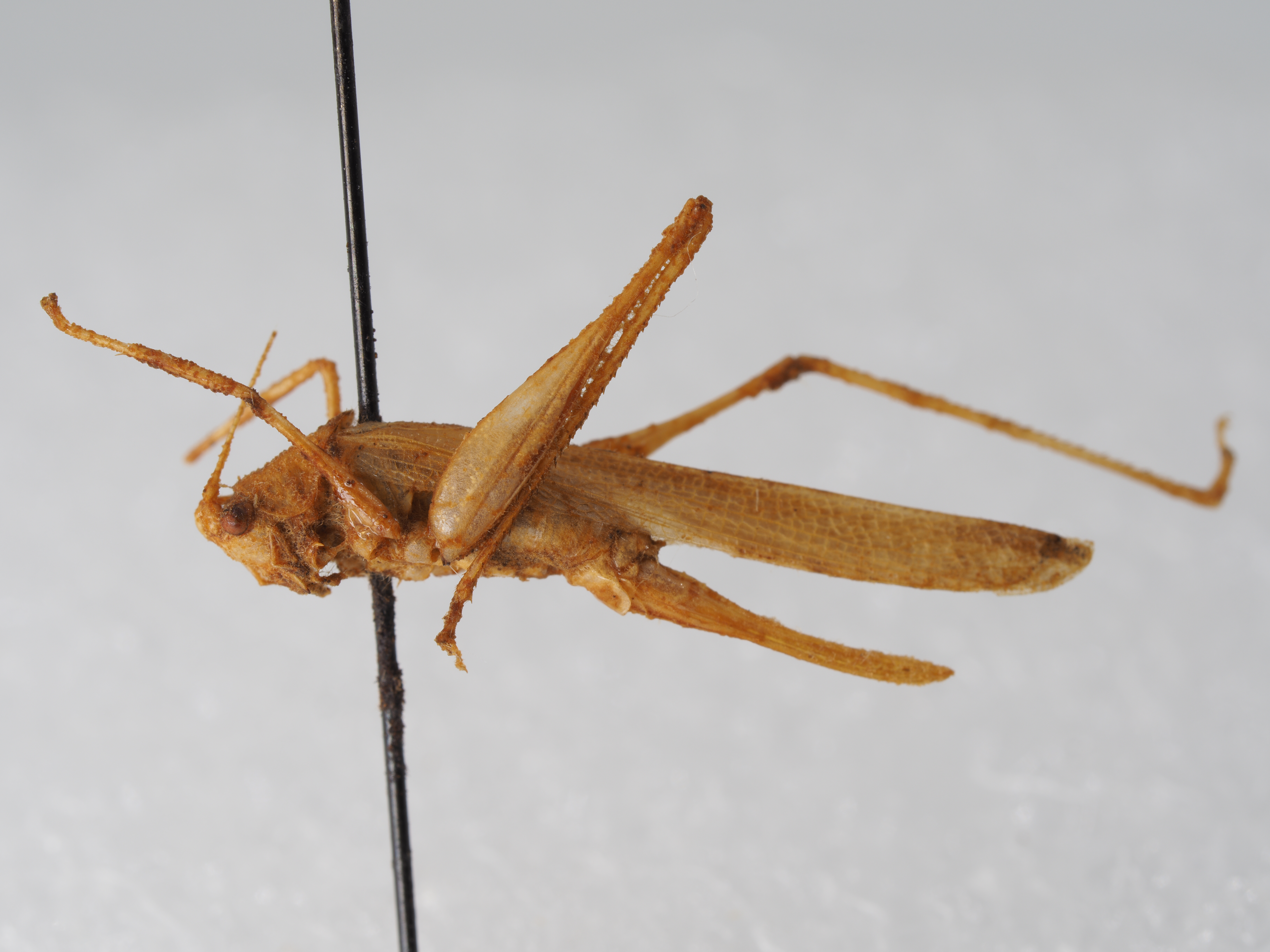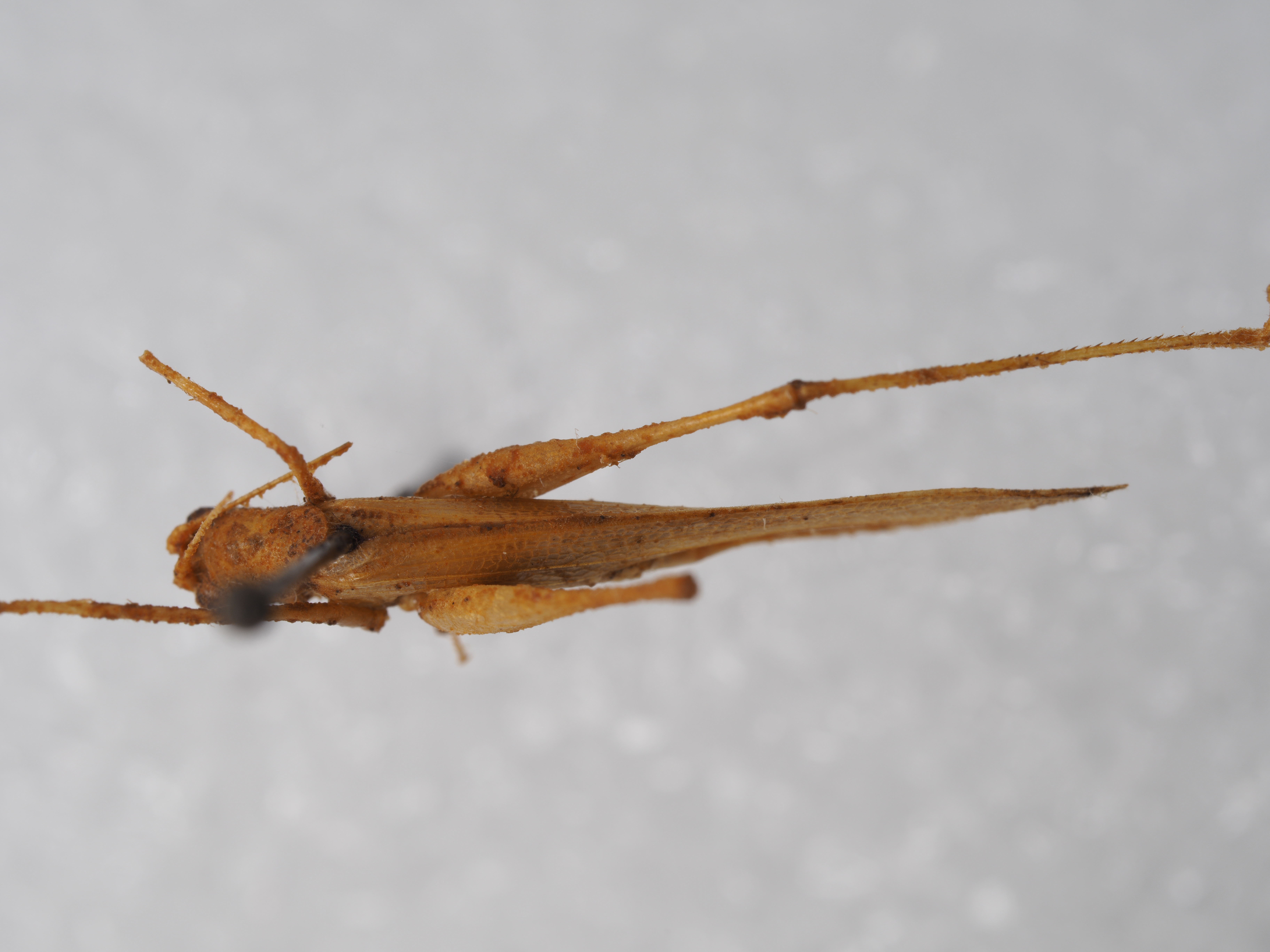 描述:雌性:头顶圆锥形,背面纵沟较弱多颜面侧观近乎垂直。复眼圆形,呈半球状向前突出。下颚须第5节与第4节几乎等长,端部稍扩大。前胸背板侧片后缘波曲形,肩凹不明显。前翅几乎到达后足胫节中部,后翅稍长于前翅。前足胫节腹侧内、外缘刺排列式为4,5(1,1)型,后足胫节背侧内、外缘各具小齿28-30个。下生殖板较大,矩形,后缘具弱的宽凹缘(图22),表面轻微地凹凸不平,两侧基部具明显的横凹。产卵瓣较后足股节短,腹缘顶端具一小钩。