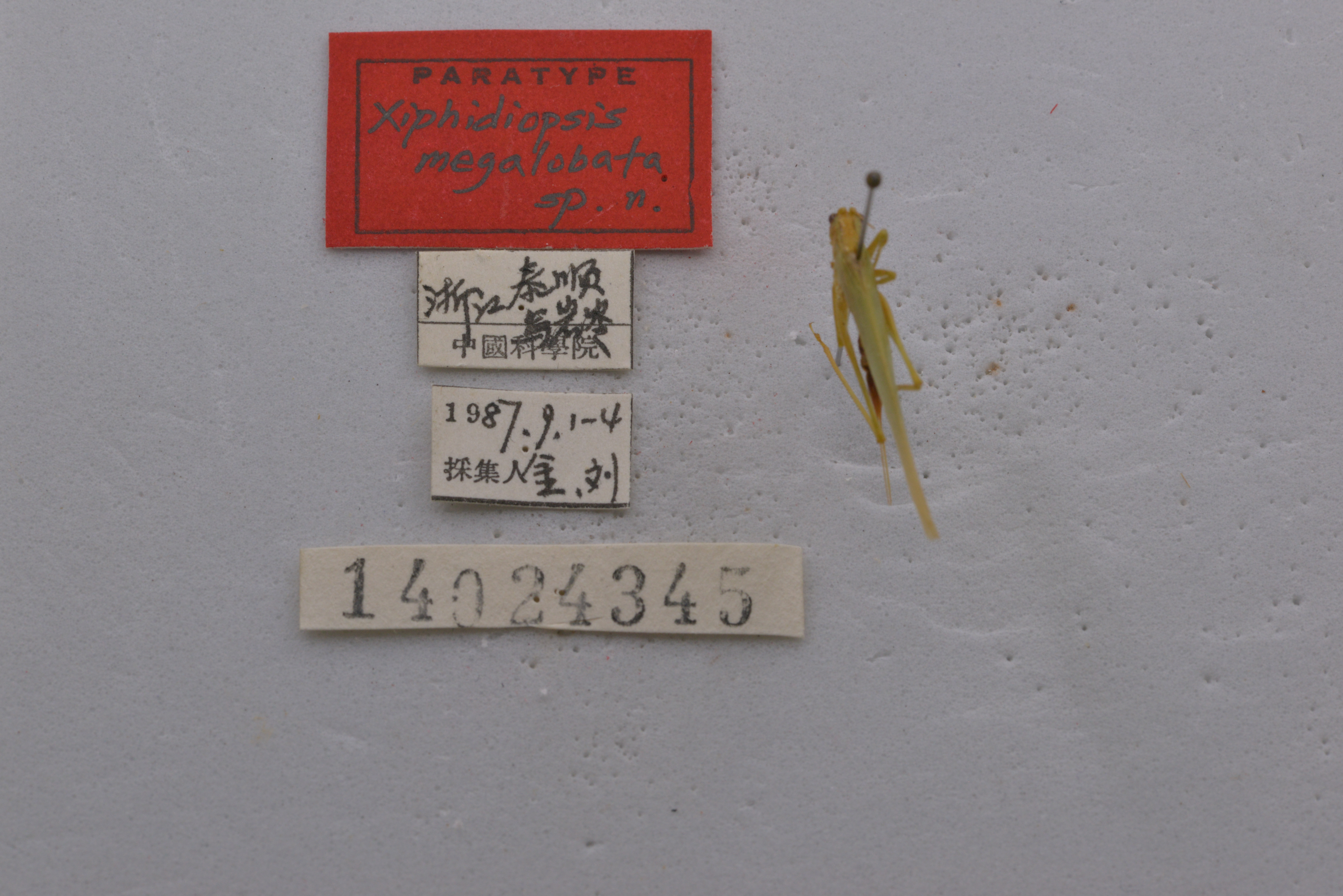 描述:雄性:头顶向前呈圆锥形突出,背面具细纵沟。前胸背板侧片后缘呈波曲形。前翅较远地超出后足股节顶端,后翅长于前翅。前足胫节腹侧内、外缘刺排列式为4,5(1,1)型,后足胫节背侧内、外缘各具小齿23-29个。腹部末节背板后缘具一对间隔较宽的向后平行突出的突起,尾须内侧中部具一大形腹片,前端角向前弯曲,后端角圆形,尾须端部向内强弯曲,下生殖板后缘在腹刺同具小凹口。
