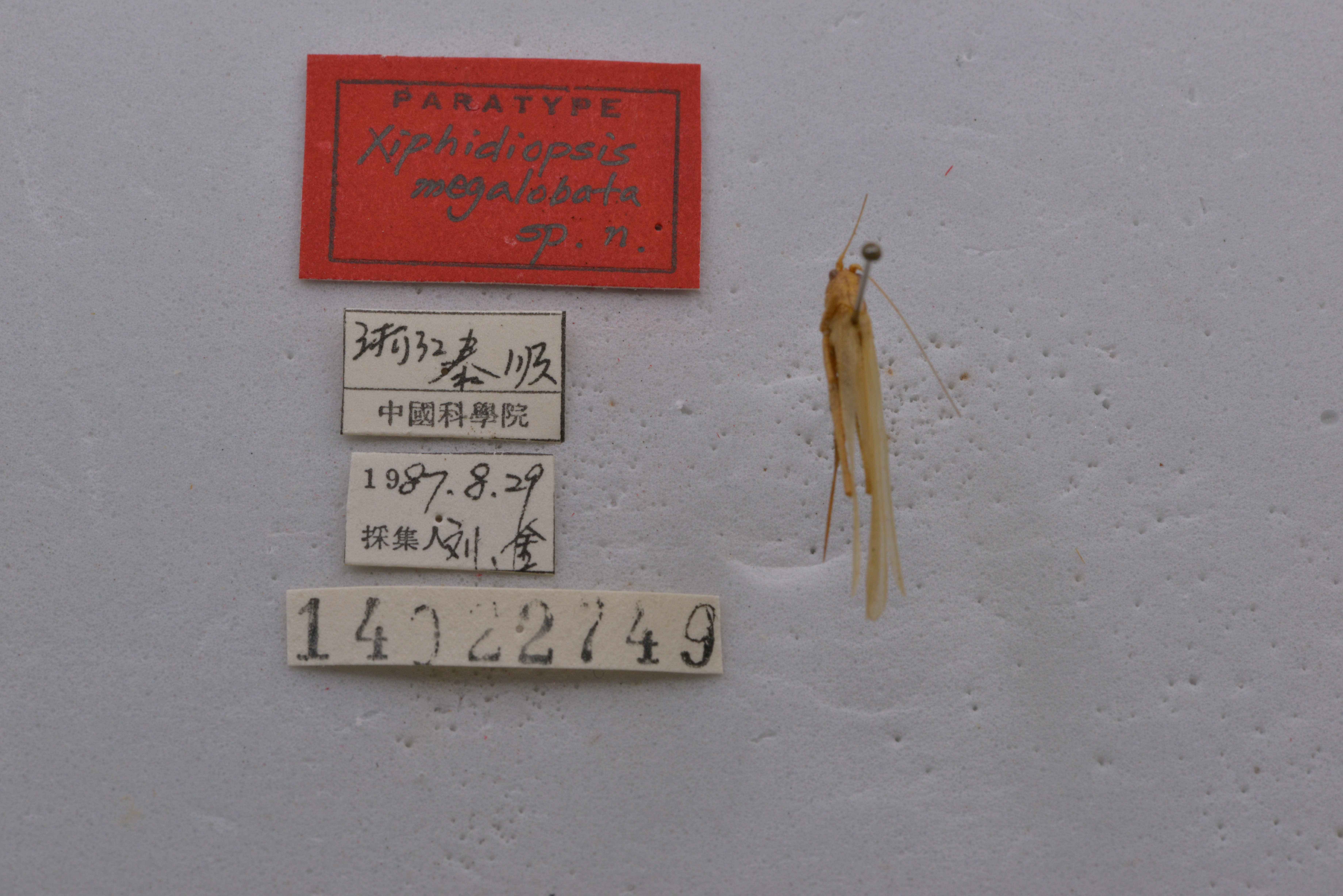 描述:雄性:头顶向前呈圆锥形突出,背面具细纵沟。前胸背板侧片后缘呈波曲形。前翅较远地超出后足股节顶端,后翅长于前翅。前足胫节腹侧内、外缘刺排列式为4,5(1,1)型,后足胫节背侧内、外缘各具小齿23-29个。腹部末节背板后缘具一对间隔较宽的向后平行突出的突起,尾须内侧中部具一大形腹片,前端角向前弯曲,后端角圆形,尾须端部向内强弯曲,下生殖板后缘在腹刺同具小凹口。