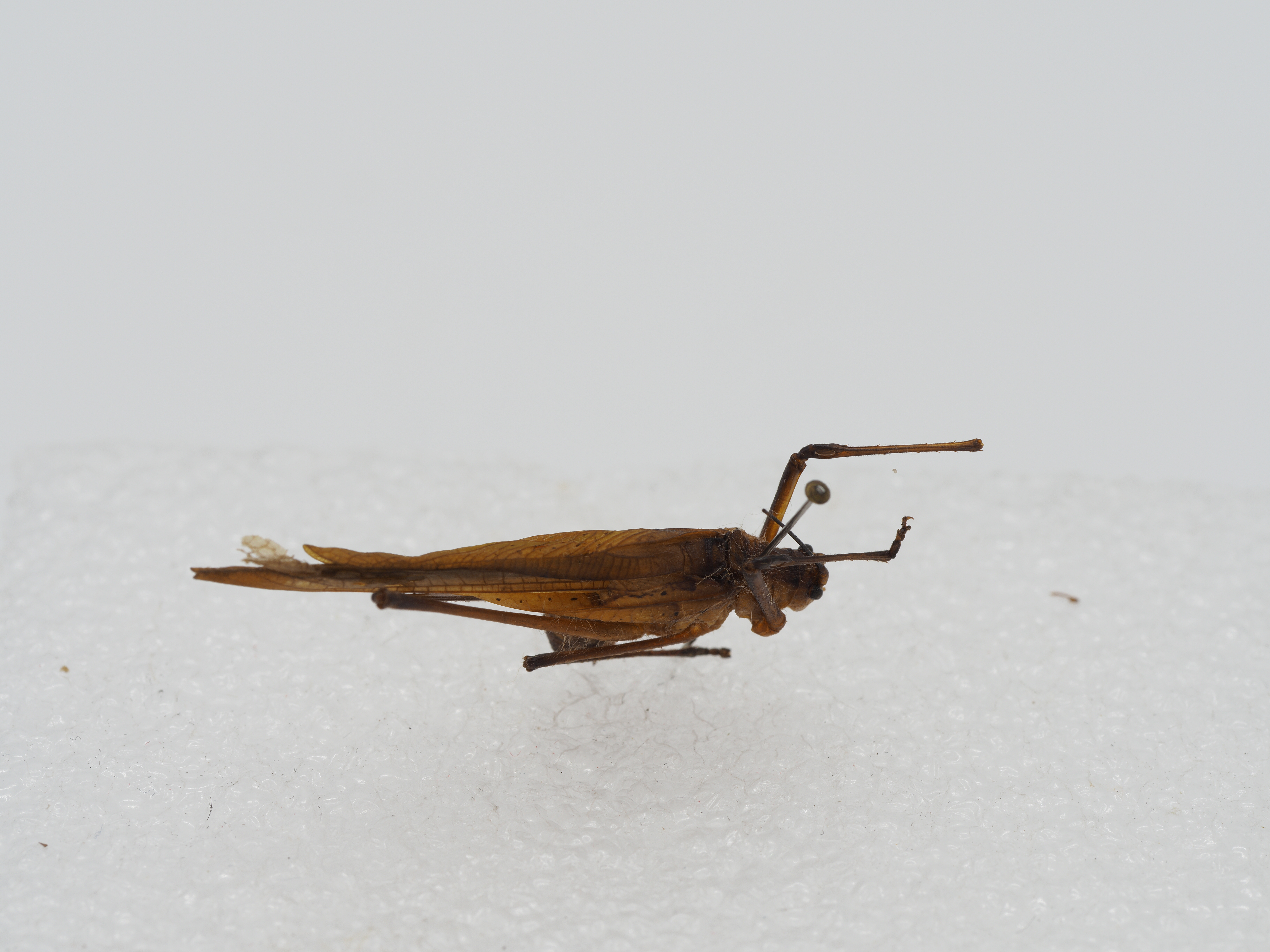 雌性 后翅超过前翅 2.5-3.0mm。下生殖板近三角形,端部微凹。产卵器较短,向