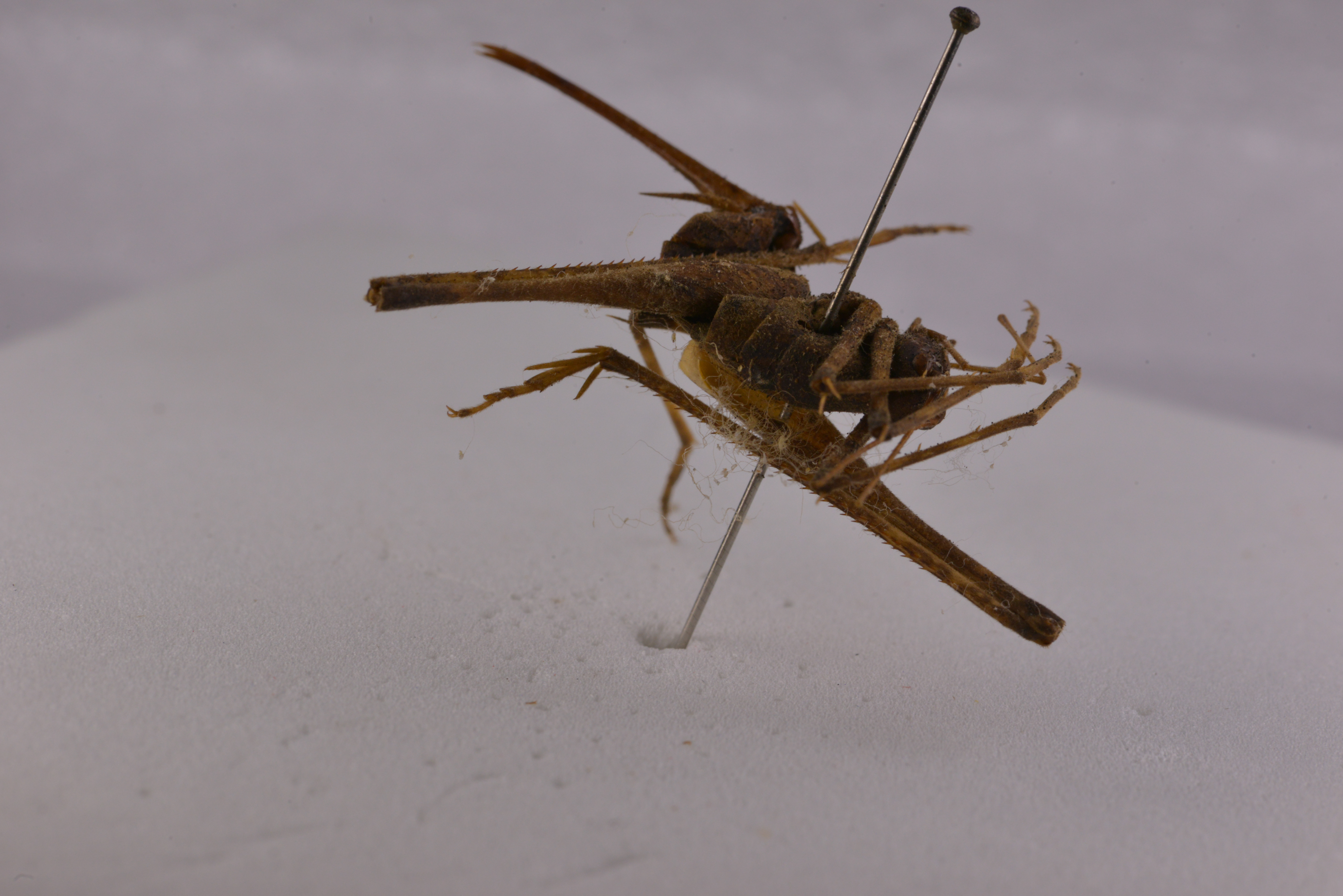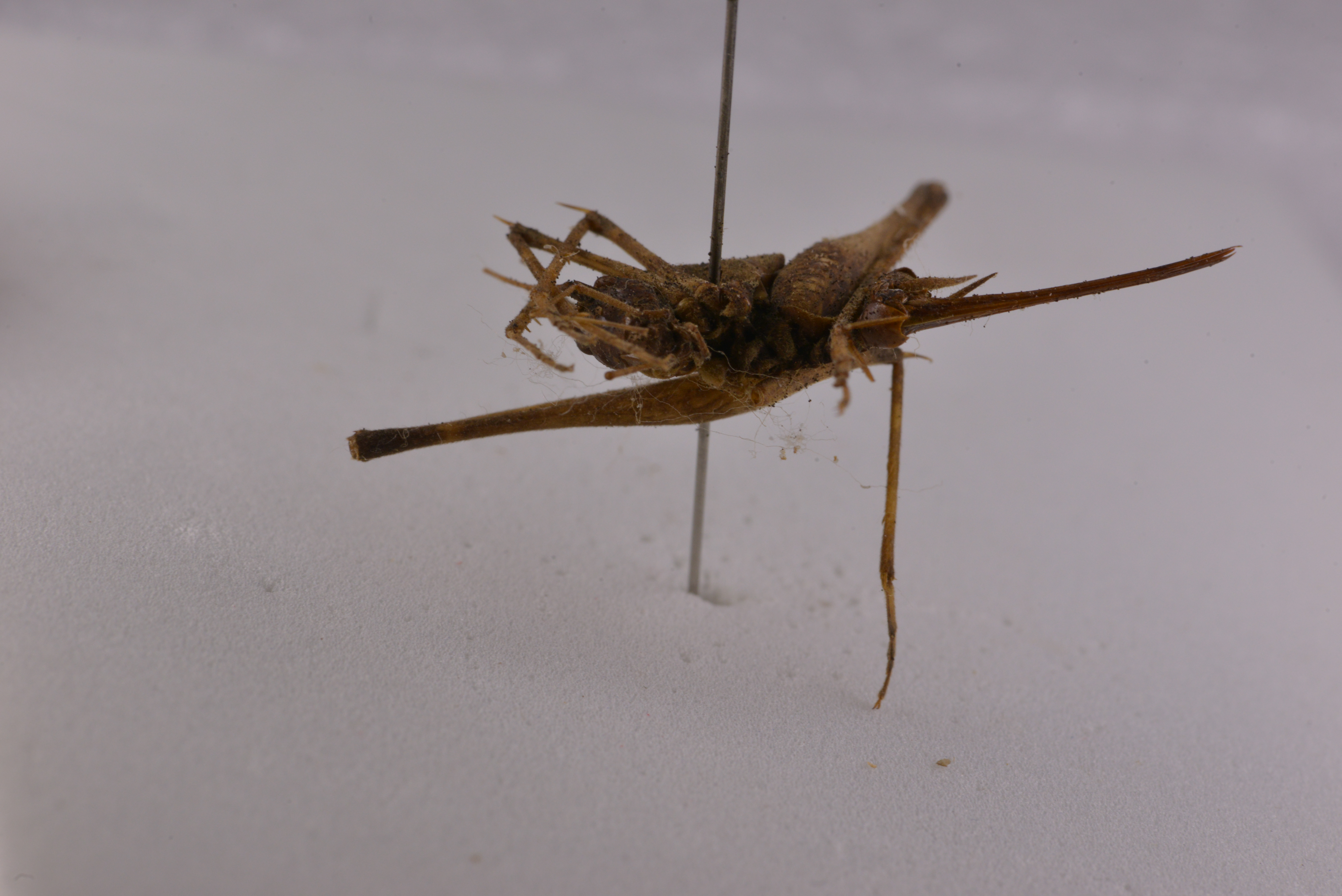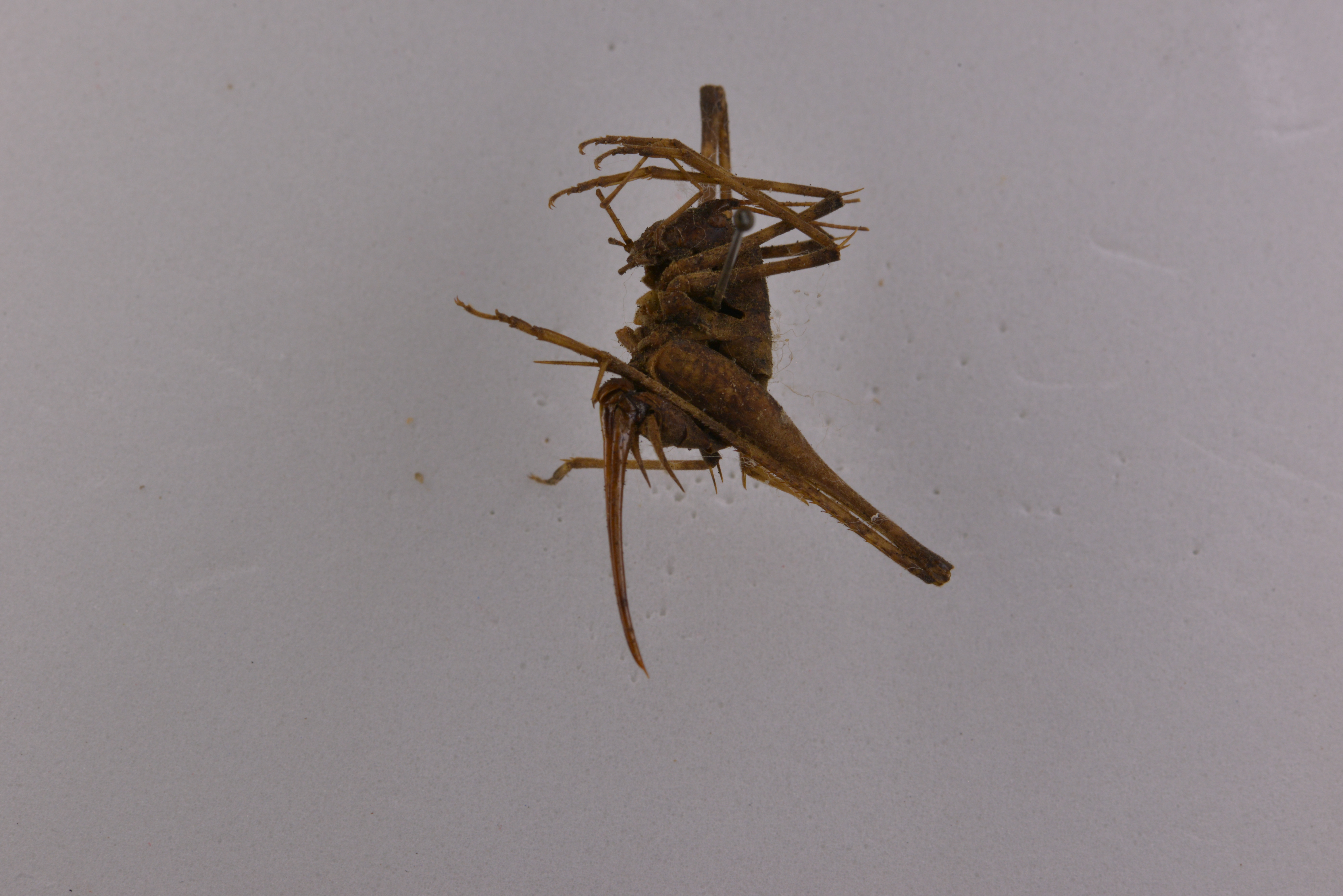 描述:雄:头顶具纵沟,分顶角为两个锥形的瘤。前足股节约为前胸背板长的1.6倍,腹面缺刺,内膝叶具1个小刺,外膝叶具1个较长的距。前足和中足胫节腹面各具2个内距和2个外距(不包括端距)。后足股节腹面内缘具7~9个刺,后足胫节背面具29~34个刺内侧上端距几乎等长于跗基节,跗基节背面具2~4个刺(包括端刺)。第7腹节背板具较狭长的中突起,端部圆形。肛侧板延长,中部之后稍微阔宽,端部呈斜截形。
