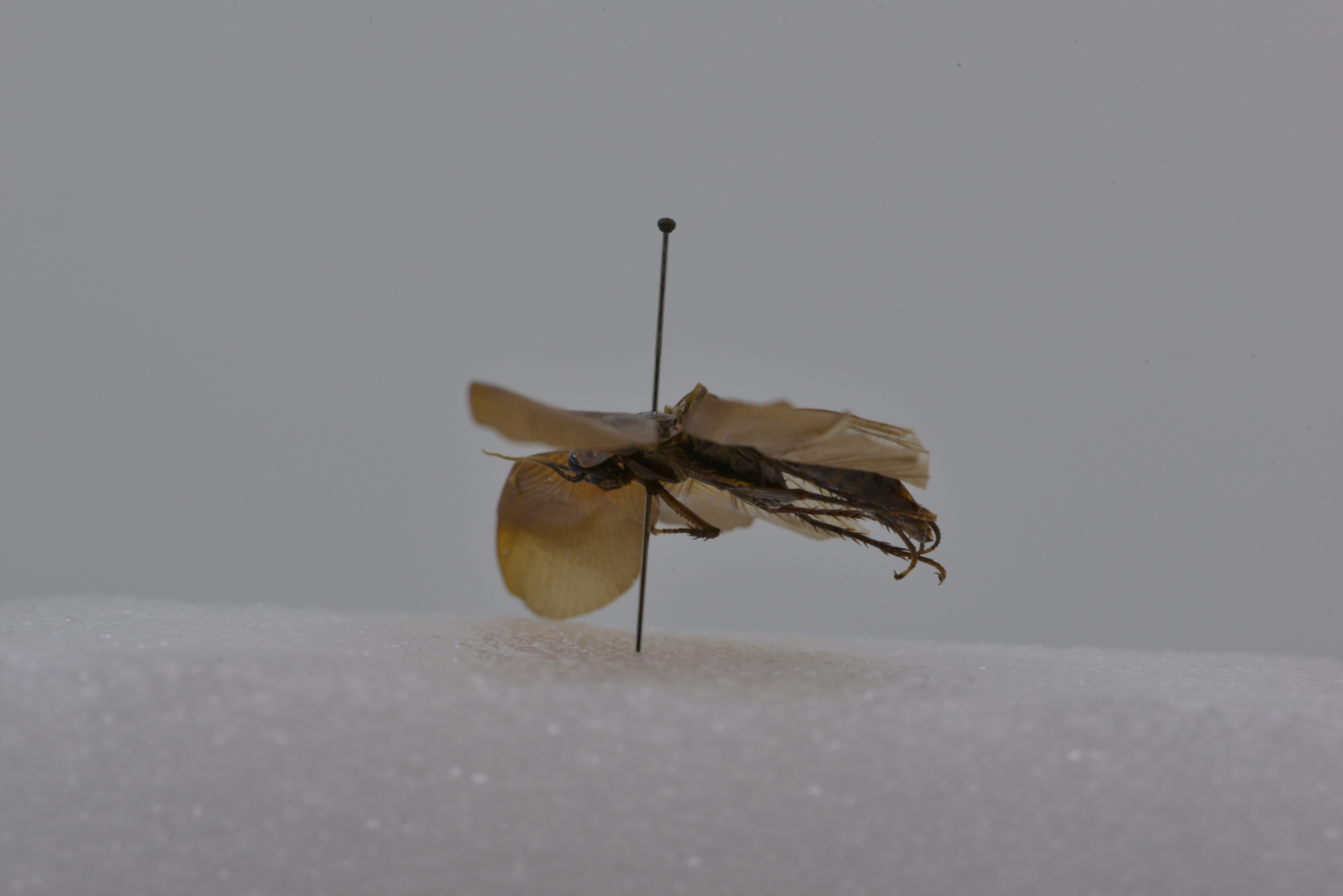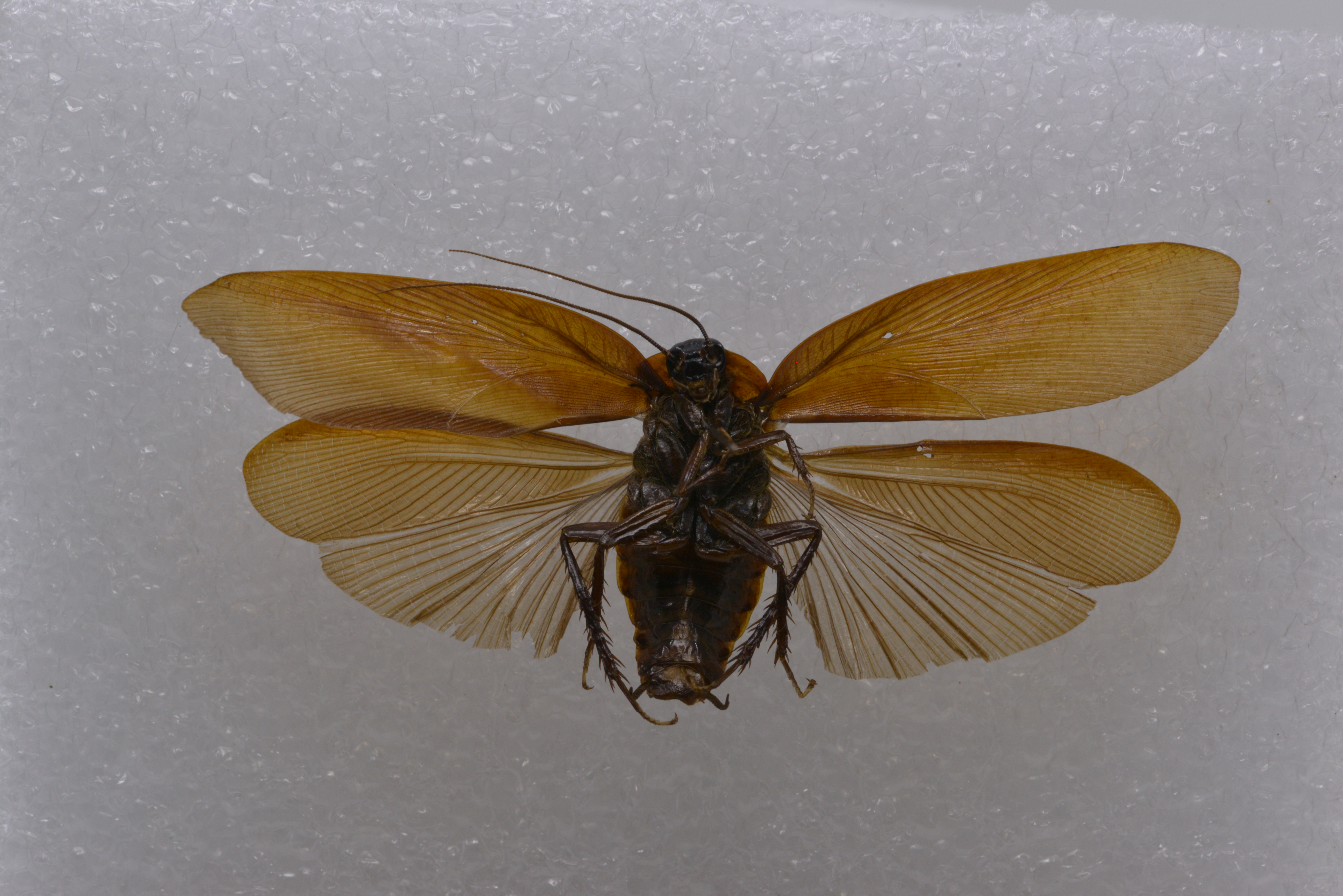 描述:雄头顶稍微露出前胸背板之前,复眼较大,其间距约为触角第1节宽的2倍,单眼间距与复眼间距几乎相等,下缘之间具1条横沟。前胸背板宽大于长,前缘宽圆形,后缘呈钝角形突出,表面中央具浅凹痕和皱褶。前翅和后翅均发达。前翅远超过腹端,其长约为宽3倍,端缘非波曲形,Sc脉具分枝。后翅稍短于前翅,端部宽圆形,CuA宽,不超过下生殖板,后缘中央具三角形的凹口,裂叶呈宽圆形。尾须15节。下生殖板横宽,后缘波曲形,左侧呈钝角形凸出;腹突微扁平。