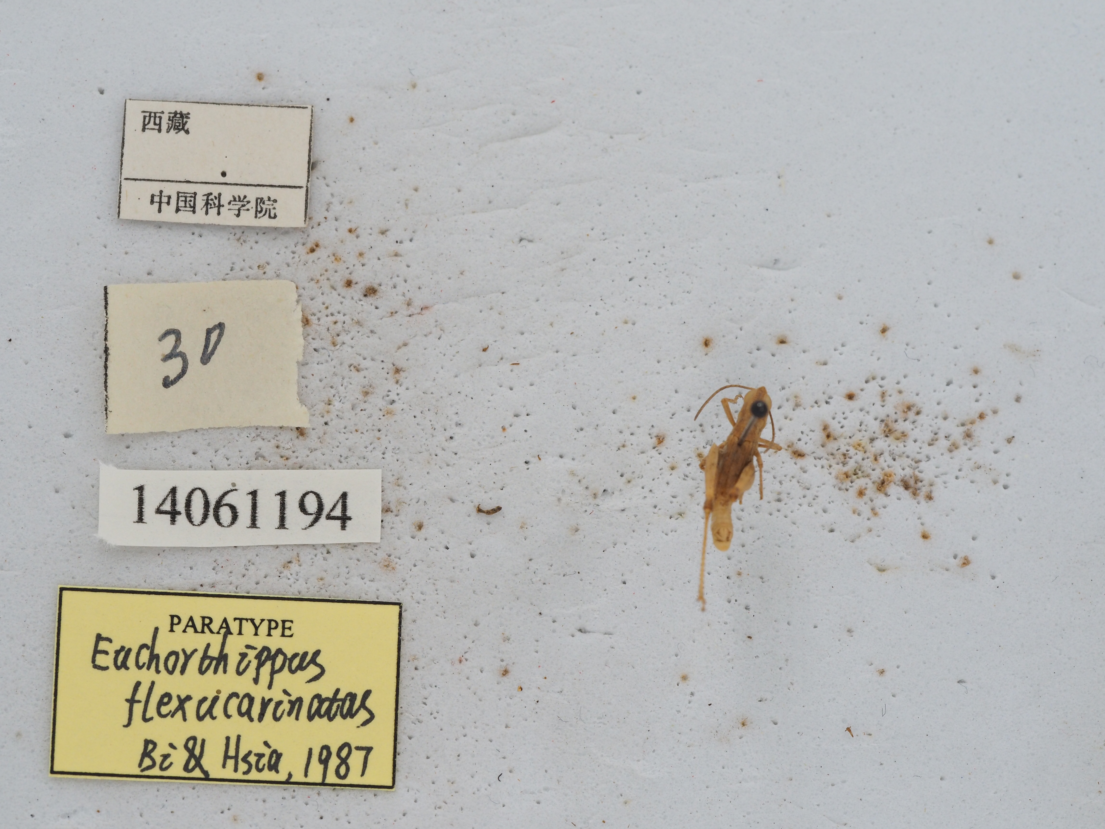 描述:雄性 体小型。头顶呈锐角形,较狭锐。头侧窝明显,长方形,其长为宽的2倍以上。颜面倾斜,颜面隆起较狭,两侧缘明显隆起,上端近平行,近唇基较扩展,中央具纵沟;颜面侧隆线略弯。触角丝状,到达或超过前胸背板后缘,中段一节的长度为宽度的2倍。复眼卵圆形,其纵径为横径的1.4倍,为眼下沟长度的1.6倍。前胸背板前缘平直,后缘呈弧形突出;侧隆线在沟前区明显弯曲,在沟后区较扩展,后横沟位近于中部,切断中、侧隆线,前横沟切断侧隆线,中横沟在背面不明显。中胸腹板侧叶间中隔宽大于长,其宽为长度的1.5倍;后胸腹板侧叶明显分开。前翅不发达,较宽短,顶端为圆形,到达腹部第5节中部;前翅的缘前脉域近基部较扩大,其顶端约到达前翅的中部。后翅退化,到达腹部第1节后缘。后足股节匀称,其长为宽的4倍;内侧音齿列在基部之半排列整齐。后足胫节外侧具刺11个,内侧12个,缺外端刺。爪间中垫略宽大,其长度不到达或到达爪之中部。鼓膜孔长卵形。肛上板三角形,顶端较锐,基部具纵沟。两侧缘至中段较隆起。尾须略扁锥形,超过肛上板端部,具细毛。下生殖板短锥形。阳具基背片内冠突的前叶甚大,与后叶毗连,桥较平。