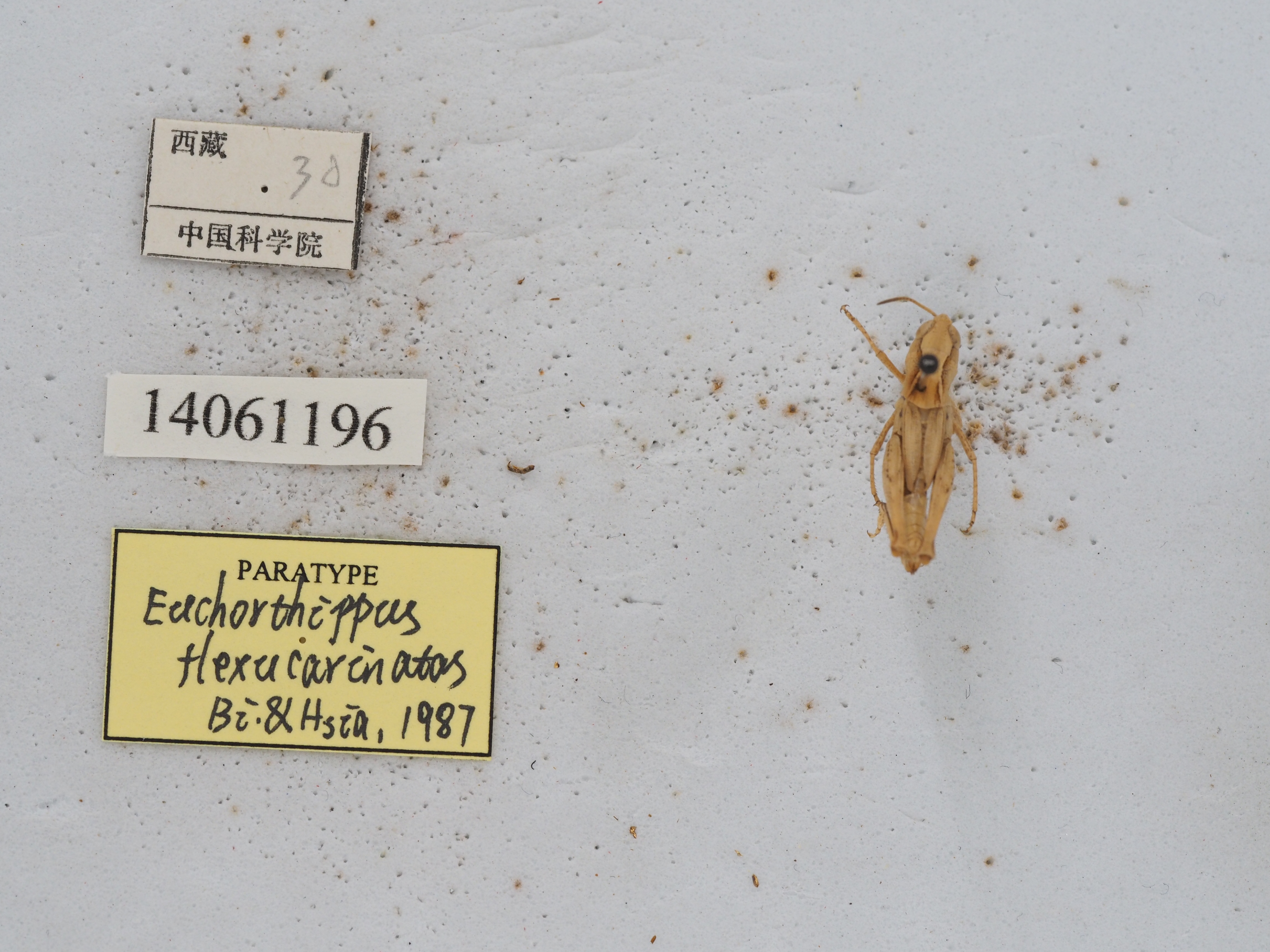 描述:雄性 体小型。头顶呈锐角形,较狭锐。头侧窝明显,长方形,其长为宽的2倍以上。颜面倾斜,颜面隆起较狭,两侧缘明显隆起,上端近平行,近唇基较扩展,中央具纵沟;颜面侧隆线略弯。触角丝状,到达或超过前胸背板后缘,中段一节的长度为宽度的2倍。复眼卵圆形,其纵径为横径的1.4倍,为眼下沟长度的1.6倍。前胸背板前缘平直,后缘呈弧形突出;侧隆线在沟前区明显弯曲,在沟后区较扩展,后横沟位近于中部,切断中、侧隆线,前横沟切断侧隆线,中横沟在背面不明显。中胸腹板侧叶间中隔宽大于长,其宽为长度的1.5倍;后胸腹板侧叶明显分开。前翅不发达,较宽短,顶端为圆形,到达腹部第5节中部;前翅的缘前脉域近基部较扩大,其顶端约到达前翅的中部。后翅退化,到达腹部第1节后缘。后足股节匀称,其长为宽的4倍;内侧音齿列在基部之半排列整齐。后足胫节外侧具刺11个,内侧12个,缺外端刺。爪间中垫略宽大,其长度不到达或到达爪之中部。鼓膜孔长卵形。肛上板三角形,顶端较锐,基部具纵沟。两侧缘至中段较隆起。尾须略扁锥形,超过肛上板端部,具细毛。下生殖板短锥形。阳具基背片内冠突的前叶甚大,与后叶毗连,桥较平。