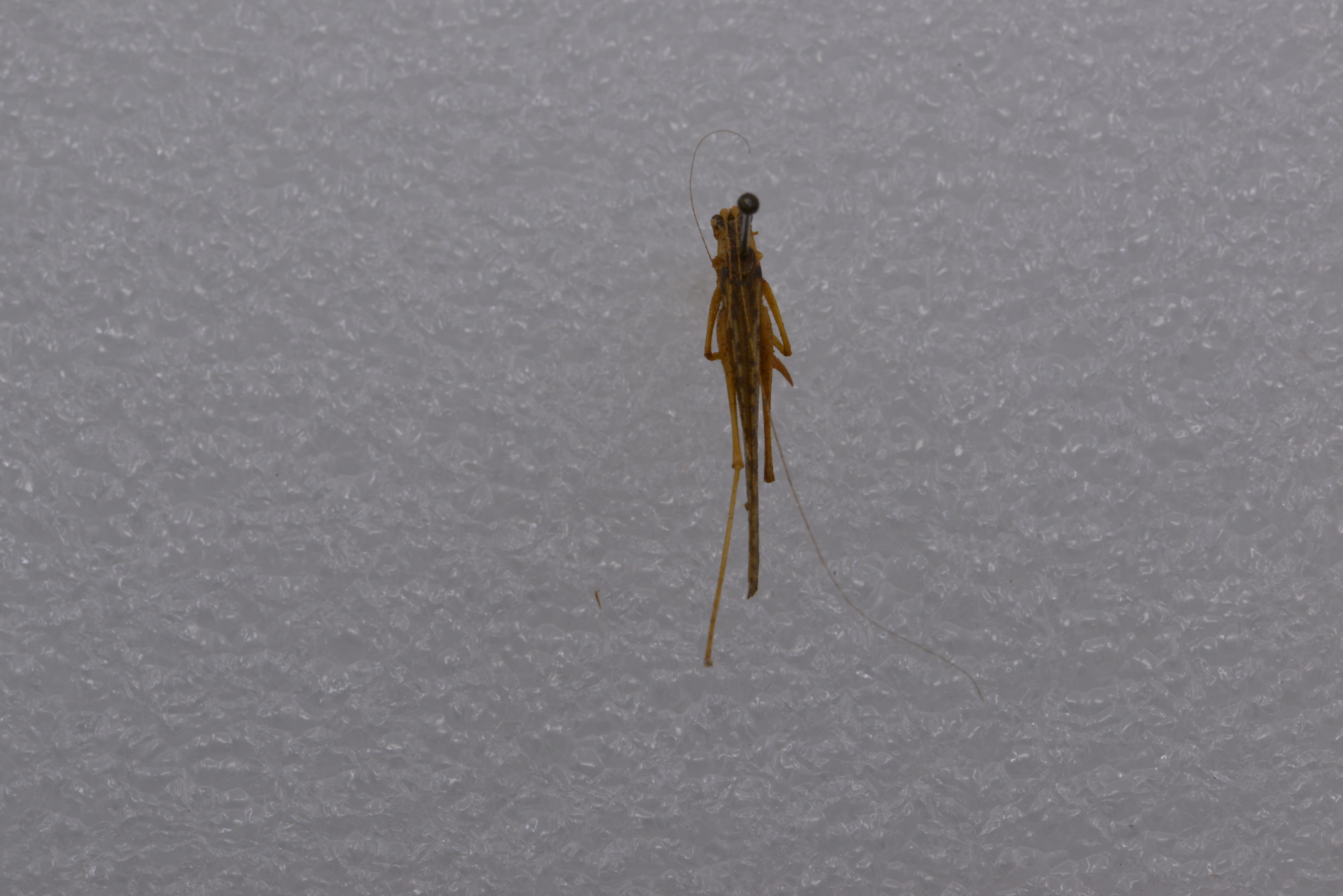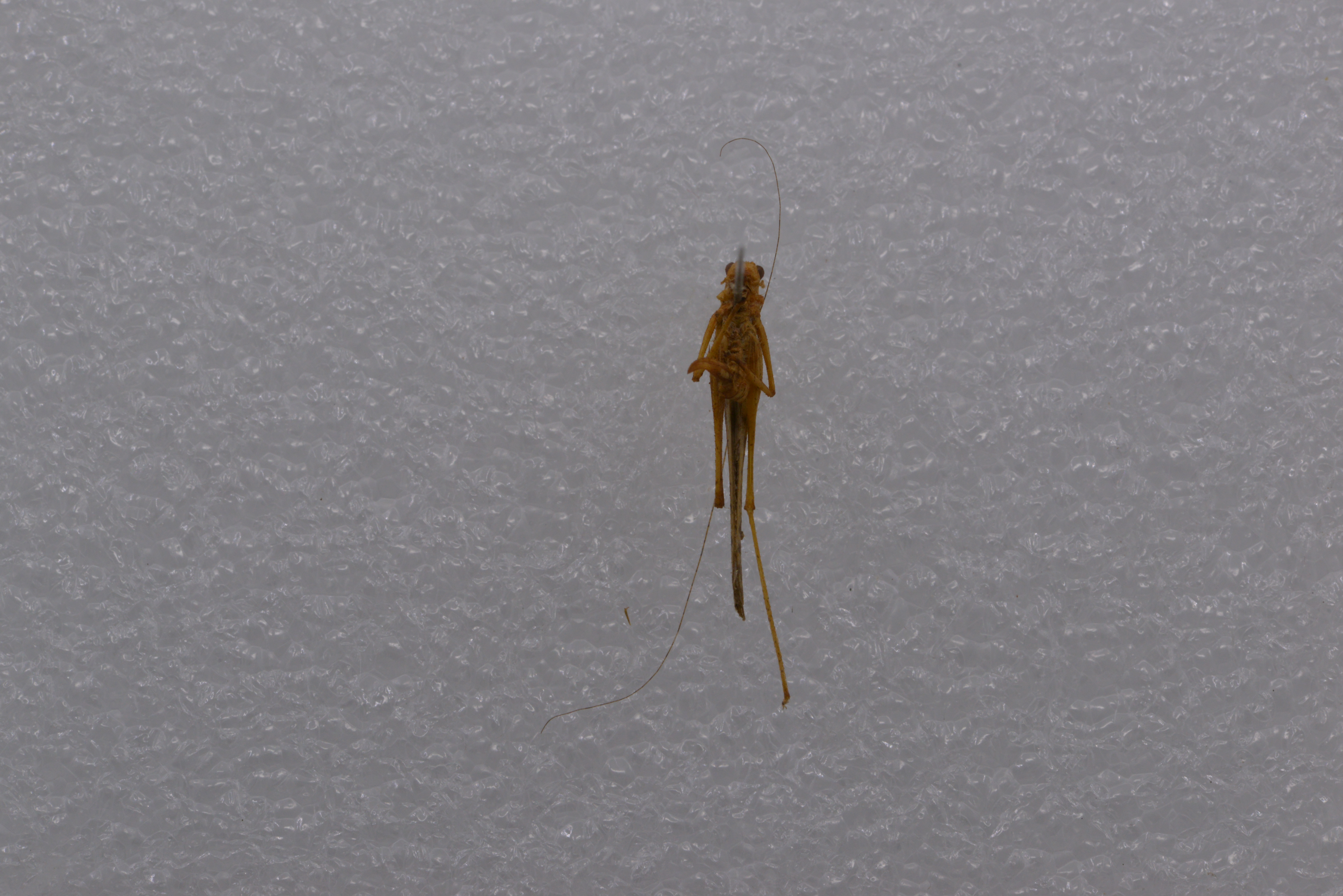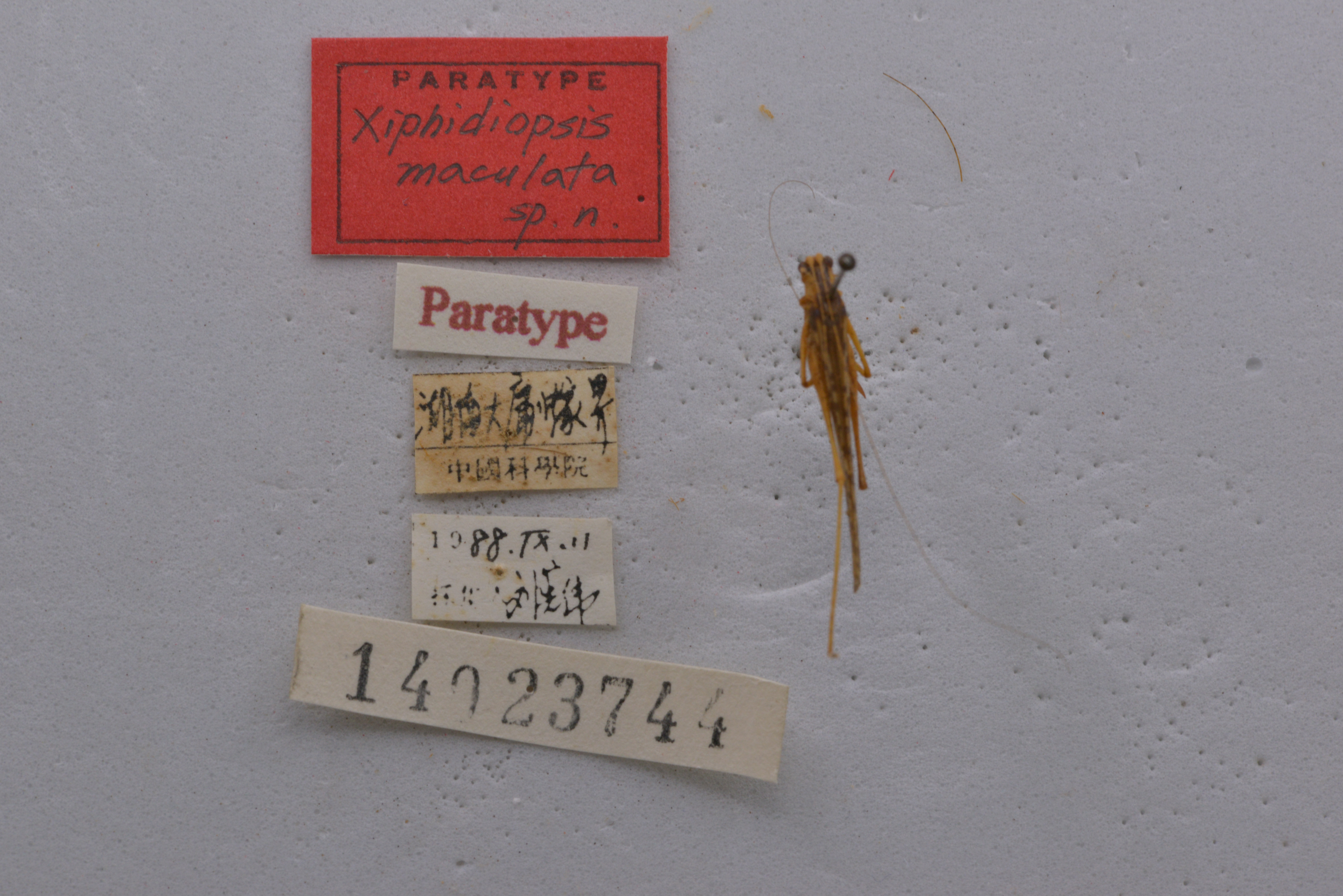 描述:雄性体小形。头顶圆锥形,顶端圆钝,背面具沟。复眼圆形,突出。下颚须第5节与第4节约等长,端部扩大。前胸背板沟后区稍扩张,前胸背板侧片后缘肩凹不明显。前足基节具刺各足股节度面无刺前足胫节腹面内、外剿排列形式为4,5(1,1)型后足胫节背面内线和外缘各具34-37小刺。前翅发达,颇远地超过后足股节端部后翅长于前