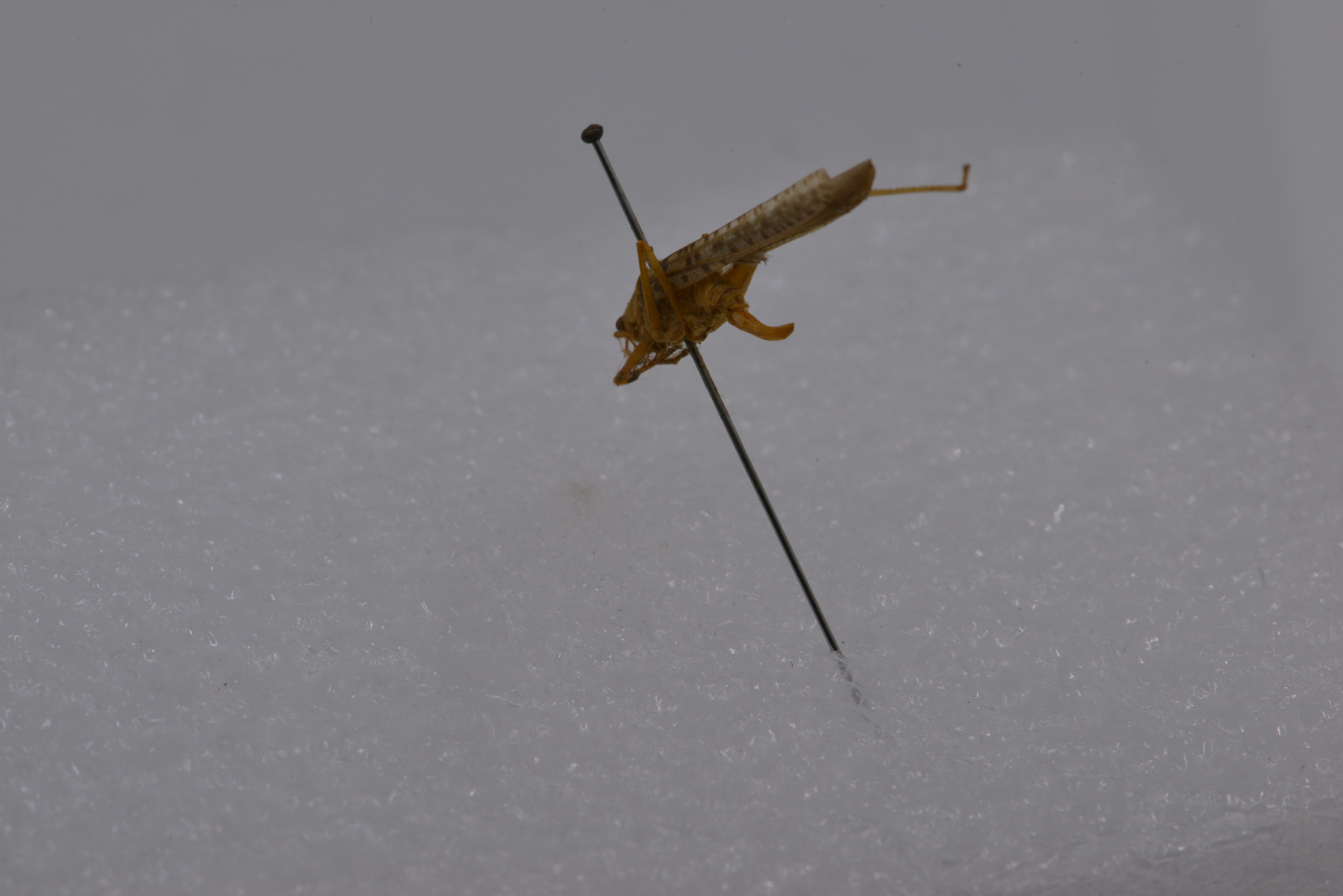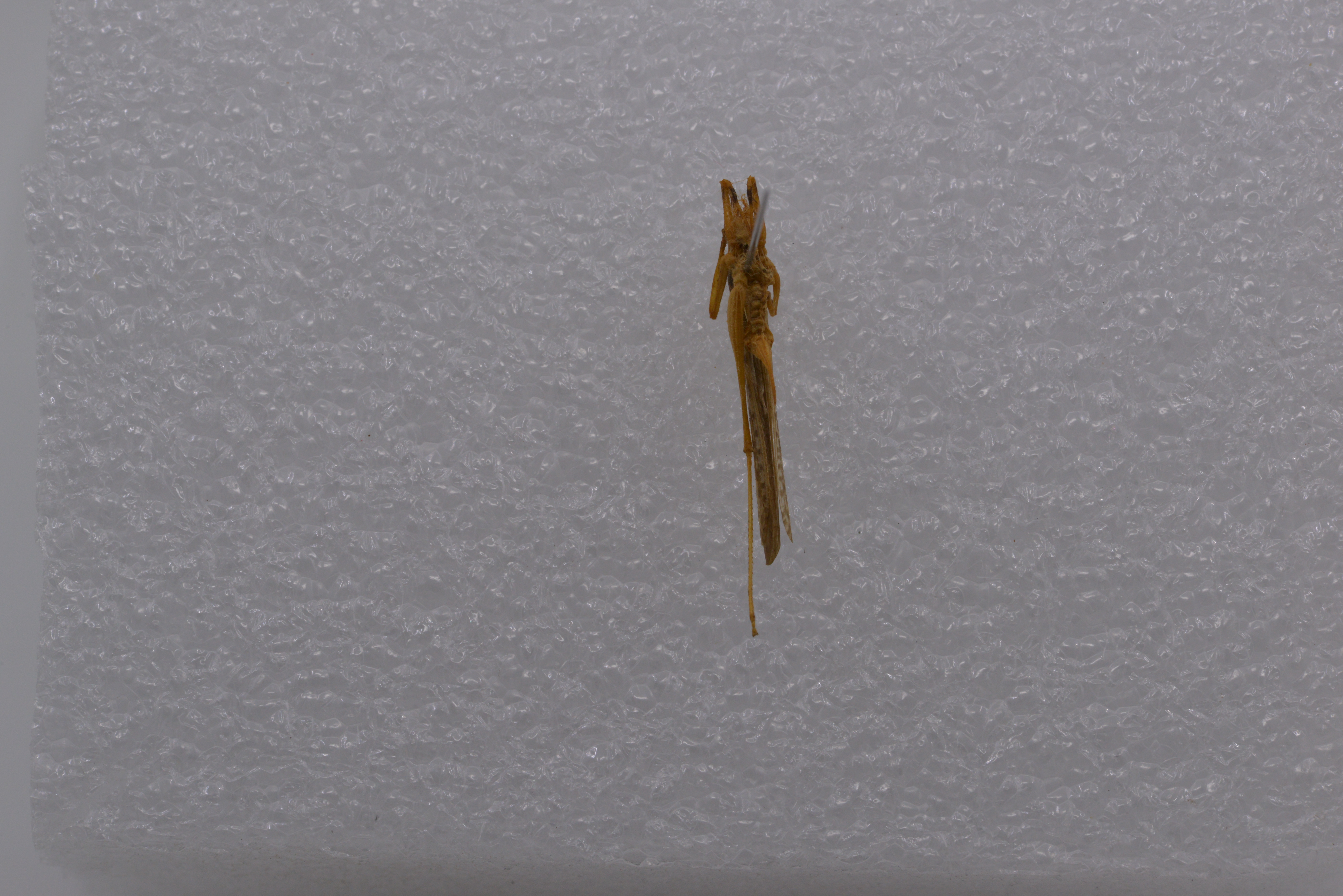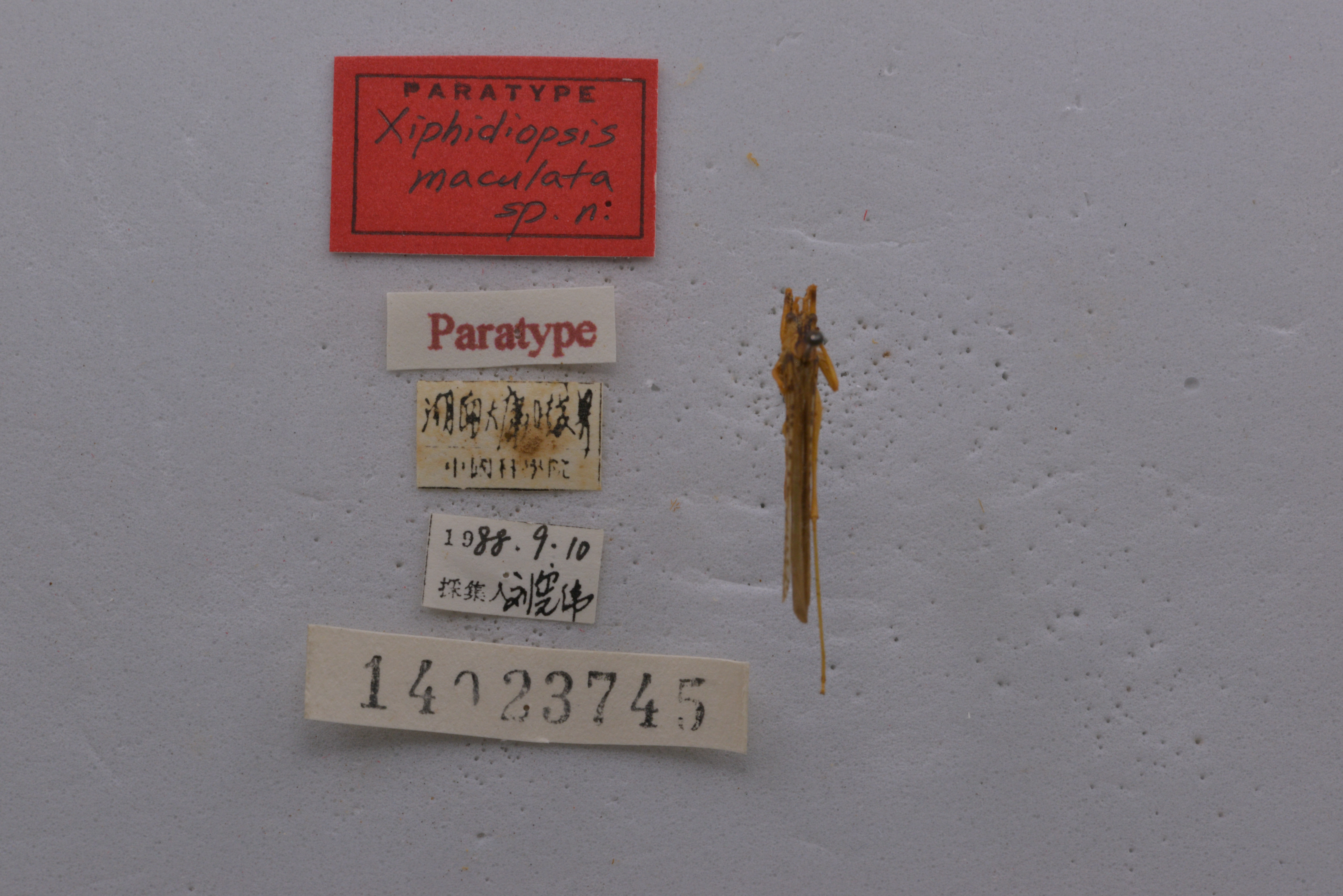 描述:雄性体小形。头顶圆锥形,顶端圆钝,背面具沟。复眼圆形,突出。下颚须第5节与第4节约等长,端部扩大。前胸背板沟后区稍扩张,前胸背板侧片后缘肩凹不明显。前足基节具刺各足股节度面无刺前足胫节腹面内、外剿排列形式为4,5(1,1)型后足胫节背面内线和外缘各具34-37小刺。前翅发达,颇远地超过后足股节端部后翅长于前