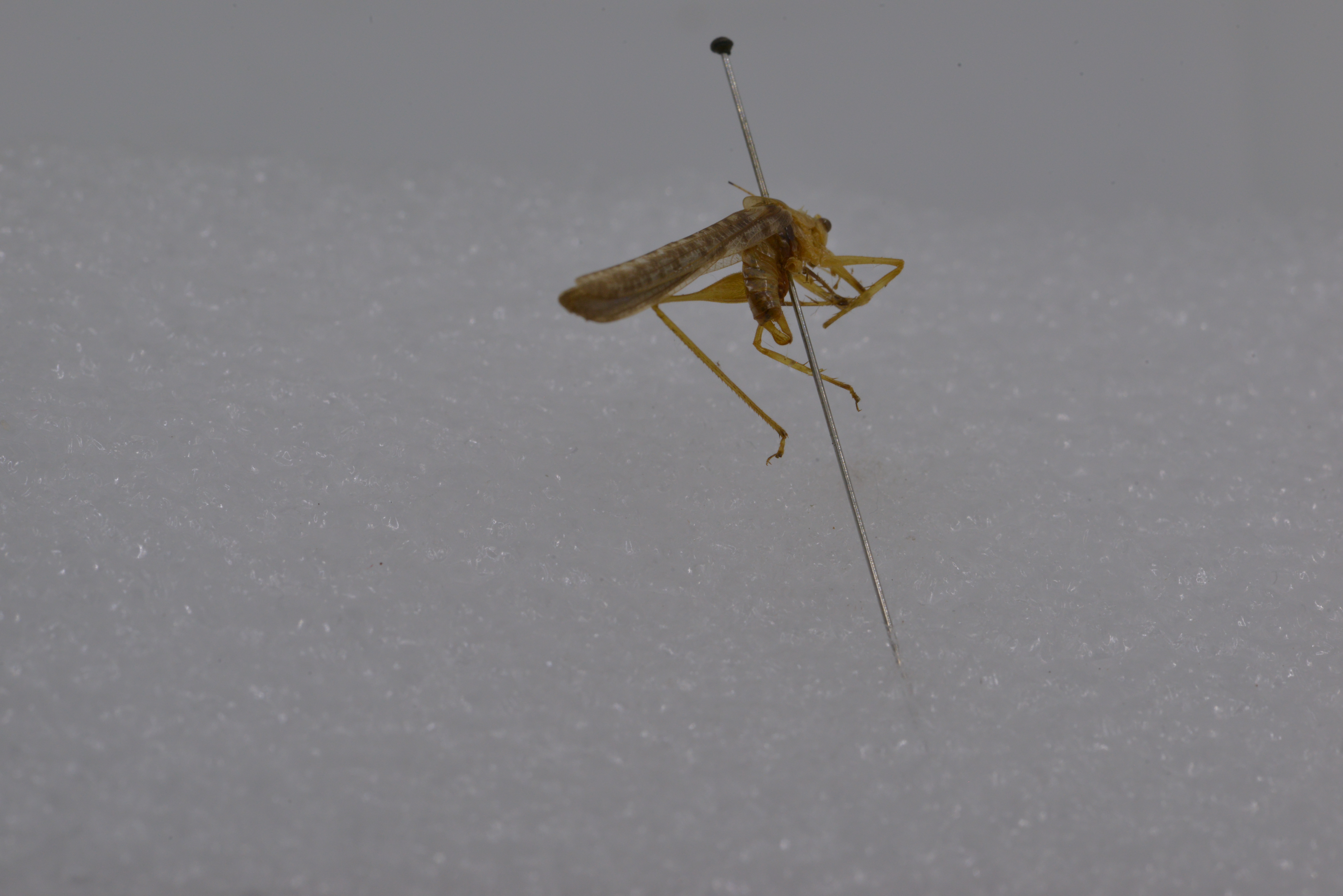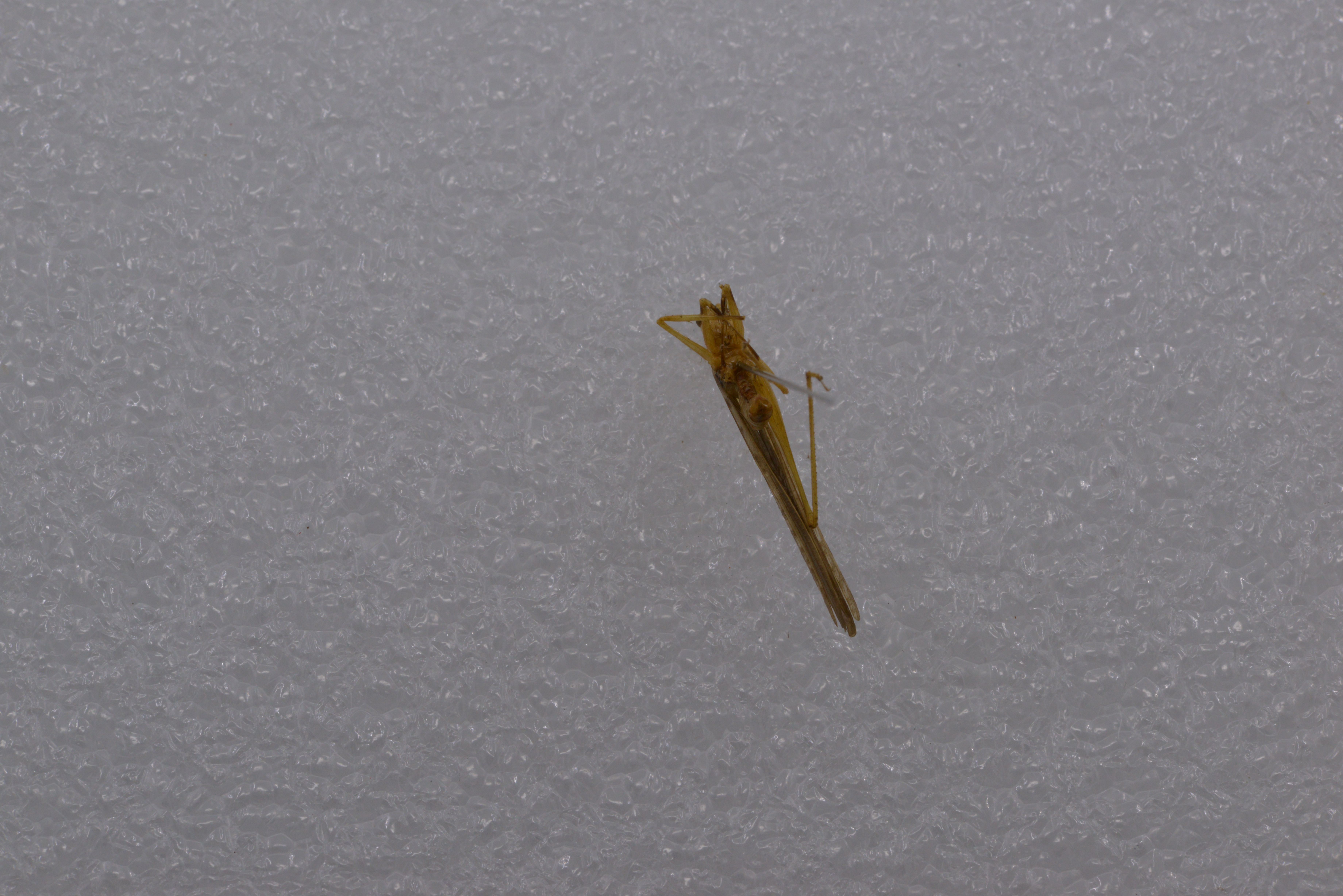 描述:雄性体小形。头顶圆锥形,顶端圆钝,背面具沟。复眼圆形,突出。下颚须第5节与第4节约等长,端部扩大。前胸背板沟后区稍扩张,前胸背板侧片后缘肩凹不明显。前足基节具刺各足股节度面无刺前足胫节腹面内、外剿排列形式为4,5(1,1)型后足胫节背面内线和外缘各具34-37小刺。前翅发达,颇远地超过后足股节端部后翅长于前