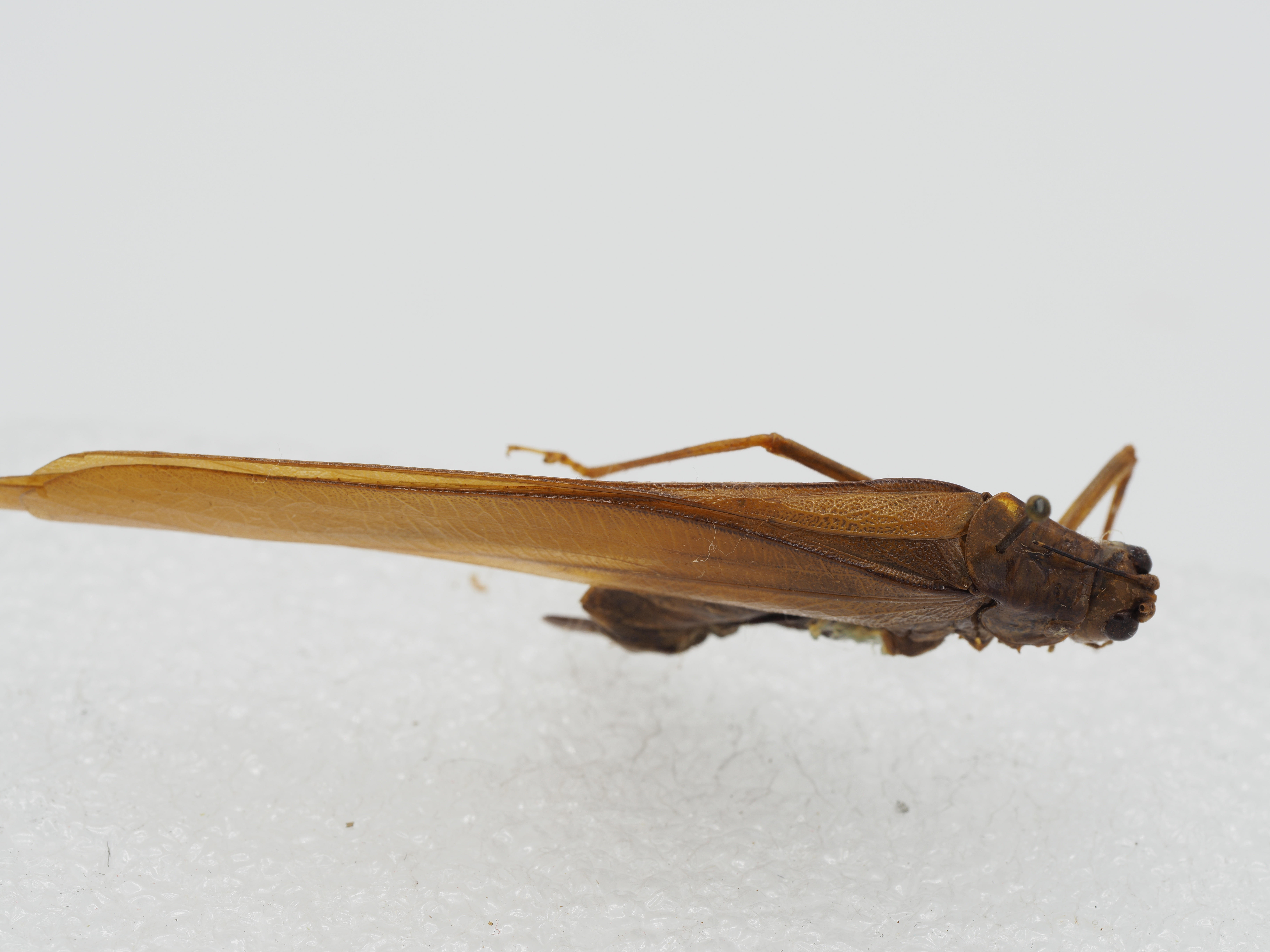 乎不大于高,下缘圆,后缘肩凹明显。前翅较长,超过后足腿节端部很远,具光泽,半