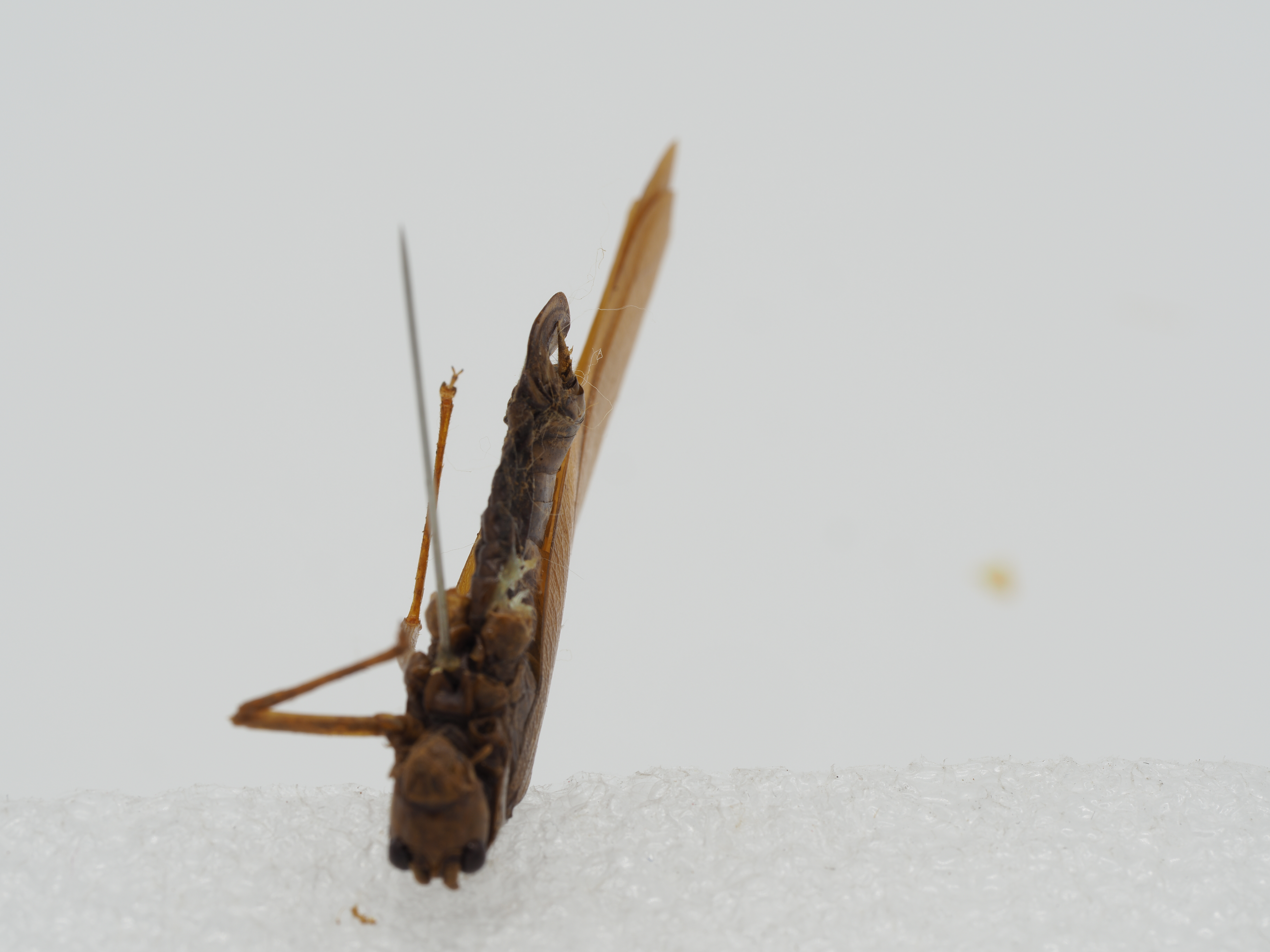 雌性 尾须较短,圆锥形;下生殖板三角形,端部钝圆;产卵器较短,背瓣不长于