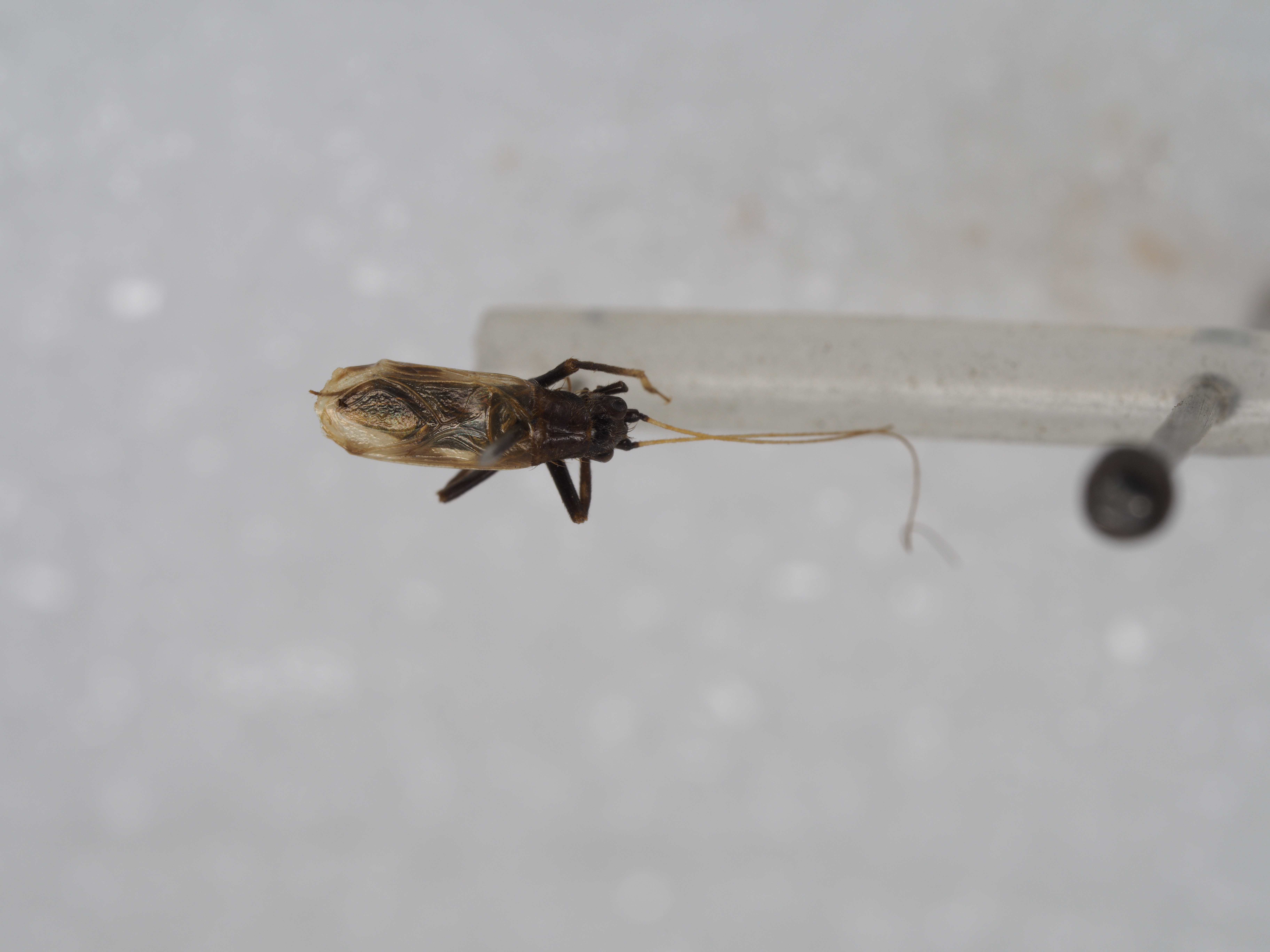 描述:雄性体小形,细长。头部稍延长,近颈部稍狭缩,背面具细茸毛和粗刚毛。复眼突出下颚须第5节端部较强地扩大。前胸背板前部较明显地狭于后部,前缘圆形,表面具细茸毛和刚毛。前翅胫节内、外两侧听器大,椭圆形,或内侧听听器退化呈凹窝状(短翅型)。后足胫节具3对可活动的长刺。前翅稍超过跗端,斜脉1条;音镜甚大,长大于宽.端域退化。侧面具3条纵脉。后翅发达或退化。雄性外生殖器如图14:b,c.