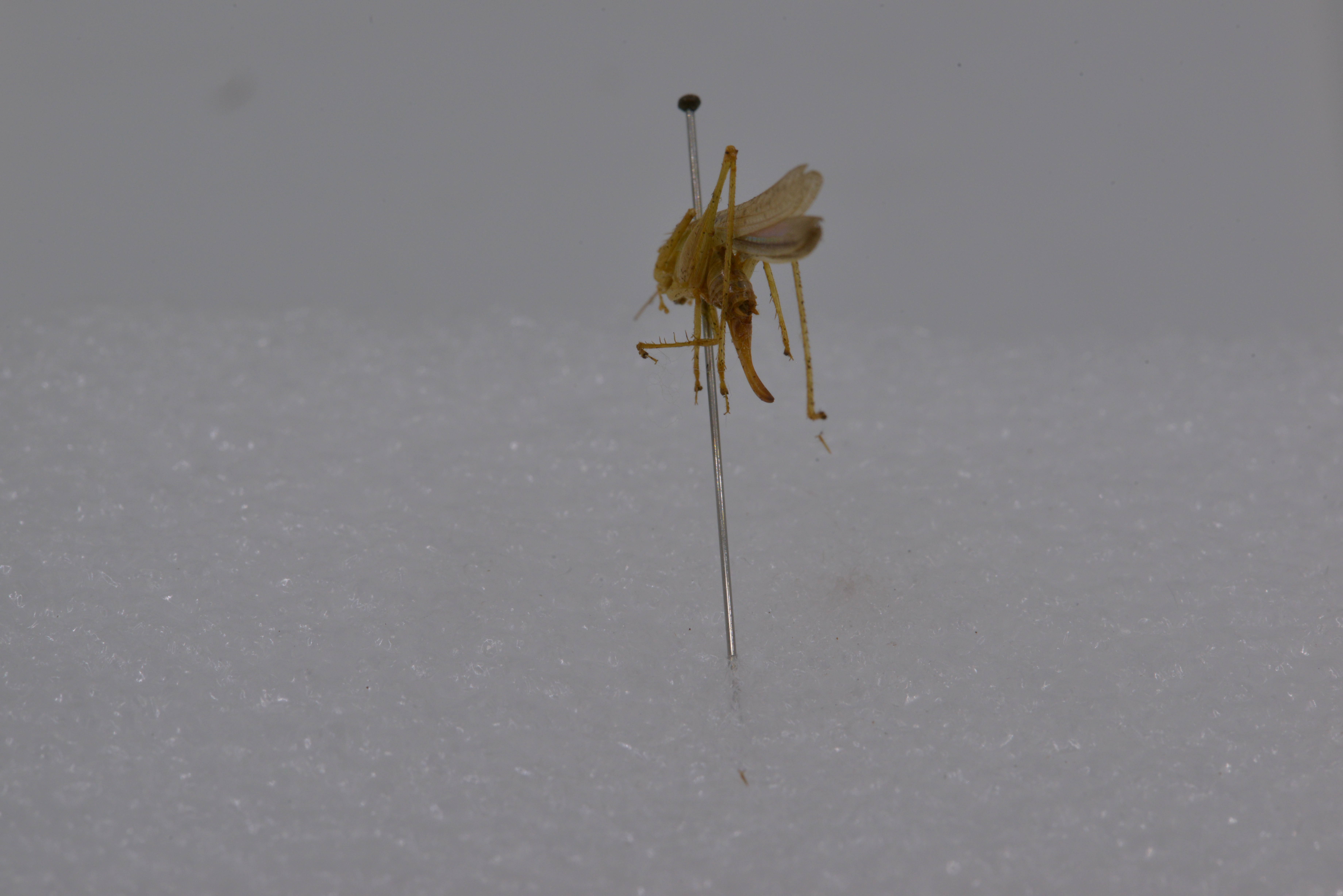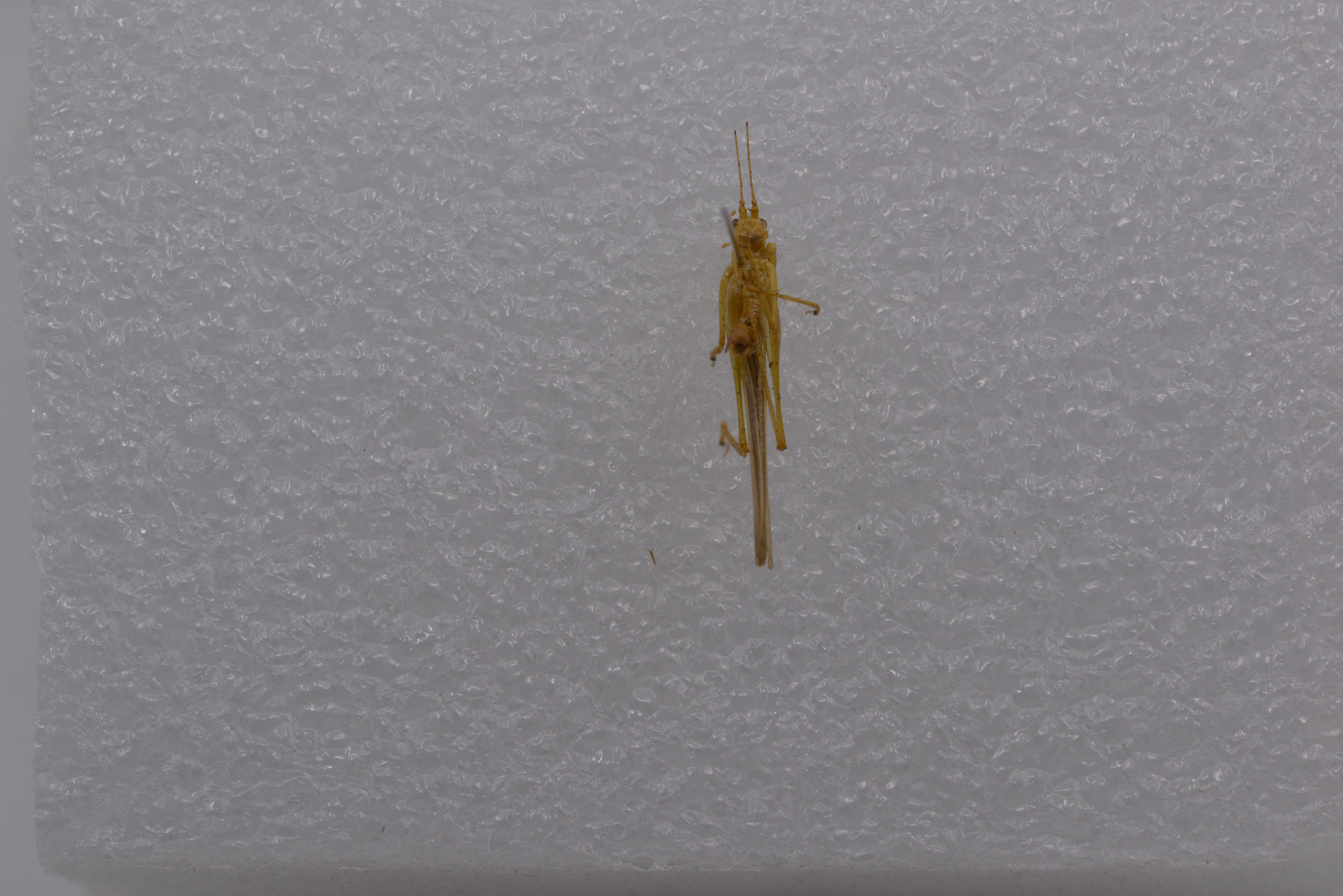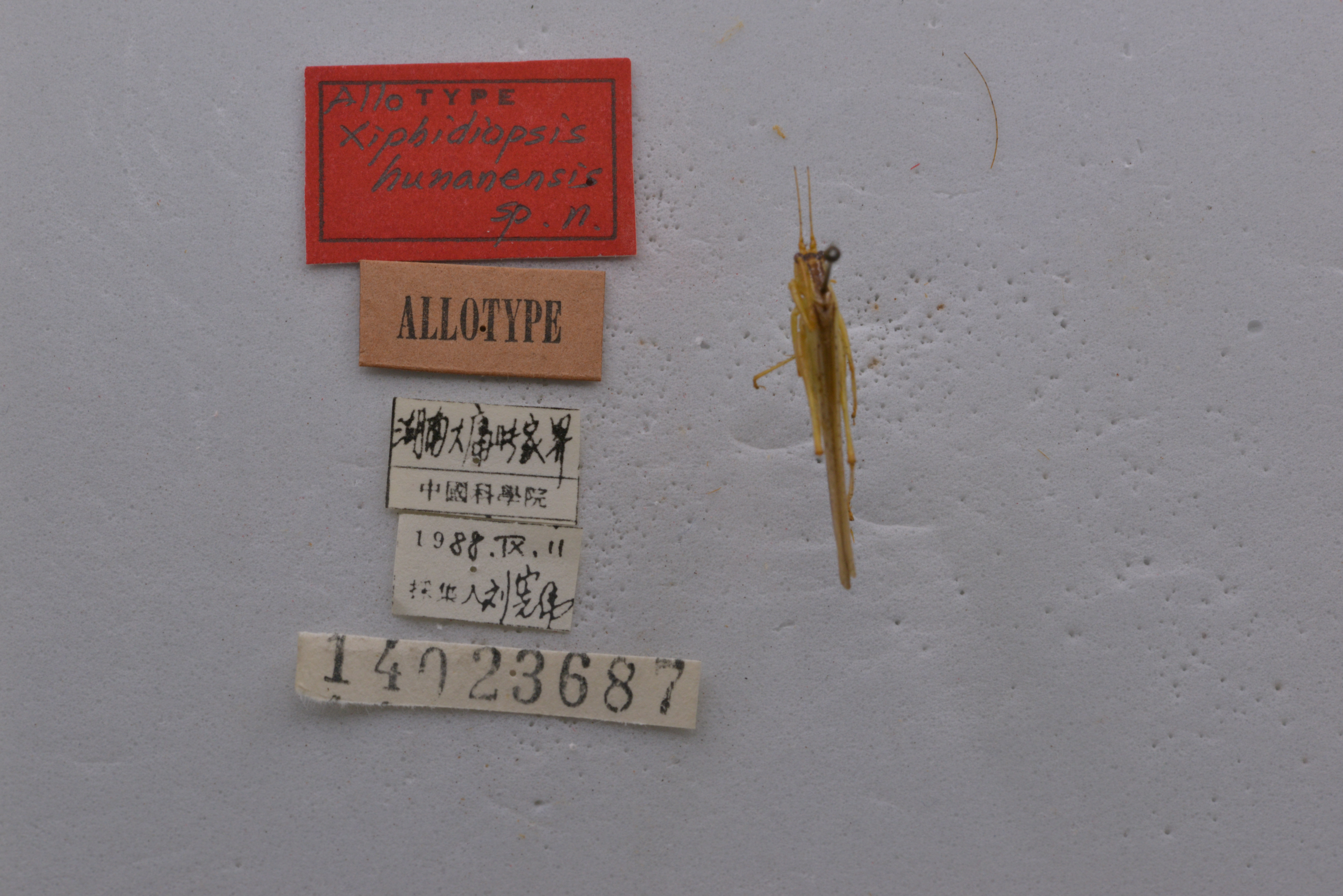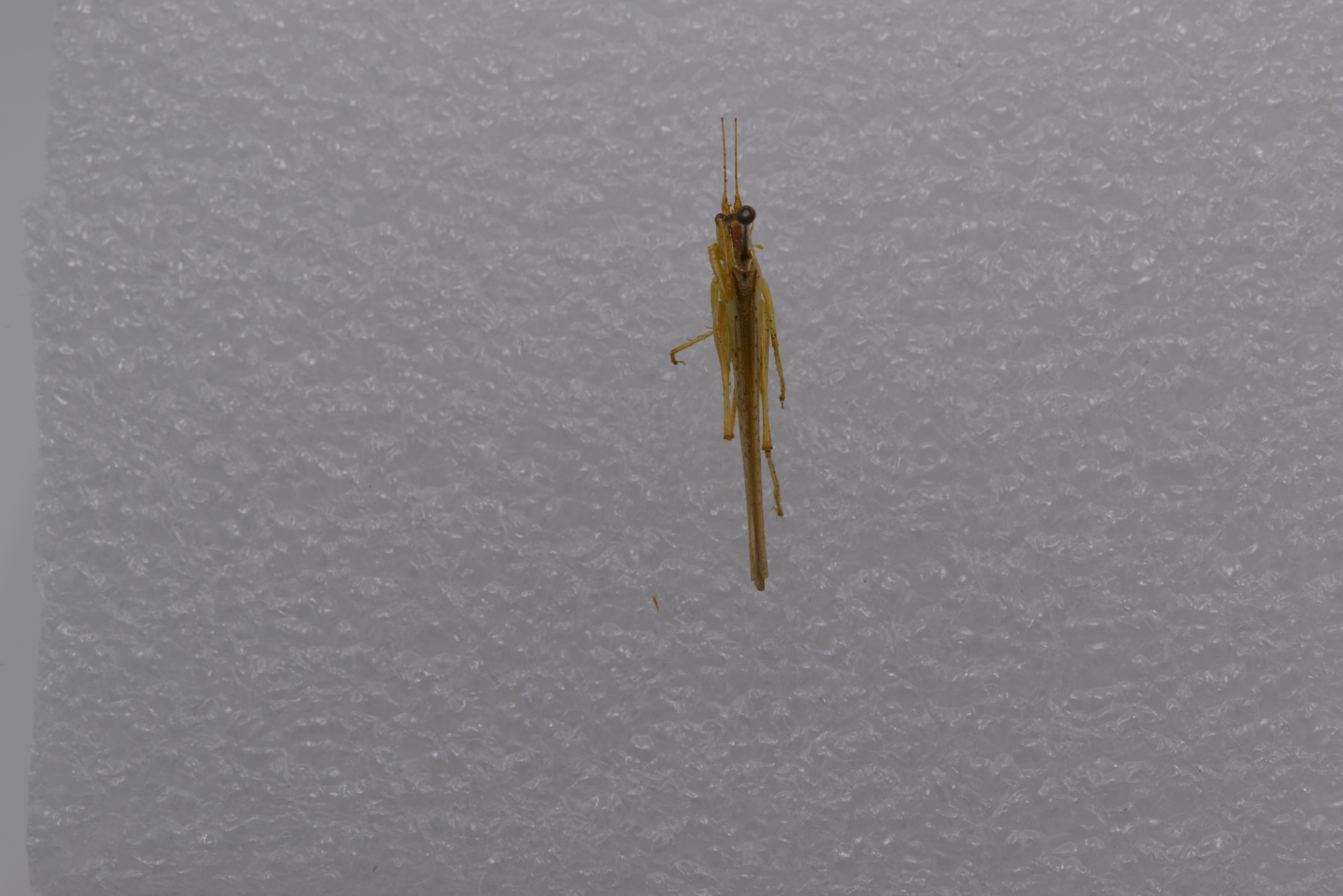 描述:雄性头部稍宽于前胸背板。头顶向前呈圆锥形突出}顶端较钝,背面具沟。复眼圆形,突出。下颚须第5节与第4节约等长,端部扩大。前胸背板侧片后缘强倾斜,肩凹不明显。前足基节具刺,各足股节腹面无刺。前足胫节腹面内、外刺排列形式为4,5(l,1)型,后足胫节背面内缘和外缘各具30-33个小刺。前翅基长,颇远地超过后足股节端部后翅稍长于前翅。第10腹节背板不变形,后缘稍内凹。尾须较细长,基半部圆柱形,端半部侧扁,内侧强凹陷侧观尾须中部稍狭缩。下生殖板基短,后缘平截,腹刺位于亚端两侧。