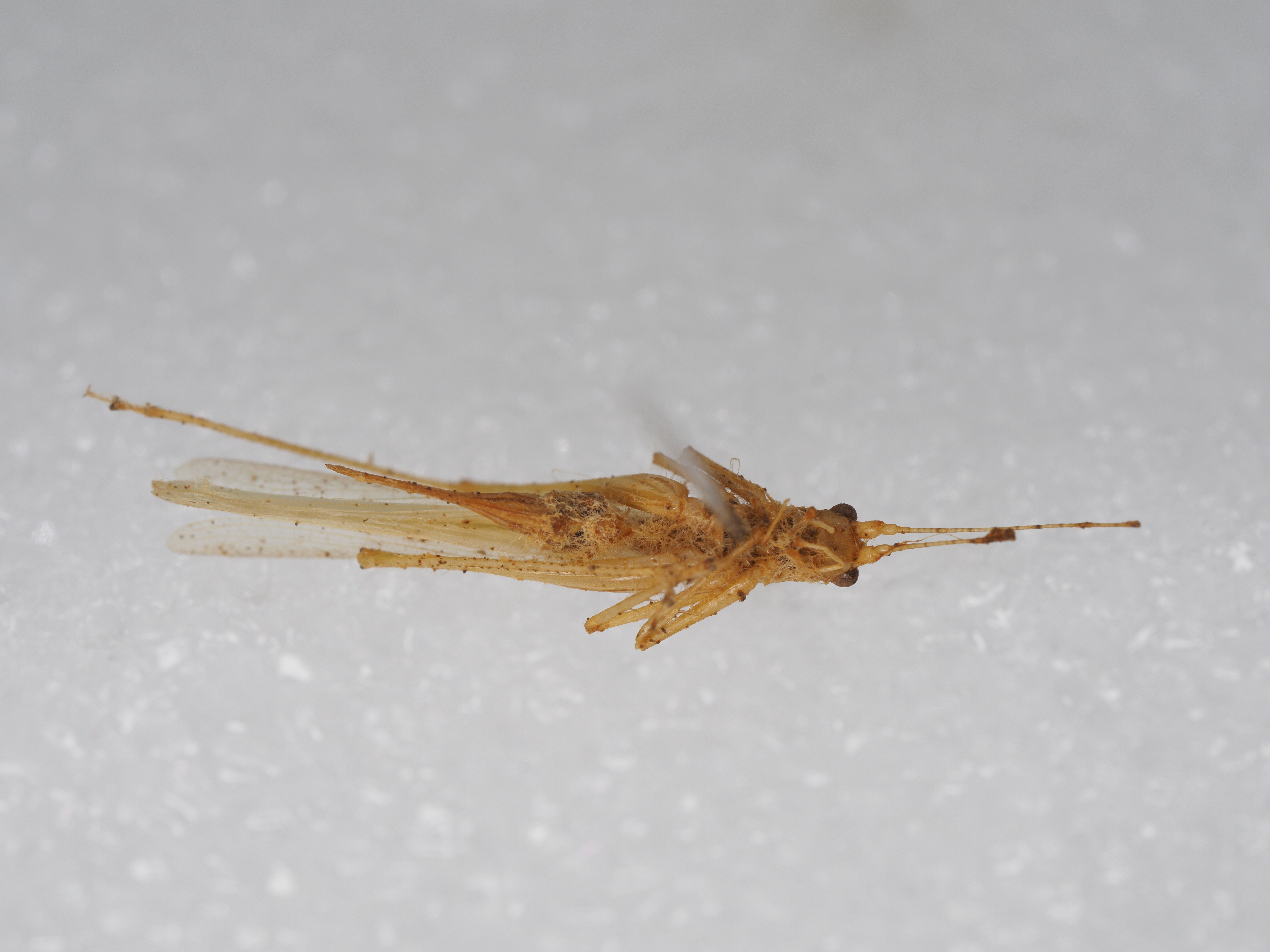 体淡绿色。触角具稀疏的暗色环纹,前翅具少量较明显的暗点,后足股节膝叶端部具黑斑,后足胫节背缘刺褐色。