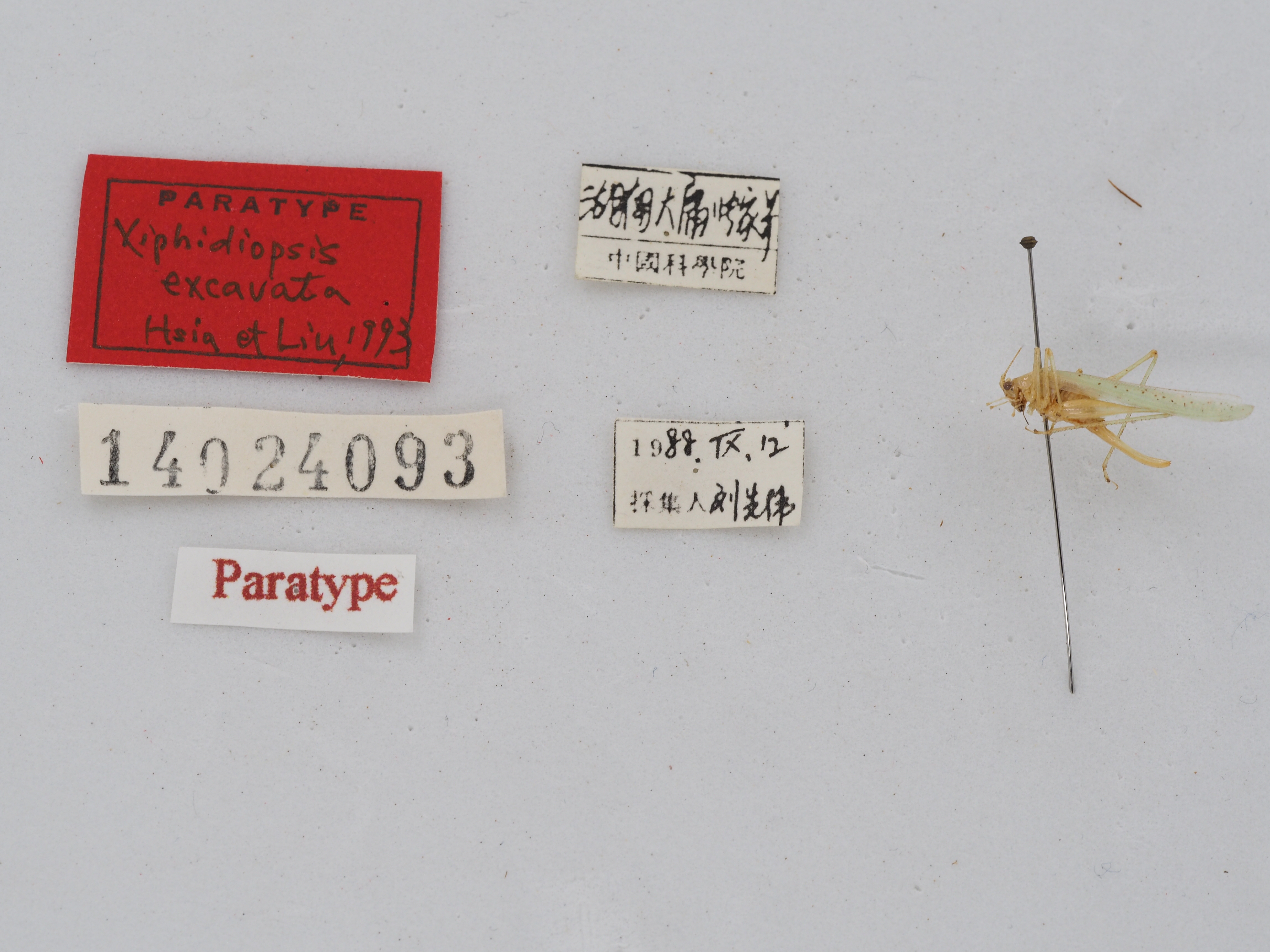 描述:雌性:体形甚小。头顶圆锥形,端部较圆钝,背面具沟。复眼圆形。突出。下颚须较细长,第5节端部稍扩大。前胸背板刨片后缘肩凹不基明显。前足基节具刺;各足股节腹面无刺前足胫腹面内、外刺排列形式为4,5(I,I)型;后足陉节背面内缘及外缘各具27-29小刺。前翅基发达颇远地超过后足股节端部后翅稍长于前翅。第8晚节背板后缘具较明显的侧凹(图12a),第7腹板稍向后突出,覆盖下生殖板基部,下生殖板圆三角形,基半部中央强收缩,两侧深凹陷,具明显的中隆脊(图12b)。产卵瓣较短,稍向上弯曲。