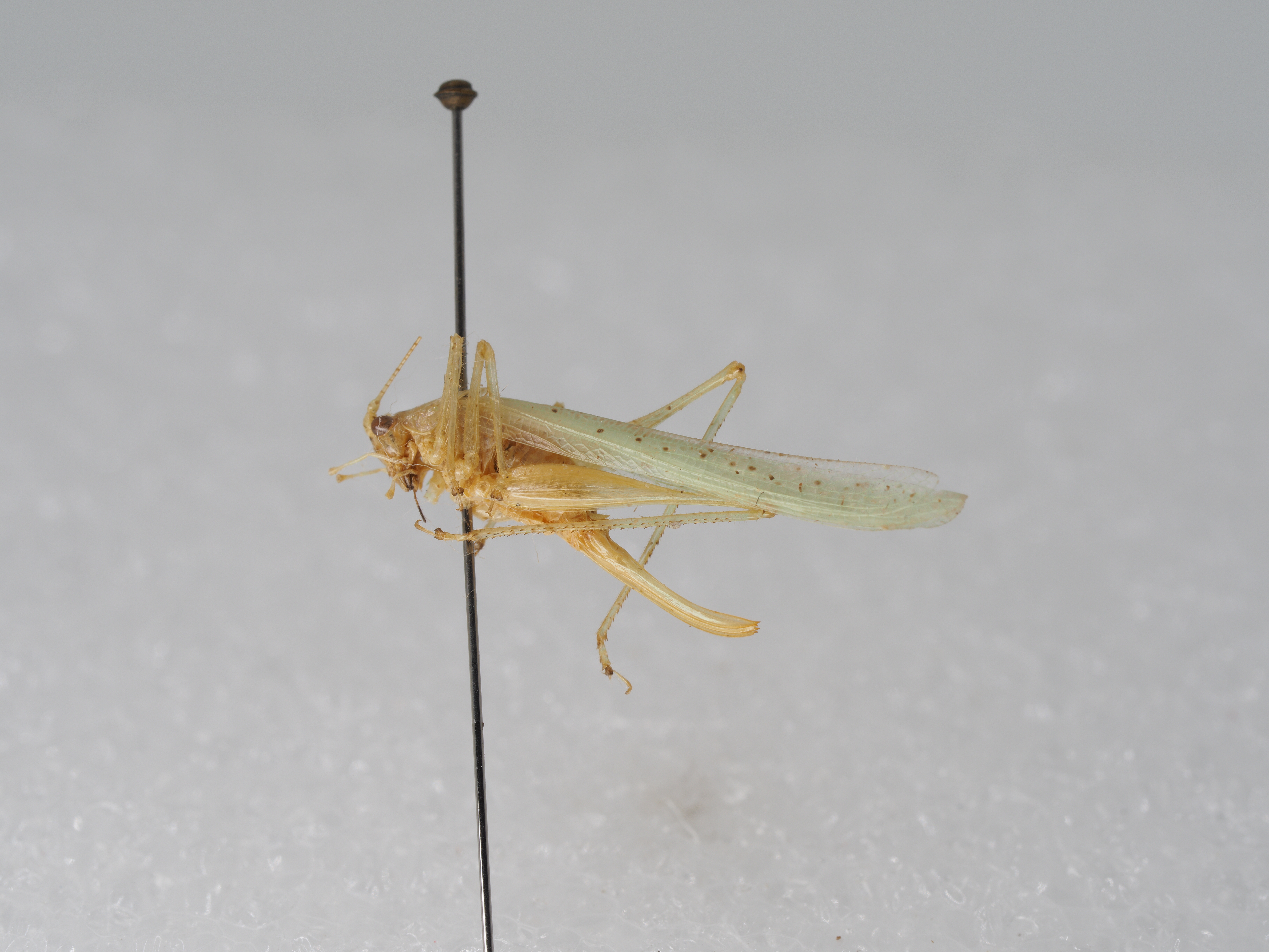 体淡绿色。触角具稀疏的暗色环纹,前翅具少量较明显的暗点,后足股节膝叶端部具黑斑,后足胫节背缘刺褐色。