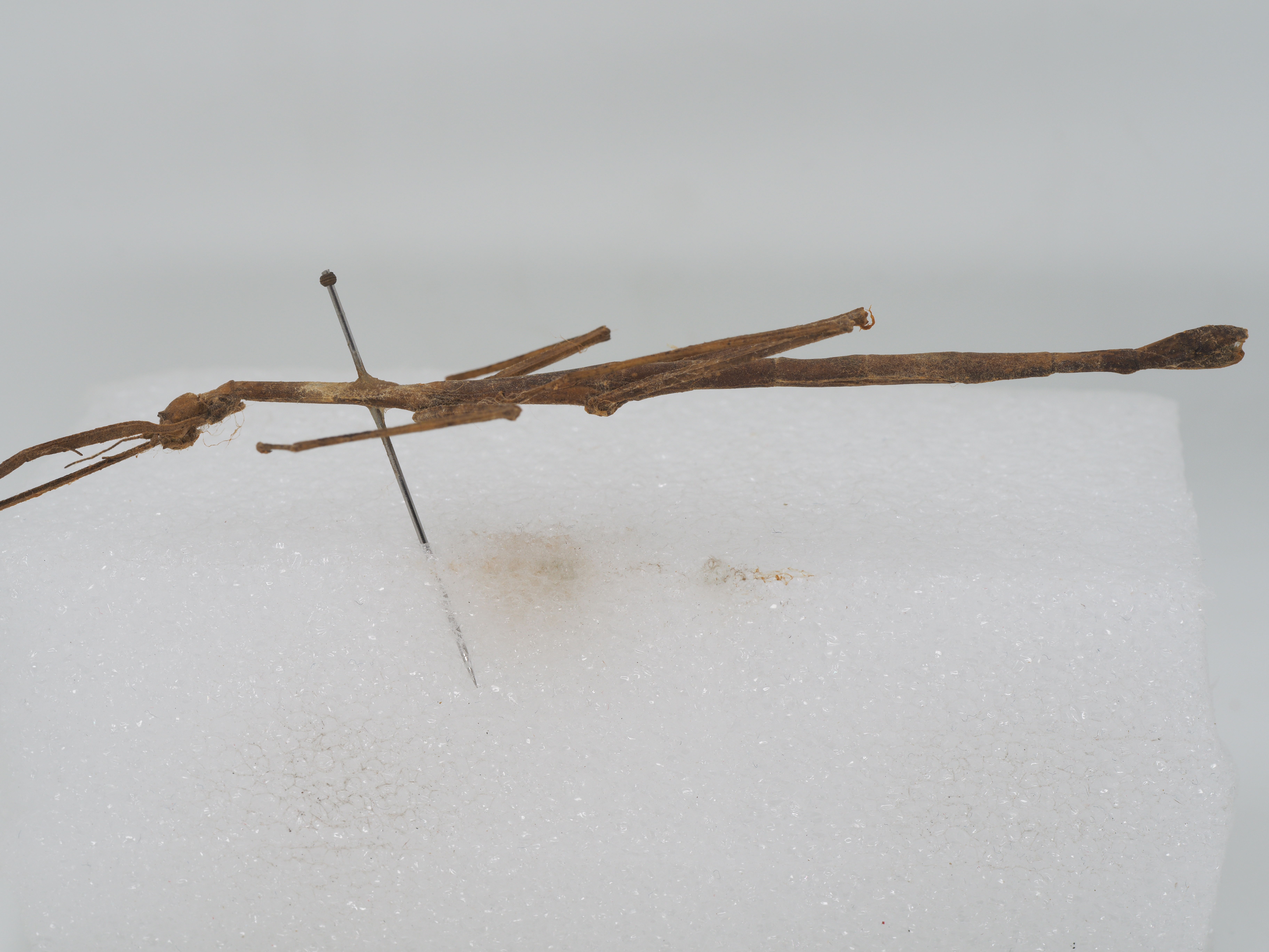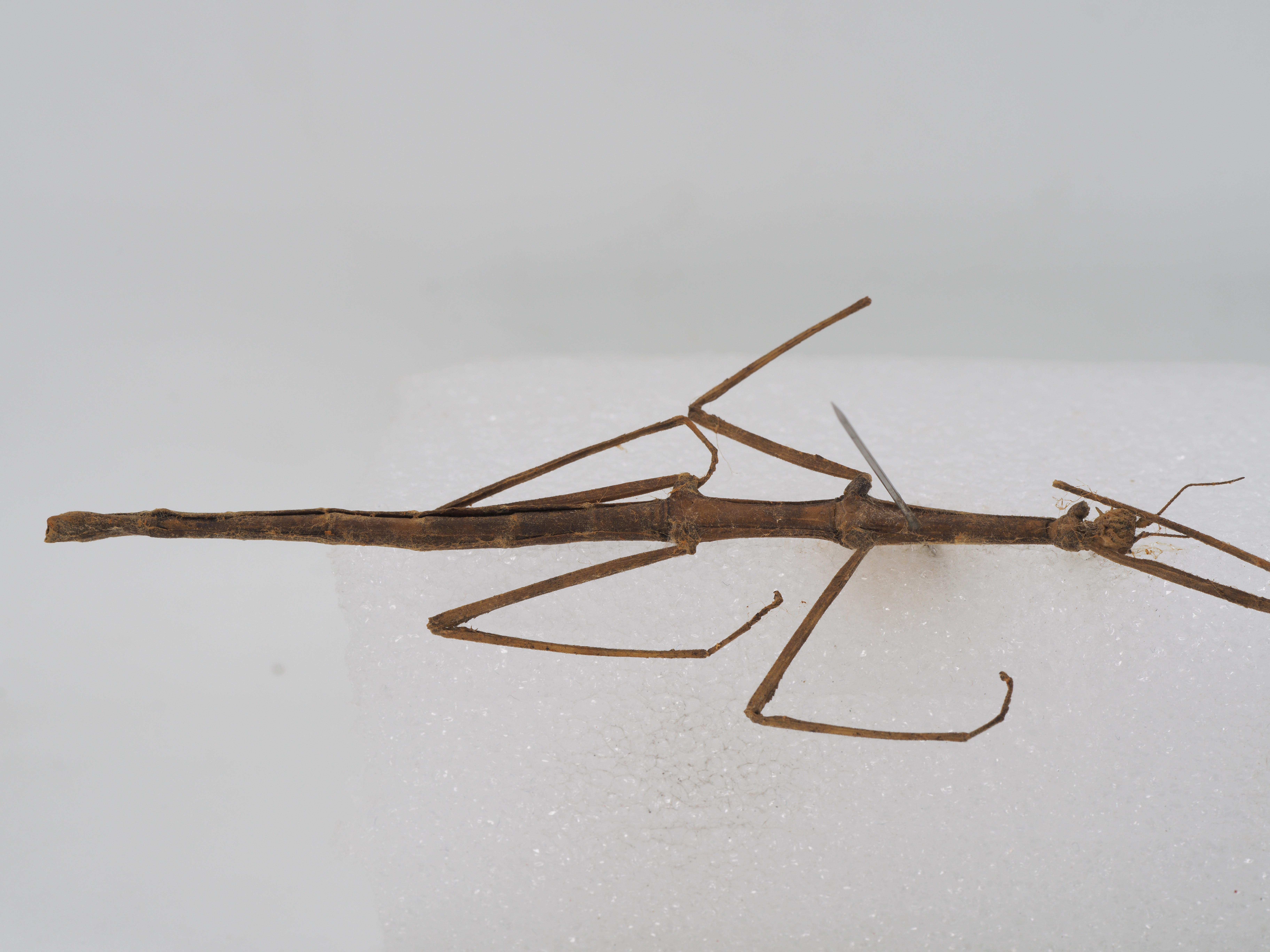 描述:雌性:体褐色,平滑。头短卵形,略长于前胸背板,头背具一对圆锥形刺;中部两侧各具一个半球形复眼;复眼之间在头顶具一对较大的圆锥形刺,刺倾斜至口器;后头较突出,中间有一条细纵线;触角较短,短于前足股节,且分节明显,共23节,基节为大而扁的椭圆形,长为宽的2倍,其长为第2节的2.5倍;第2节与第3节等长,但第2节较粗,顶端节较长,是第2节的2倍,中段各节都较短。前胸背板较平滑,长方形,其长略大于宽,后端较宽,前缘略呈波形,后缘较平直,前横沟近前缘,较深切,伸至两侧边缘,中横沟位于中部之前,较浅,不伸至侧缘,中隆线向前至前横沟,被中横沟所割,向后未伸至后缘。中胸较长,前狭后略宽,其长为前胸背板的5 倍以上;背面具一条细纵沟。后胸为扁筒形;前、后端等宽,背面亦具一条细纵沟。后胸略短于中胸。中节长短于其宽。足较粗短;前足股节基部较弯曲,其长略短于胫节,其背侧中隆线和腹侧中隆线均具有稀少的齿。中足和后足股节均短于前足股节,在其腹侧中隆线端部扩大处具数个齿和其胫节腹侧基部中隆线处具有一个弧形扩大的基片,无齿。腹部向后趋狭,具一条中纵沟,腹部第1节短于第2节,由此类推,第4节短于第5节,第6节则短于第5节,第8、9节更短,第8节短于或等于第9节,第8、9节之和约等于第7节长。最后3节具一条中隆线,略翘起。第9节背板后缘中央具小三角形凹入,肛上板明显伸出一点,与第9节后缘形成平切直线。腹瓣为长匙状,顶端较圆钝;尾须圆锥形,较短,不超出第9节背板后缘。