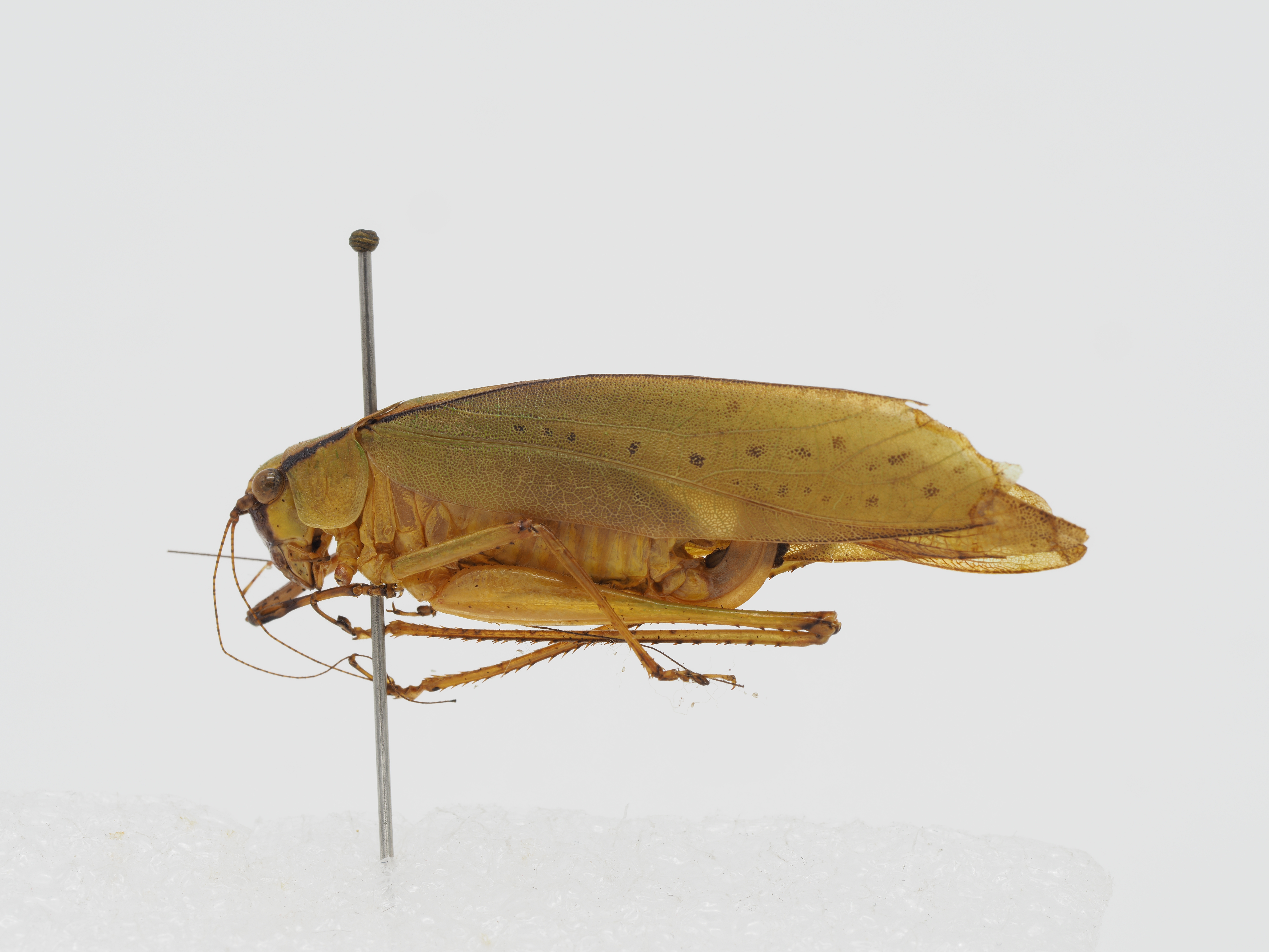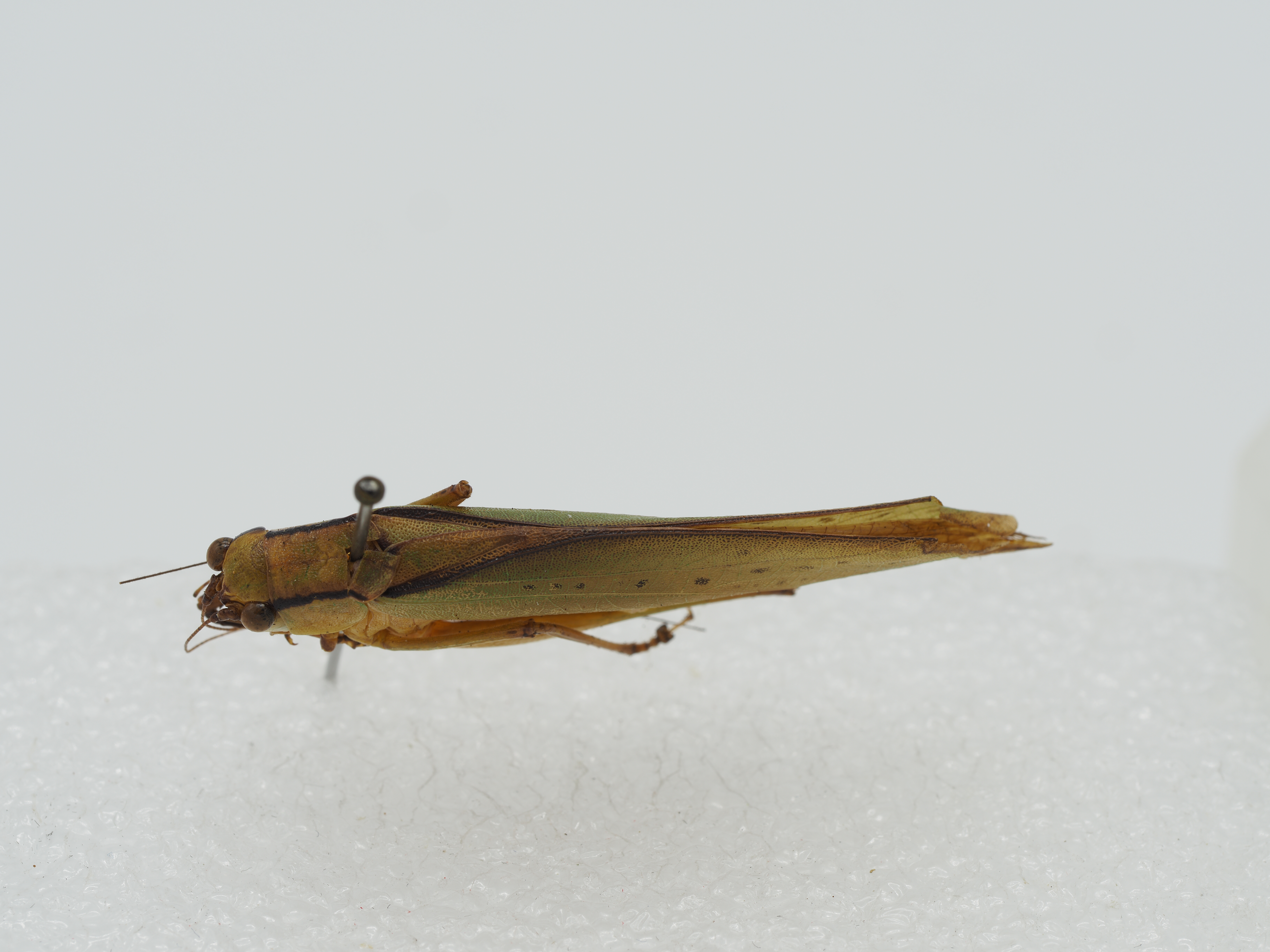 描述:雌性体形中等,头部背面和前胸背板密被刻点和细皱。头部背面稍平坦,颜面侧观近乎垂直。头顶较短和较低,稍狭于触角第1节的宽,与颜顶相接触,背面具沟。复眼圆形,突出。下颚须细长,第5节长与第3节和第4节之和约等长。前胸背板背面平坦,前缘微凹,后缘宽圆,侧隆线平行。前足基节具刺各足腹节度面具小刺,膝叶端部无刺前足胫节背面除外端距以外无背距,内听器为封闭型,外听器为开放型。后足胫节背面内缘及外缘各具19-25个小刺。前翅发达,远超过后足股节端部,Rs脉从R脉中部分出,中部分为两枝。后翅长于前翅。下生殖板短,三角形,端部钝圆。产卵瓣较短,边缘具细钝