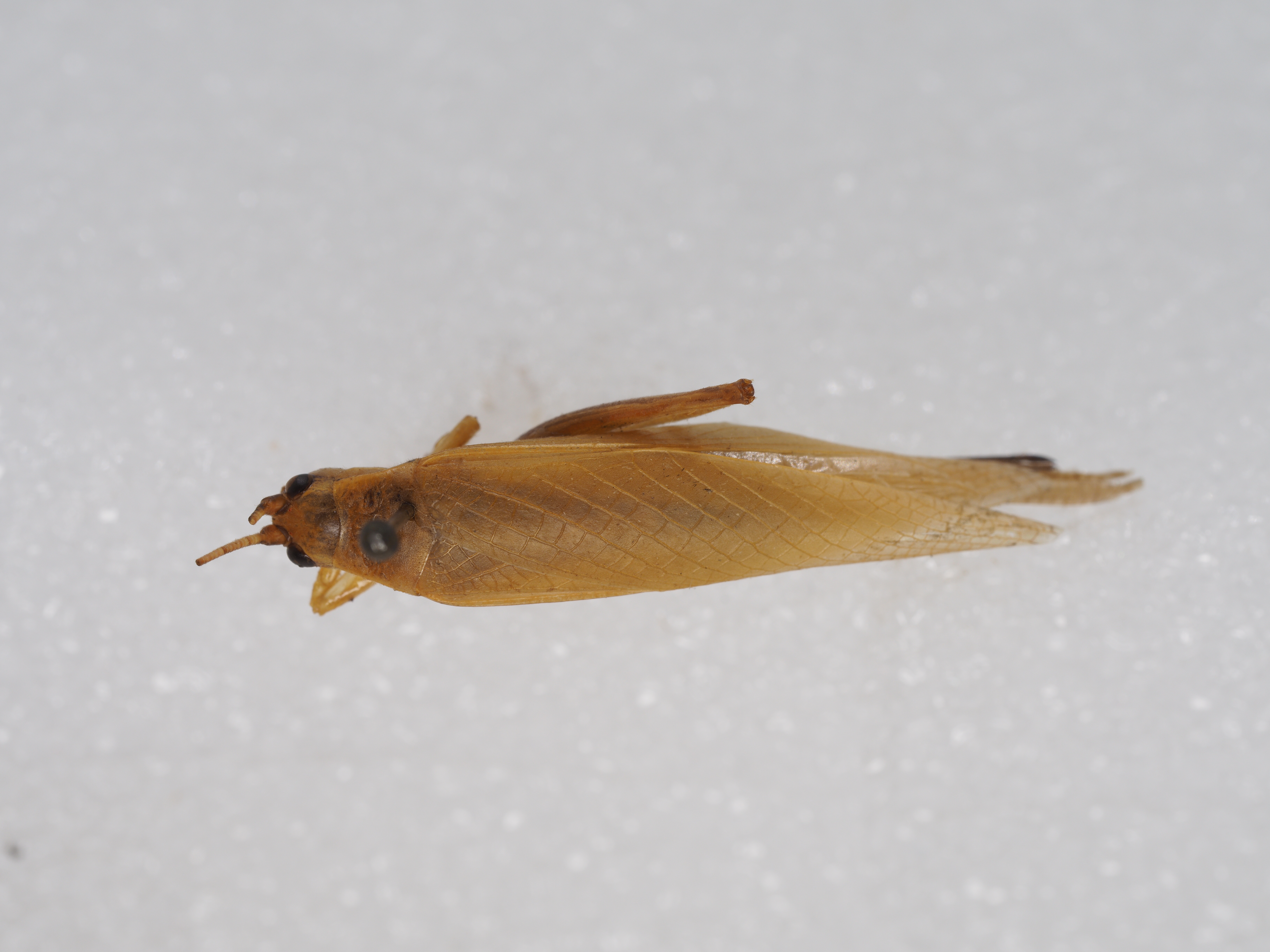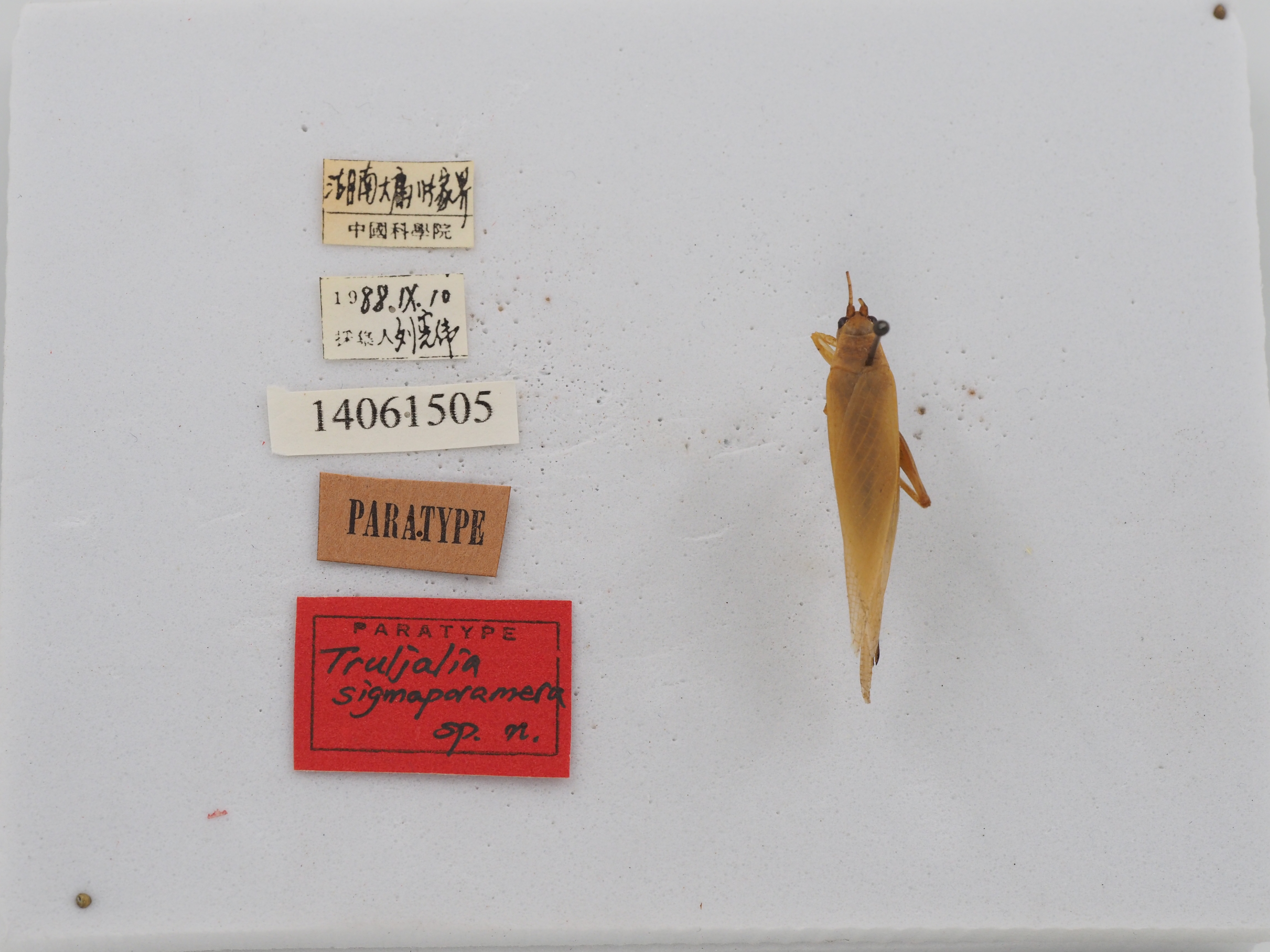 描述:雄性:体型中等。头小,几乎不宽于前胸背板前部,背面少平坦。额突狭于触角第1节的宽。复眼水平向延长,弱地突出。单眼大,中单眼凹陷,侧单眼稍突出。下颚须较短,第5节与第3节约等长,端部略扩大。前胸背板向后扩宽,前缘稍凹,后缘波曲形,侧隆线明显。表面具极弱的细皱,中缝甚明显,两边各具一新月形凹痕。足短,前足胫节基部稍膨大,内听器为裂缝状,外听器为卵圆形。后足胫节背面内缘及外缘各具5-7刺,外缘刺较内缘刺短,基部和刺间无细齿。前翅超过腹端。发音镜长与宽几乎相等,中央具一横脉分镜为二室;斜脉6-7条,3较长的斜脉为一组,近基部相连接;端域较长,横脉排列不规则;Sc脉具14-16近平行的分枝,Cu1脉具4-6分枝。后翅略微长于前翅。肛上板深裂成两三角形的裂叶,端部具钝圆,基部内侧各具一小附突。尾须细长,简单。下生殖板长略微大于宽,后缘平截。生殖器颇发达,阳茎端刺纵裂为两瓣,背面中部在阳茎背片钩状突后方具一小突起,背缘从侧面观呈圆形;阳茎外侧突侧观S形弯曲,端部具一长刺。体淡绿色或黄绿色。后头具4黑色短纵带,复眼后方具黄黑双色纵纹;触角为黄褐色,腹面为暗褐色。前胸背板侧隆线黄色,侧片前上角和后上角为具一小黑斑。前翅背部翅脉大部分暗色,后足胫节背缘刺及细齿端部暗色。雌性:前翅到达产卵瓣端部,Sc脉具13-15分枝,Cu2脉具9-11分枝。下生殖板横宽,端部具宽而深的凹口。产卵瓣于后足股节约等长,端瓣具颗粒状小突起。