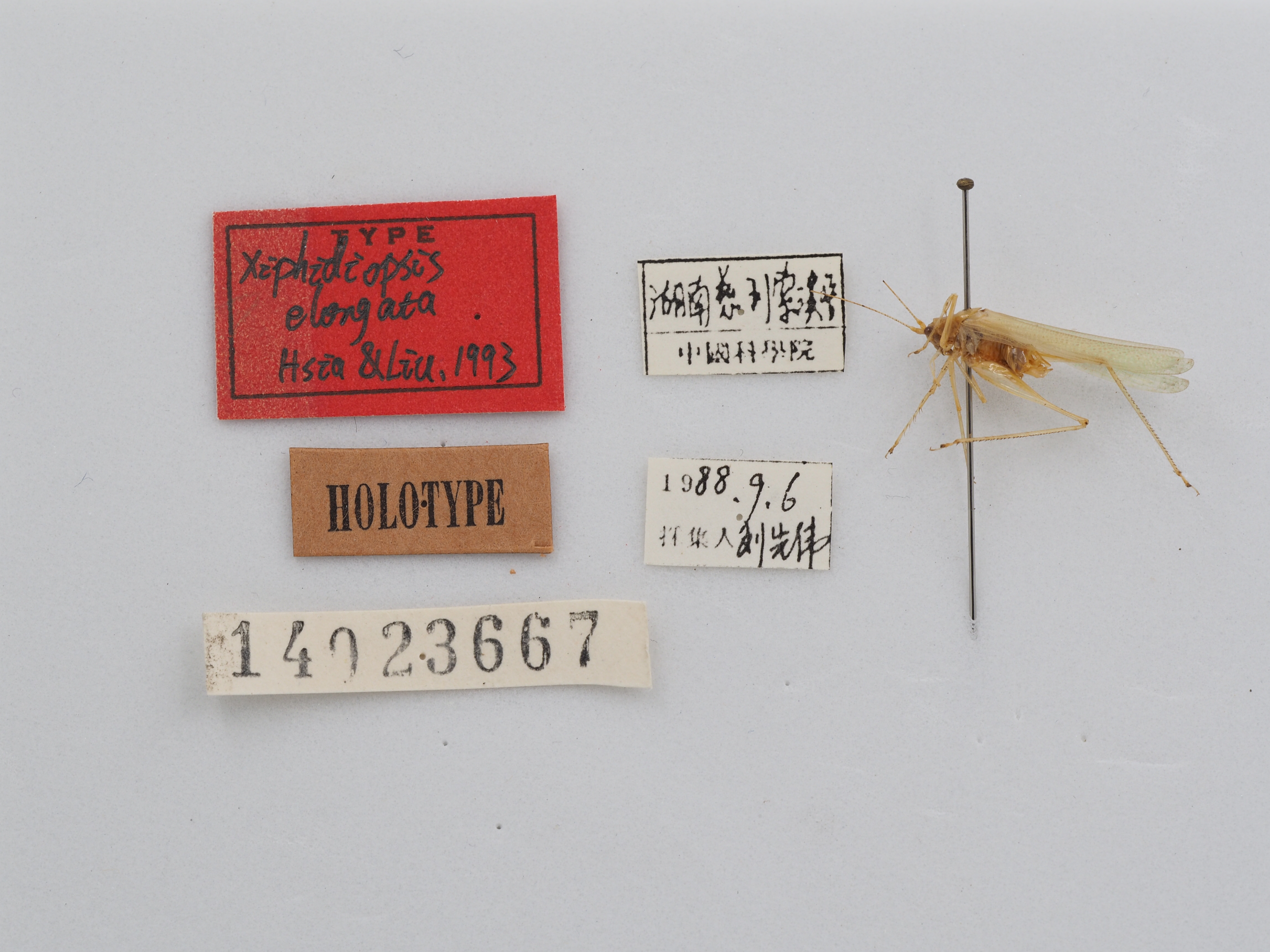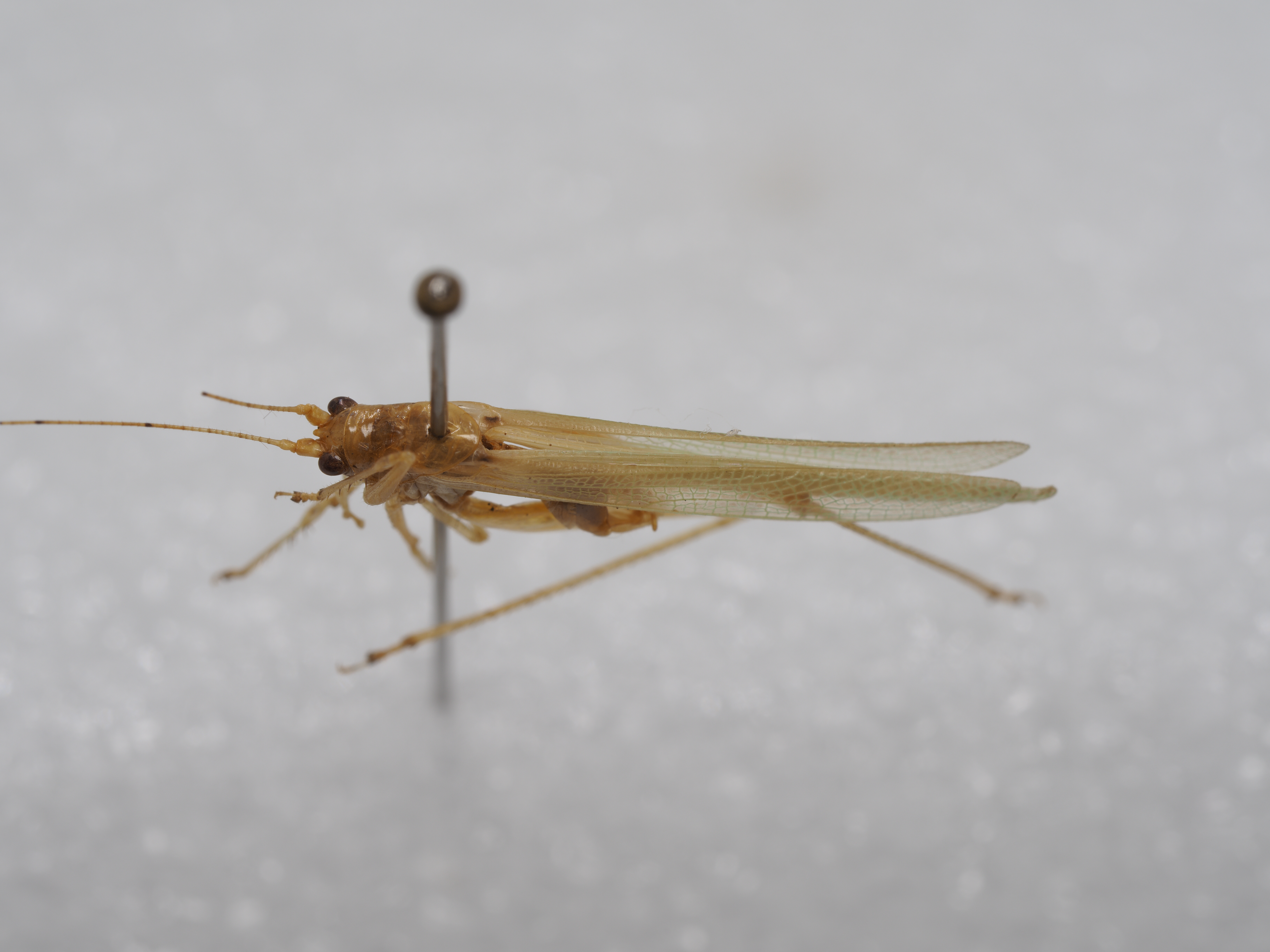 描述:雄性:体小形。头顶圆锥形,端部较钝,背面具沟。复眼圆形,突出。下颚须第5节与第4节约等长;端部稍扩大。前胸背板侧片后缀肩凹明显。前足基节具刺前足胫节腹面内、外刺排列形式为4,5(1,1)型后足胫节背面内援及外缘各具26-30小刺。前翅发达,颇远地超过后足股节端部后翅长于前翅。第10晚节背板后缘中部强向后延长,基部稍侧扁和隆起,其余部分扁平,侧缘下弯,顶端圆截形(图13a)腹面具一较大的突起,前端指向度方(图13b)。尾须基半部朝背应向扩宽,内部稍凹陷、内中部具斜置的附叶三尾须端半部趋细,向内上方弯曲。下生殖板较小,后缘稍凸形腹刺较短粗,位于后缘两侧。