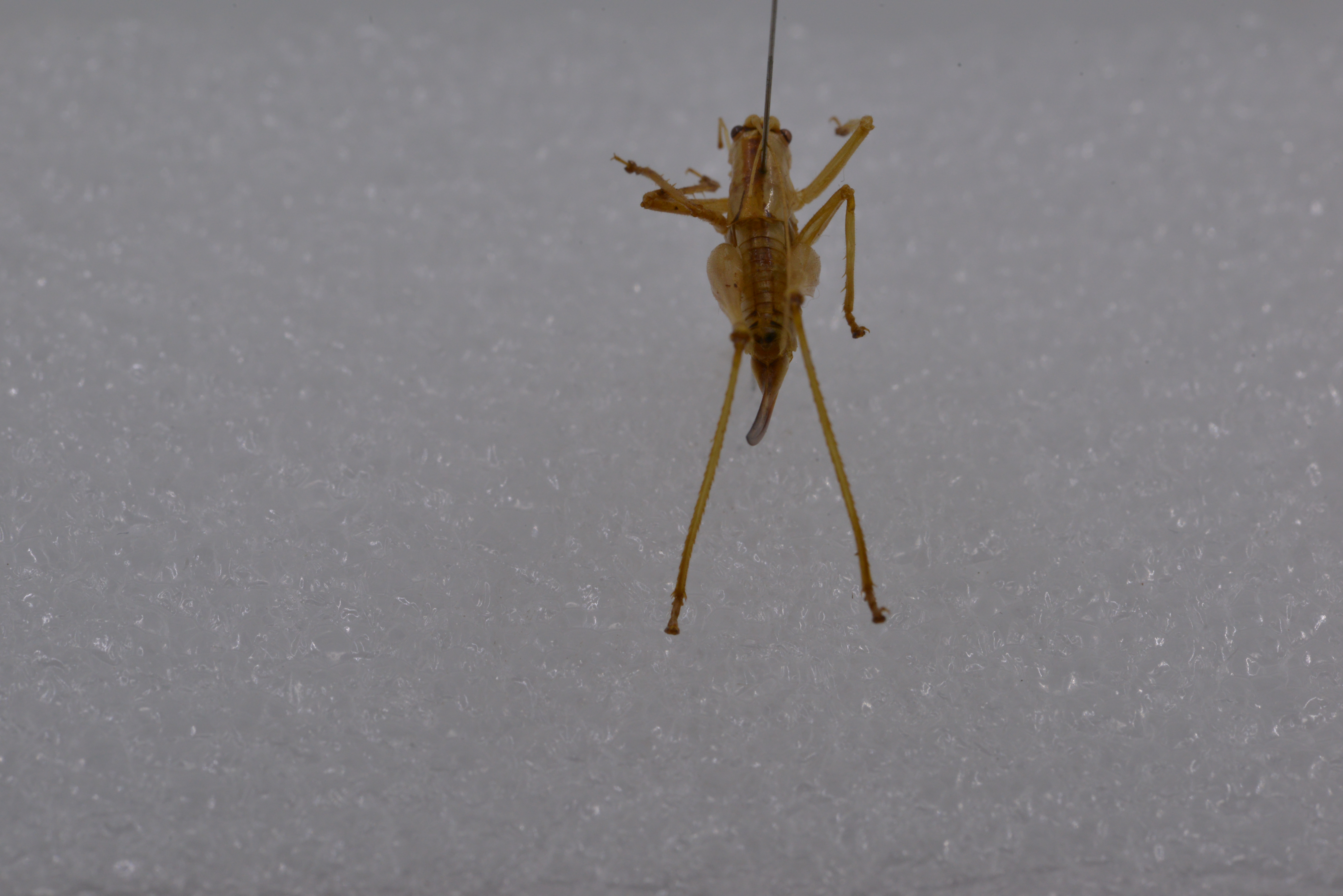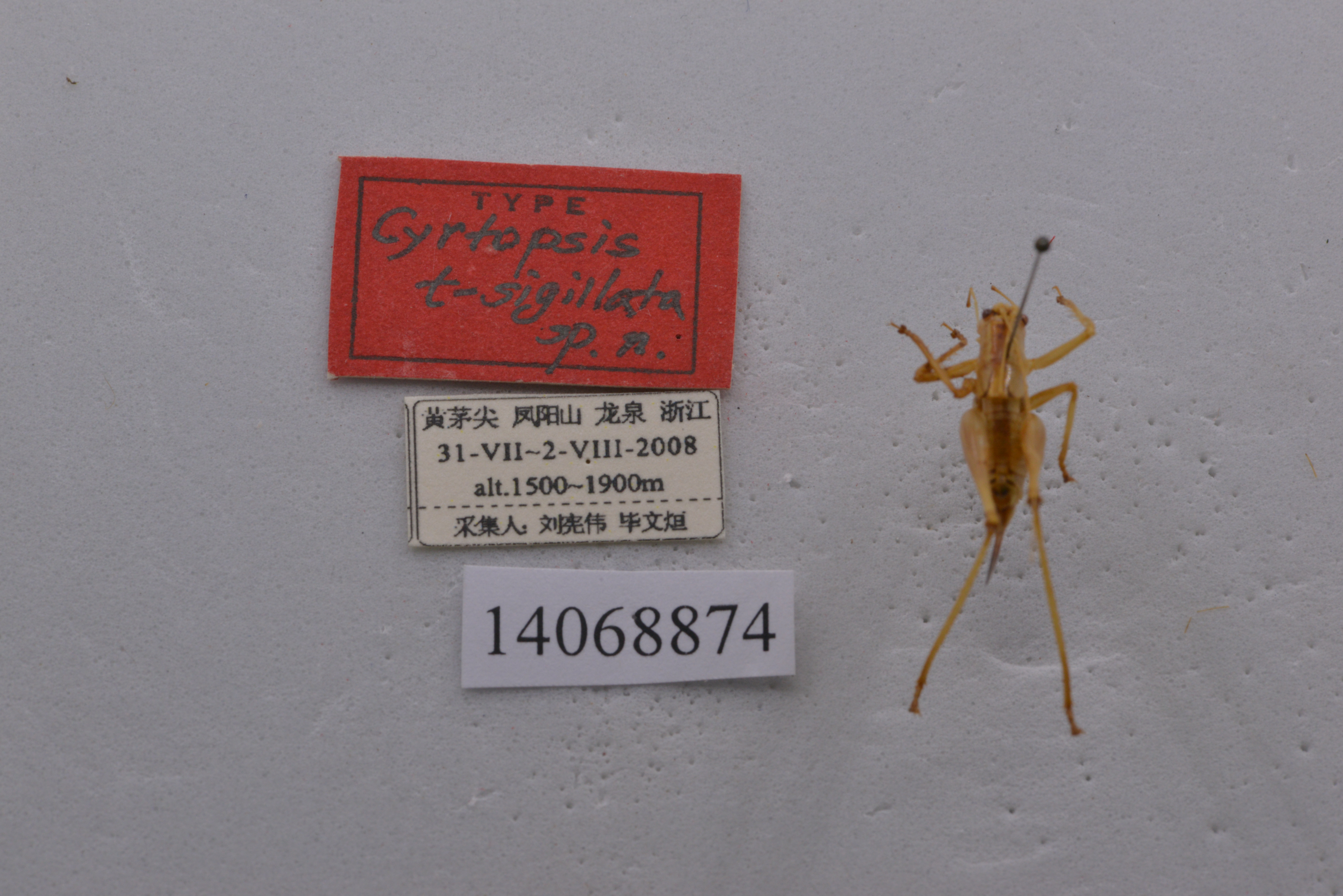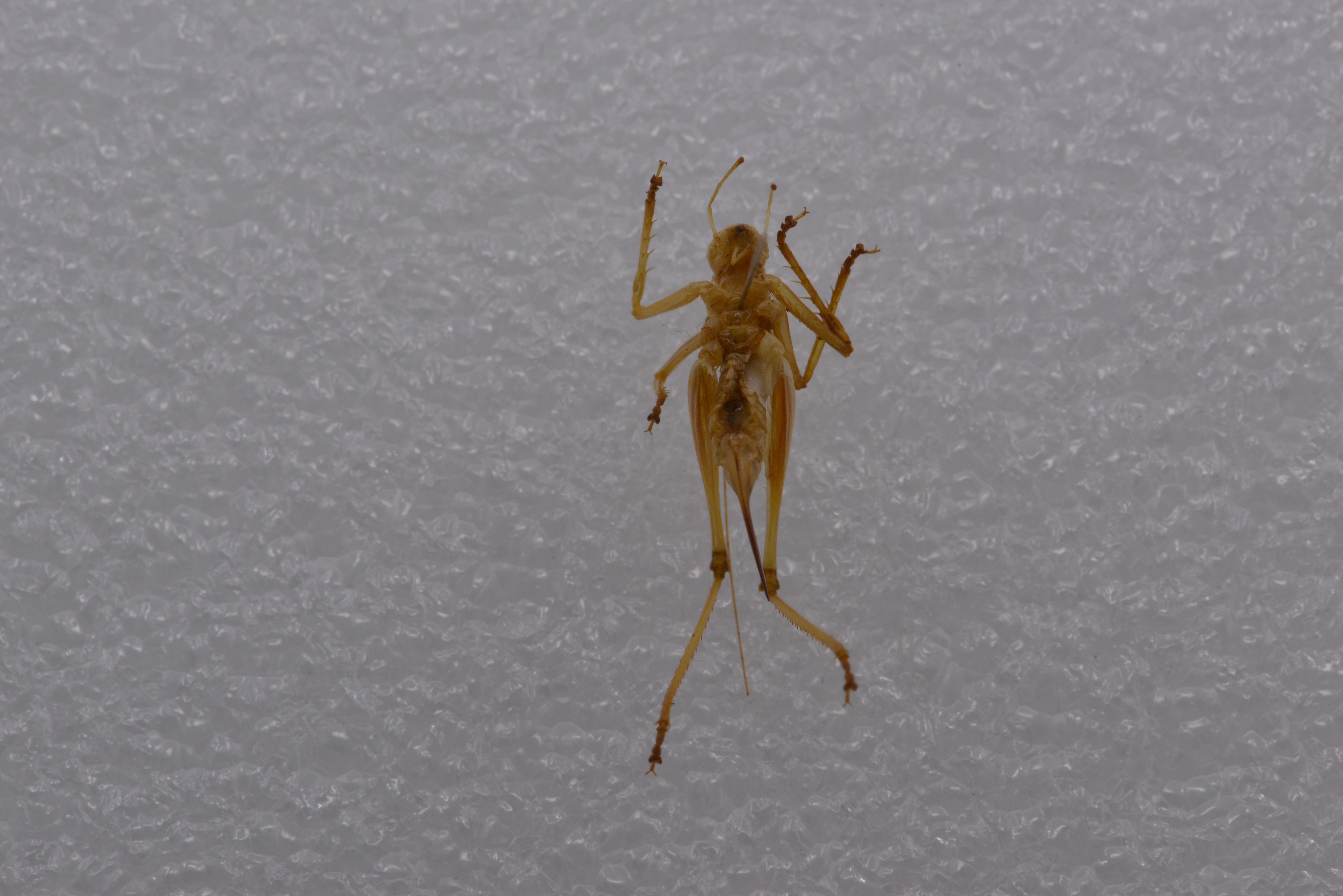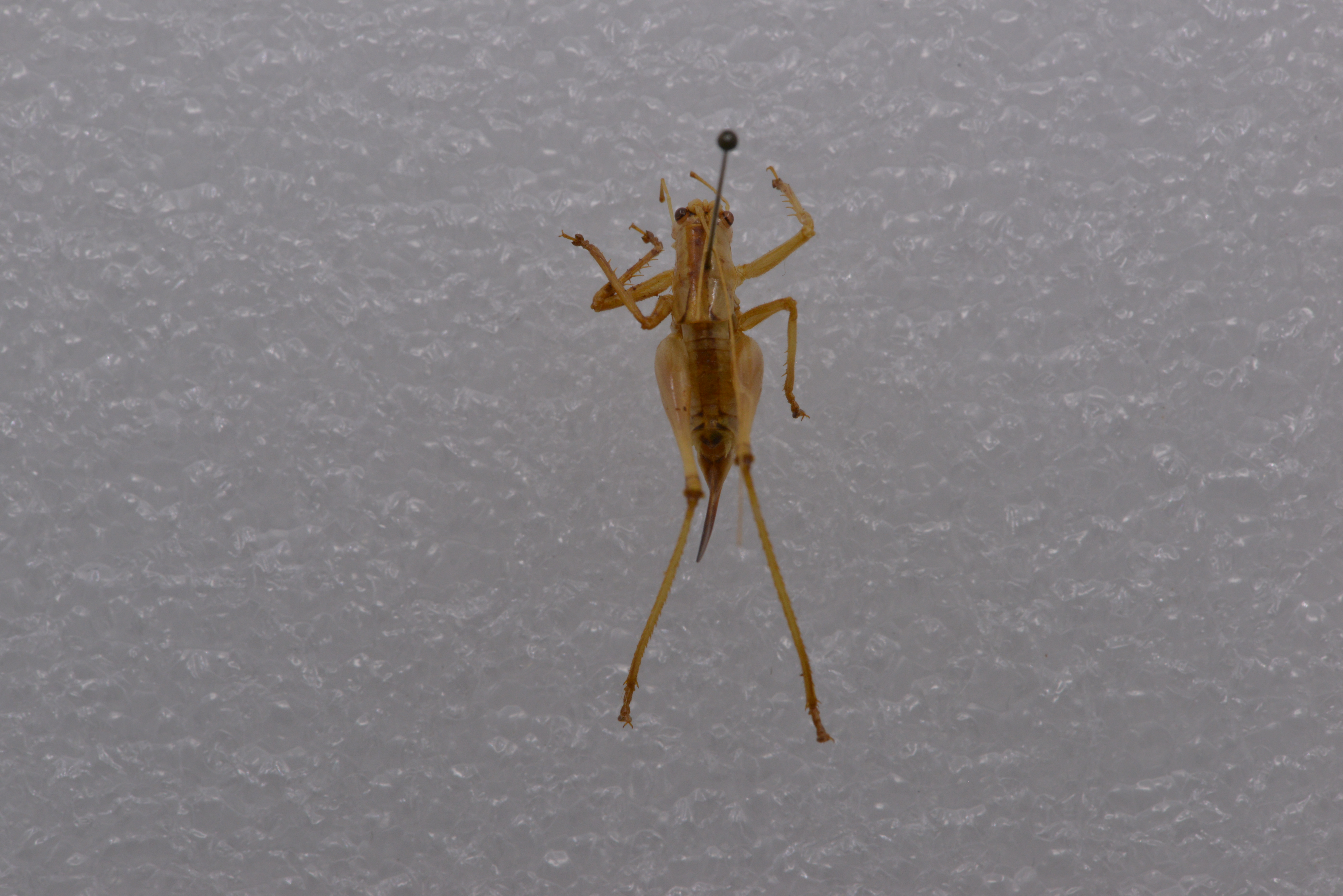 描述:雌性 体形较结实。头顶圆锥形,背面具沟。下颚须端节略微长于亚端节,复眼圆形突出。前胸背板沟后区不隆起,侧片较低,无肩凹。前翅完全隐藏于前胸背板之下,内缘相互重叠。前足胫节腹面刺排列为4,4(1,1)型,内、外两侧听器均为开放型,后足股节膝叶具端刺,后足胫节腹面具2个端距,背面内外缘各具23~27个刺。第9腹节背板两侧明显向后延伸,第10腹节背板后缘钝角形,背面具一对纵隆起。肛上板圆三角形,尾须短,圆锥形。下生殖板横宽,半圆形,端部微截形。产卵瓣较短宽,边缘光滑。