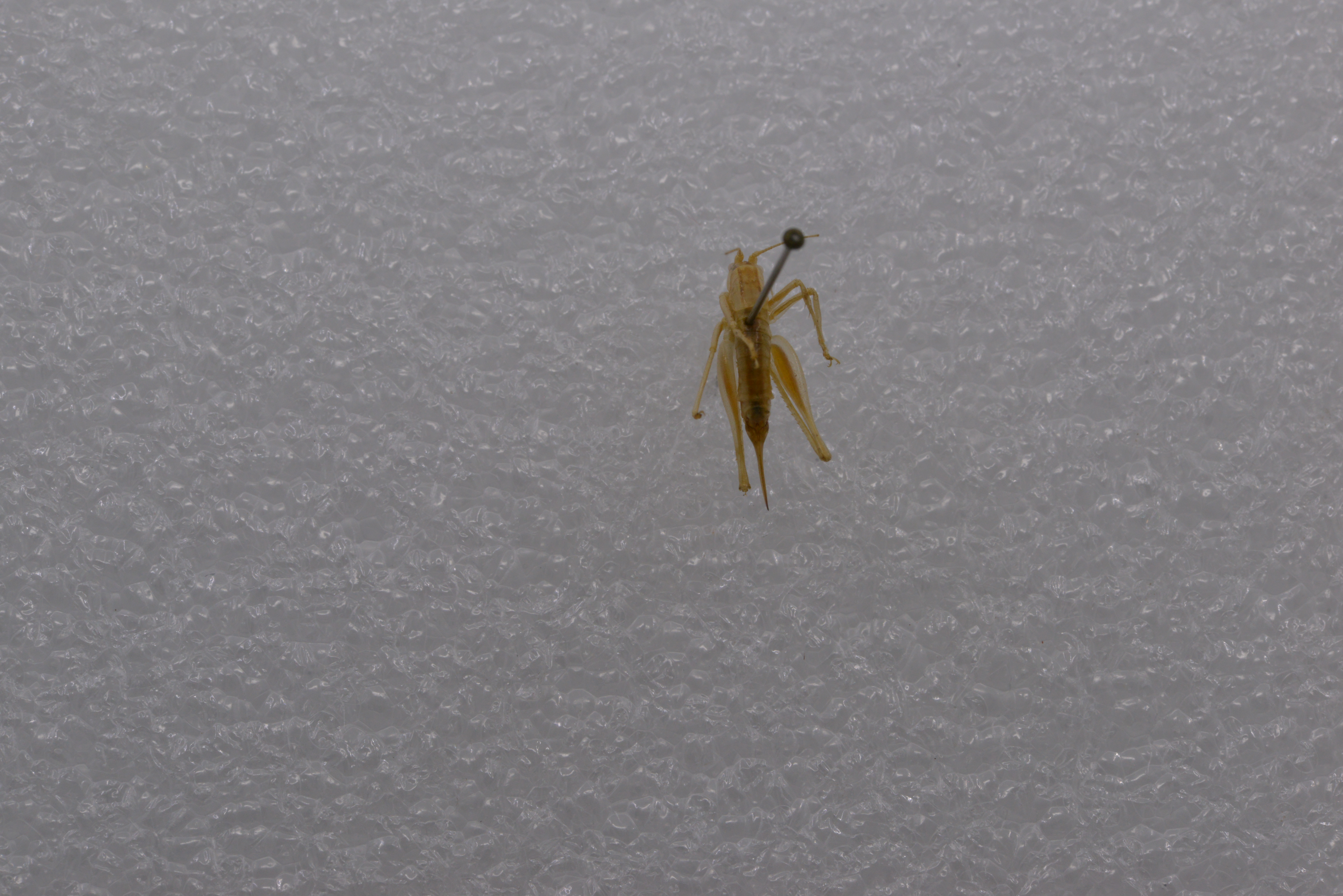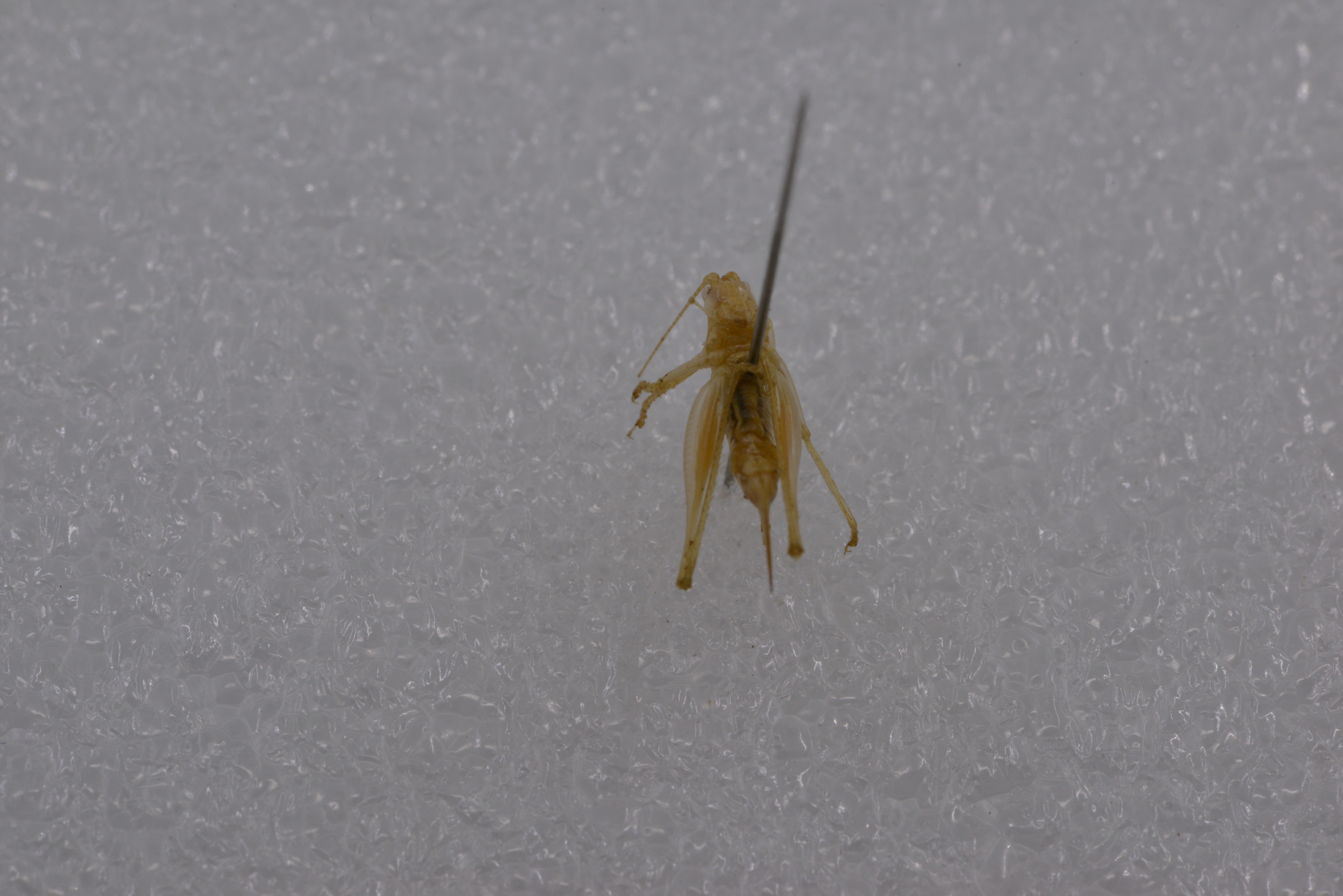 描述:雄性:体形较小,结实。头顶圆锥形,背面具沟。下颚须端节略微长于亚端节,复眼圆形突出。前胸背板沟后区不隆起,侧片后部略扩宽,无肩凹。前翅完全隐藏于前胸背板之下。前足胫节腹面刺排列为4 4( 1,1)型,内、外两侧听器均为开放型,后足股节膝叶无端刺,后足胫节具子蕃端距;,背面内外缘各具22~24个刺。第10腹节背板后缘形成两三角形的裂叶,肛上板略突出。尾须较细长,简单。下生殖板后缘微凹口和具成对的腹突。