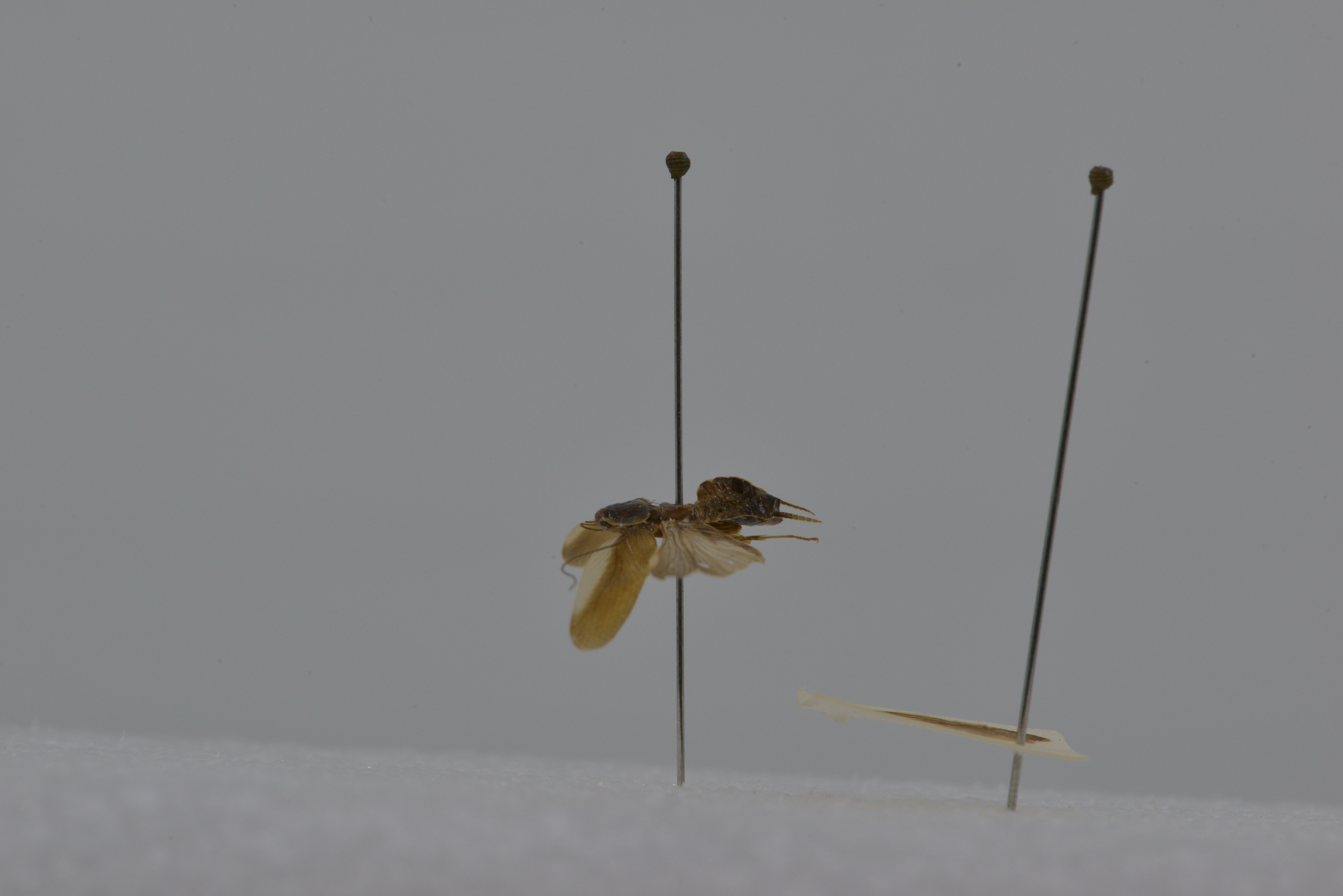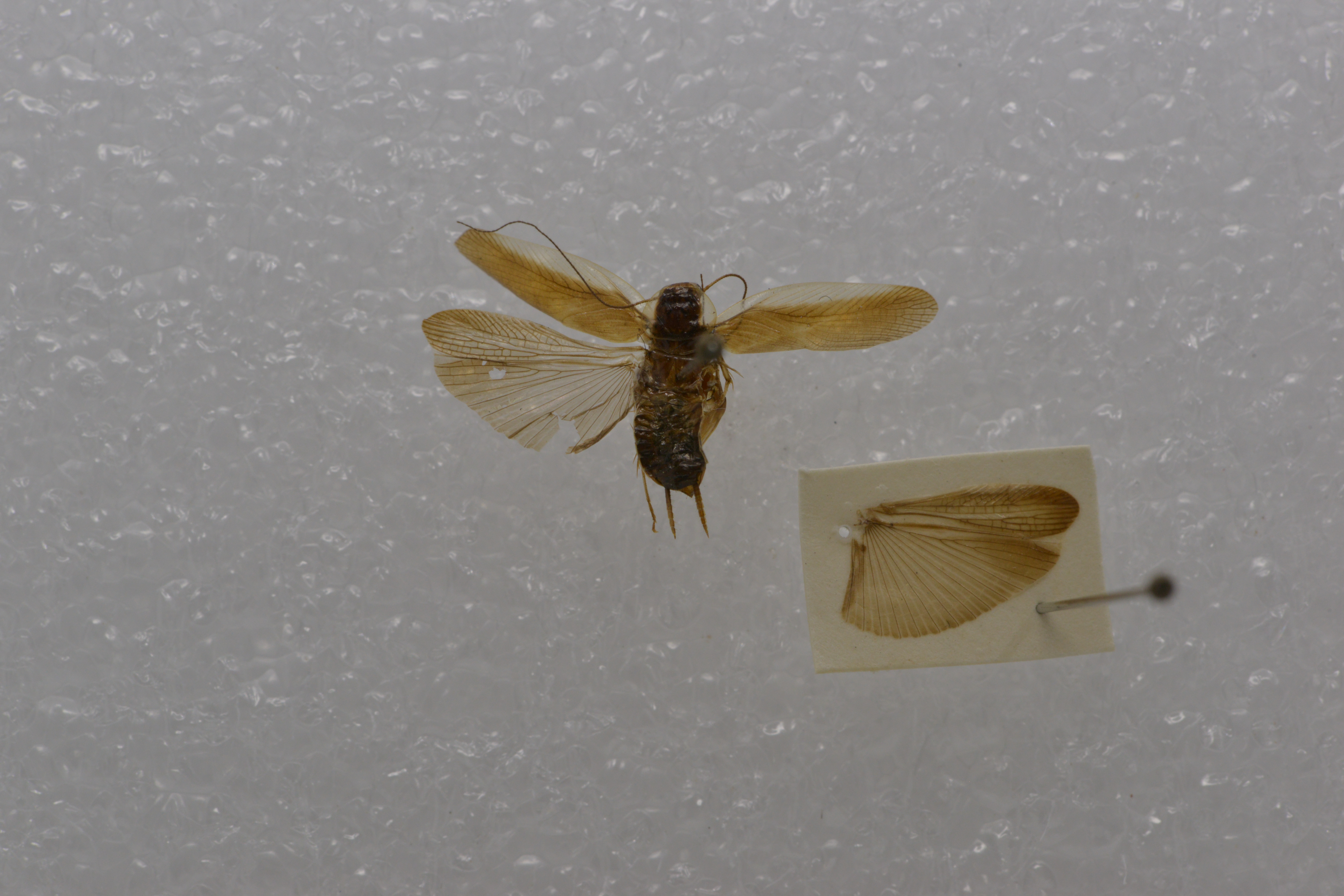 描述:雌性 体小形。头顶略微或几乎不露出前胸背板。前胸背板稍横宽,前缘微平截,后缘宽圆。前和后翅均发达。前翅超过腹端,后翅CuA脉具3-4根完整的分枝,端三角较明显。前足股节前腹缘刺为B3型,后足跗节基节约等于其余节之和,腹面具两列细刺,具跗垫,爪对称,简单,中垫发达。第1和第7腹节背板不特化。肛上板较短,横宽,后缘宽圆,中央微尖(图141b)。尾须较长。下生殖板宽大,端部尖形突出。