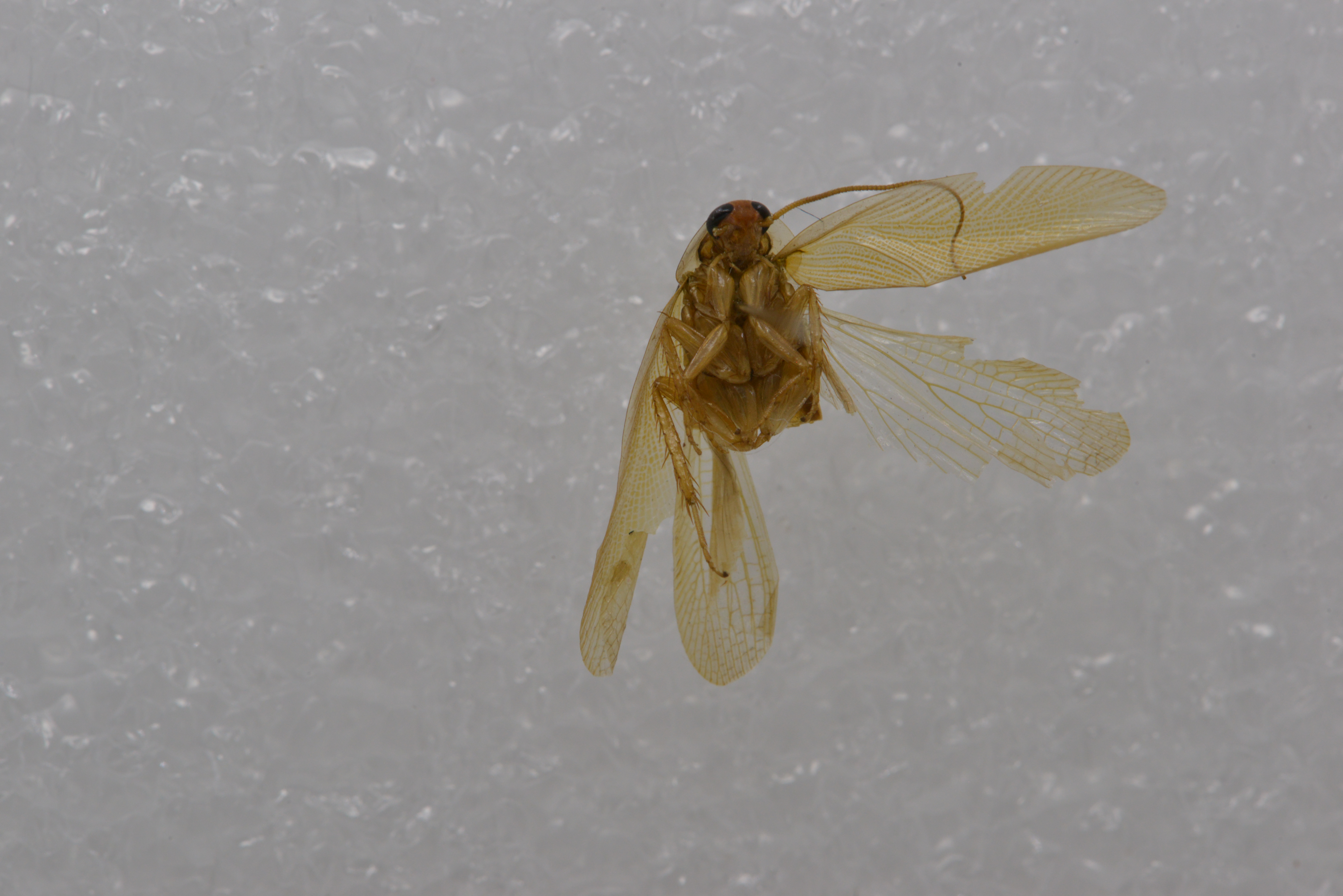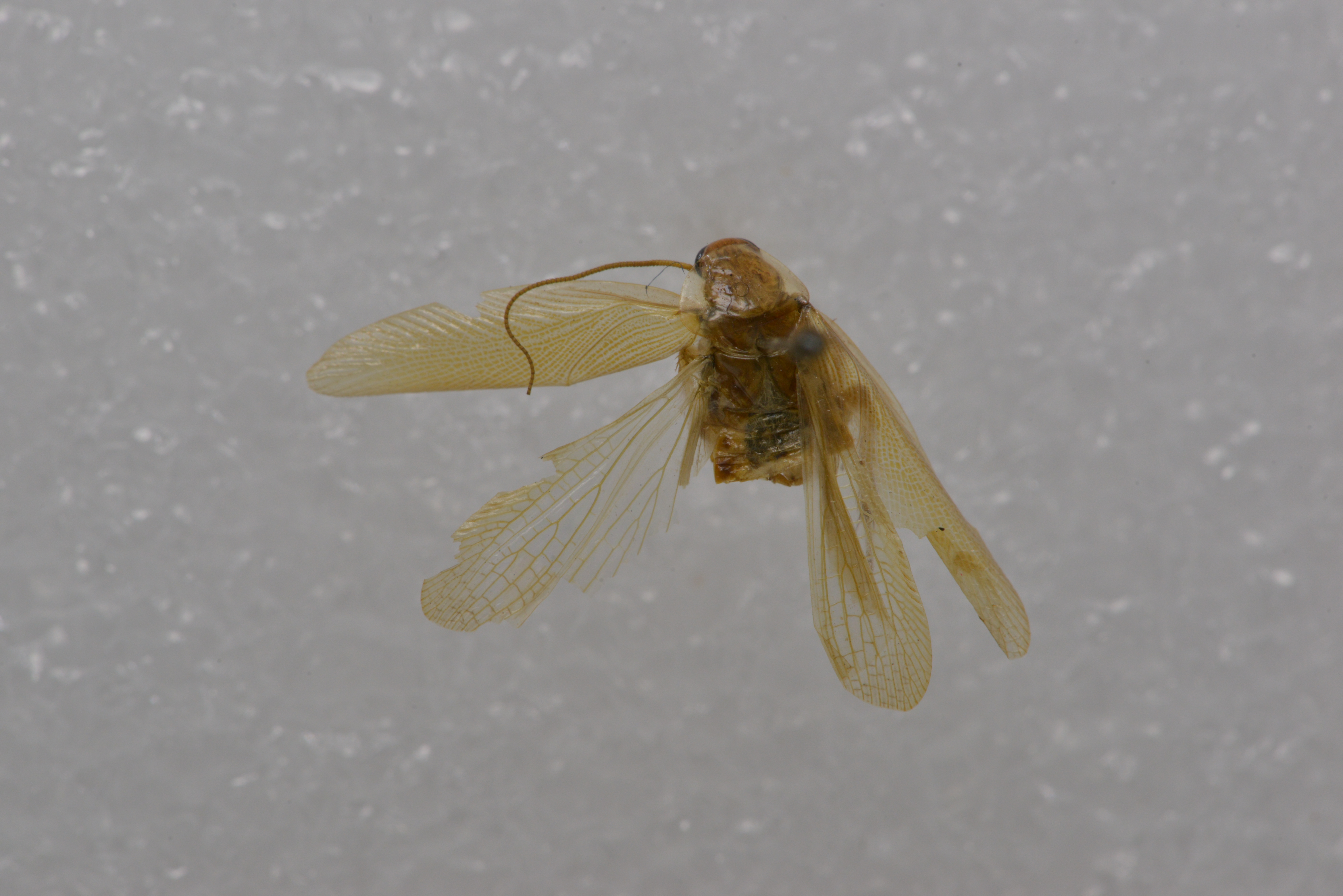 描述:雄性 头顶外露,复眼间距略宽于单眼间距,下颚须端节几乎等长于亚端节。前胸背板横宽,两侧透明。前足股节前腹缘刺为C2型,中足和后足股节端部具1根长的膝刺,腹面多刺。跗节基节略微长于其余节之和,腹面具2列细刺,爪不对称,中垫发达。前翅远超过腹端,M和CuA脉的分枝朝翅的后缘延伸。后翅CuA脉具3-4根完整的分枝,端三角区较明显。腹节背板不特化,肛上板横宽,后缘中央稍突出,肛侧板几乎对称。下生殖板稍不对称后缘中央深裂,腹面被细刚毛;腹突较长,圆柱形。外生殖器左阳茎狭长,端部具2枝,外枝基部具1个小的内齿(图165b); 中阳茎端部多刺(图165c)。