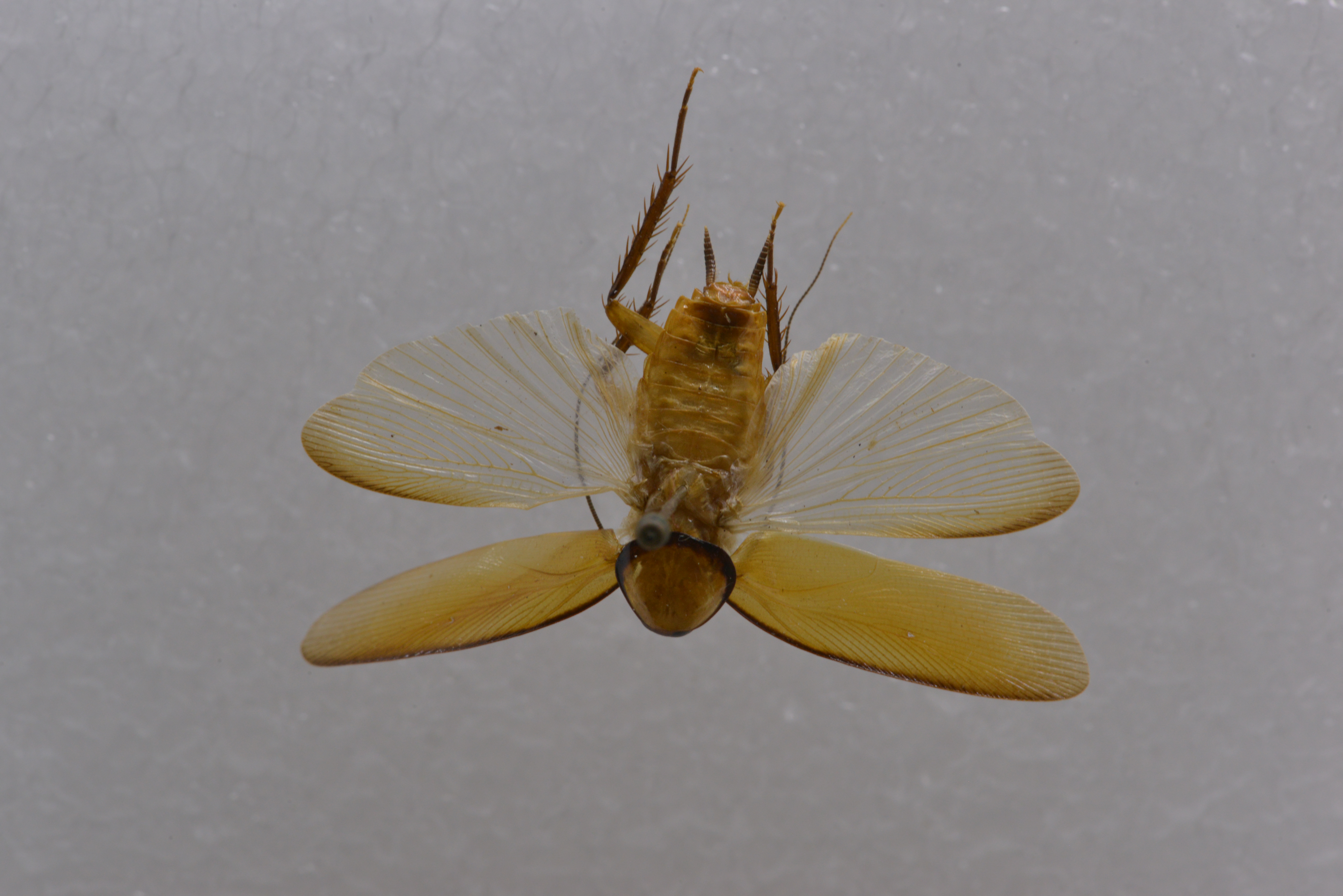 描述:雄性 体小形。前后翅发育完全;后翅CuA脉具5根完全3根不完全分枝;端三角小。前足股节前腹缘刺式A3型。第1腹节背板和第7腹节背板不特化。肛上板对称,后缘中央具浅凹缘(图125b)。肛侧板不对称(图125c)。下生殖板不对称,左侧稍突出圆角,端部具刺(图125d)。腹突端部钝形。中阳茎叶端部具4个刺状突起(图125e)。
