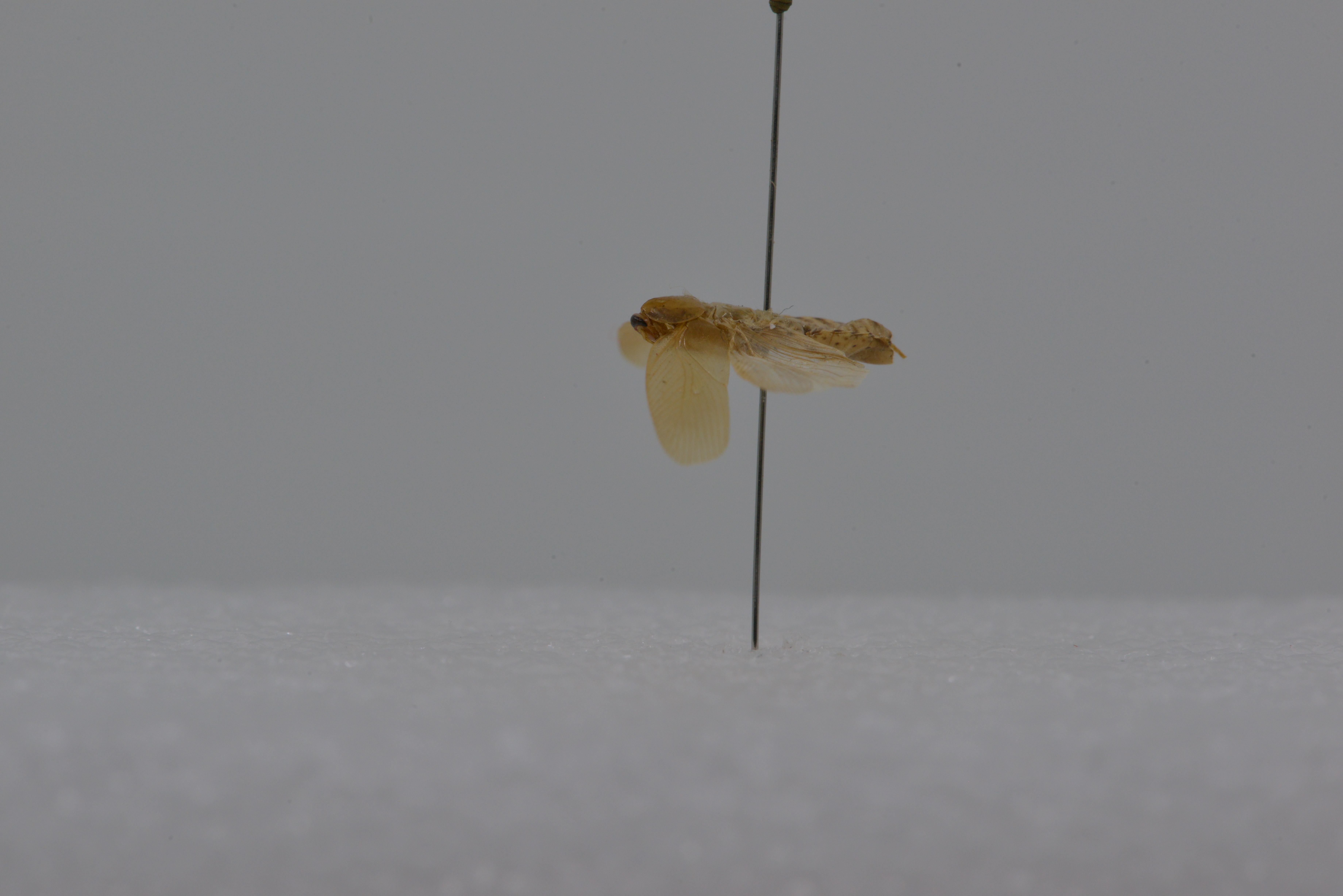 描述:雄性 体较小。头顶稍露出前胸背板。复眼间距略宽于单眼间距。前胸背板横宽,透明。前翅超过腹端,Rs脉从R脉中部之后分出,具分叉;M + CuA脉具4根分枝;后翅R脉的分枝端部膨大,M脉简单,CuA脉具4-5根分枝(图145a), 第3或第4分枝具分叉;端三角明显。前足股节前腹缘刺为B3型,后足跗节基节约等长于其余节之和,爪对称,具中垫。第8腹节背板中央具毛簇。肛上板横宽,后缘宽圆。肛侧板。尾须较长,腹面具毛。下生殖板不对称,亚缘具1条微凹的隆线(图146b),后缘弧形,向上卷曲(图146c)。腹突长,基部略侧扁,其间距略大于腹突长度。外生殖器中阳茎和副中阳茎端部具刷毛,左阳茎具1个刺状突起(图146e),右阳茎钩状。
