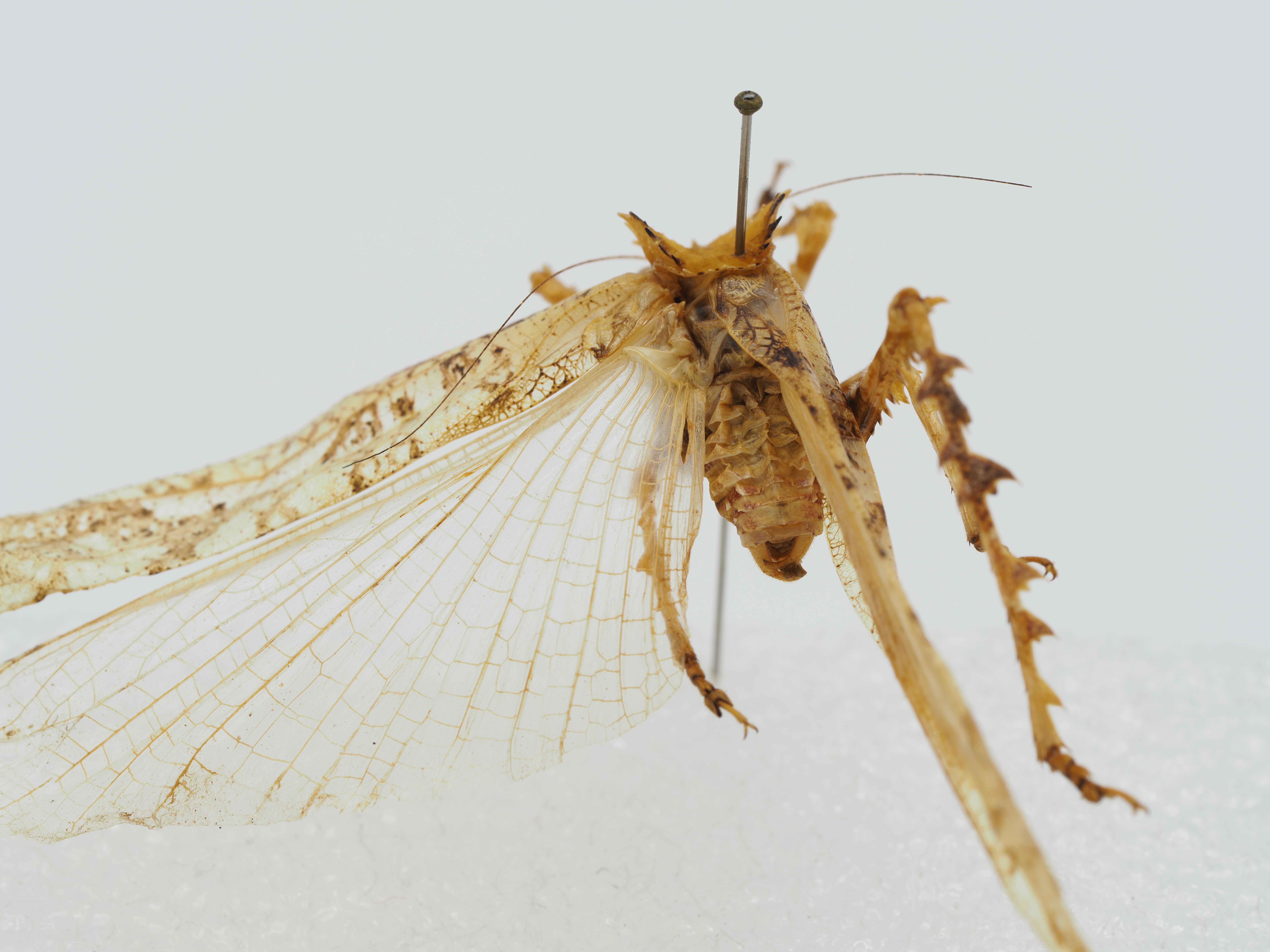 棘刺;侧叶长大于高,肩凹不明显。前后翅均发达;前翅具弱光泽,半透明;较狭窄,