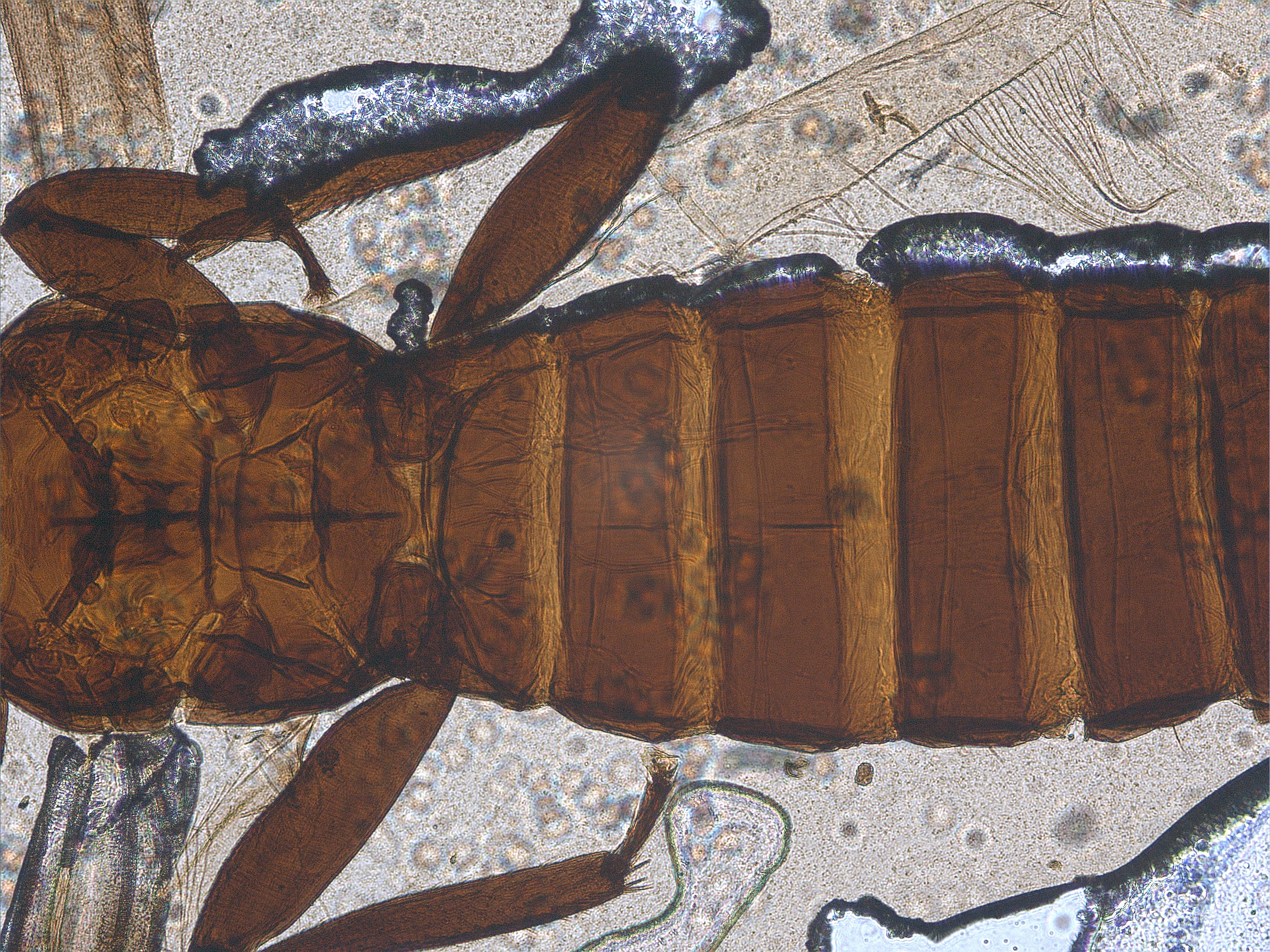 描述:雌虫:相似于雄虫;腹部节IX背板有长鬃3对,腹板节II有后缘鬃3对,节III-VII后缘鬃4对;节VII有一囊状生殖孔;节VII后缘中对鬃间距大于内II对鬃与中对鬃间距,副鬃2对,位于中对鬃与内II对鬃之间;产卵器伸达节XI端部。