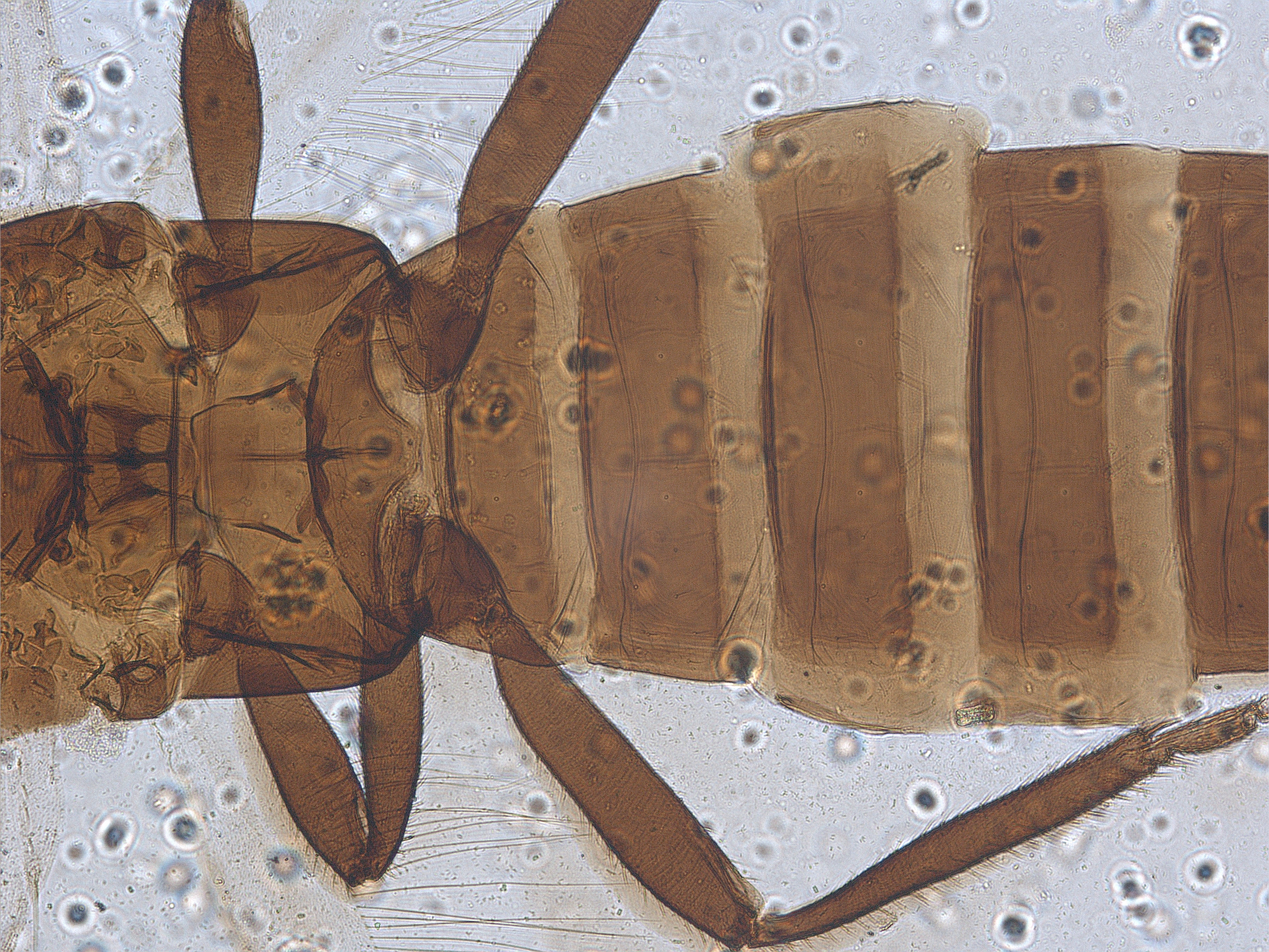 描述:雌虫:相似于雄虫;腹部节IX背板有长鬃3对,腹板节II有后缘鬃3对,节III-VII后缘鬃4对;节VII有一囊状生殖孔;节VII后缘中对鬃间距大于内II对鬃与中对鬃间距,副鬃2对,位于中对鬃与内II对鬃之间;产卵器伸达节XI端部。