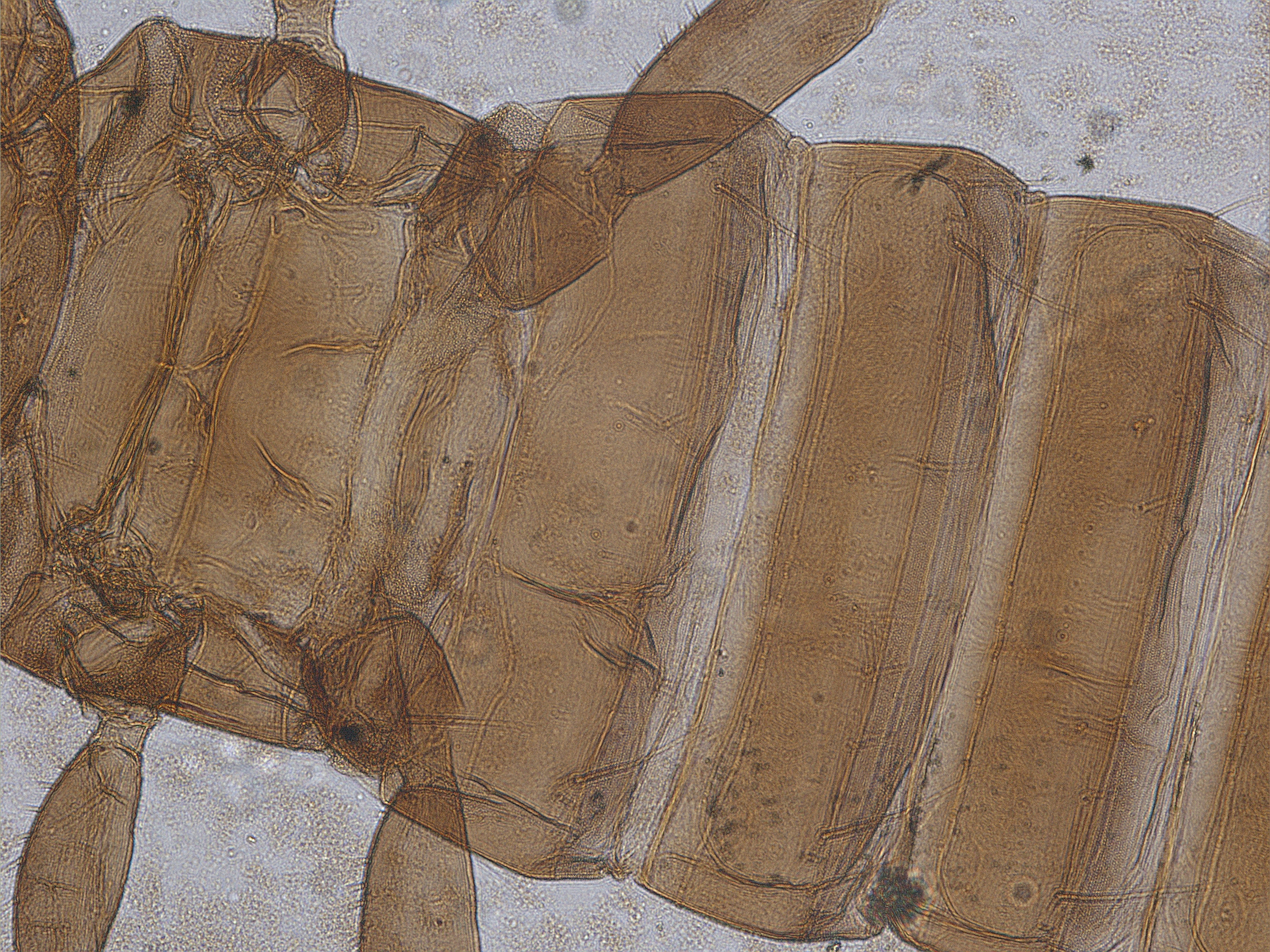描述:雄虫(无翅型) 相似于雌虫;但体色较淡,前足跗节具强齿;跗节VIII腹板具横腺域,近端部向前延伸,至气门处。