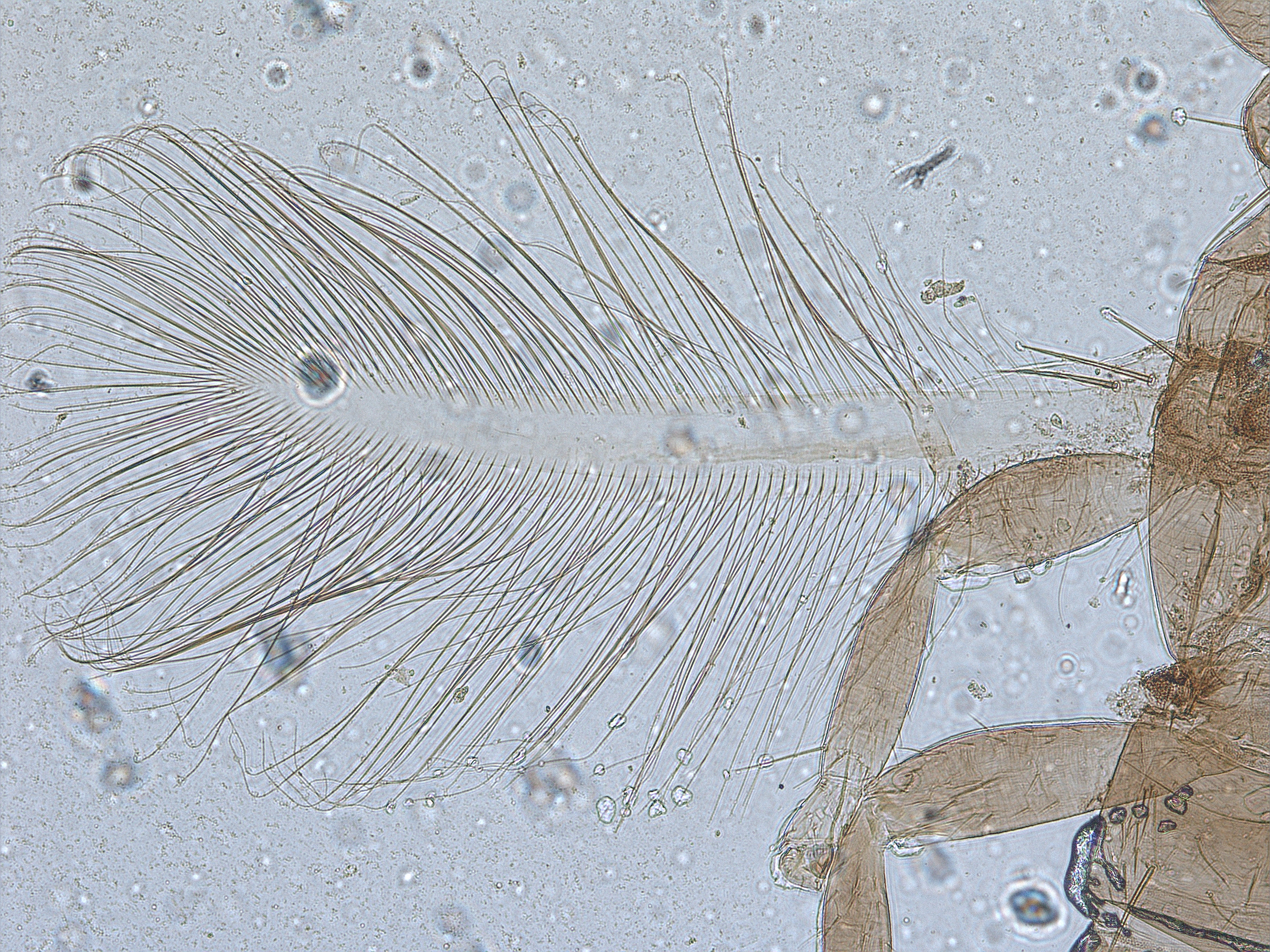 描述:雄虫(长翅型) 相似于雌虫;但体较小;腹部节IX背板后缘鬃II甚短于对I和对II。