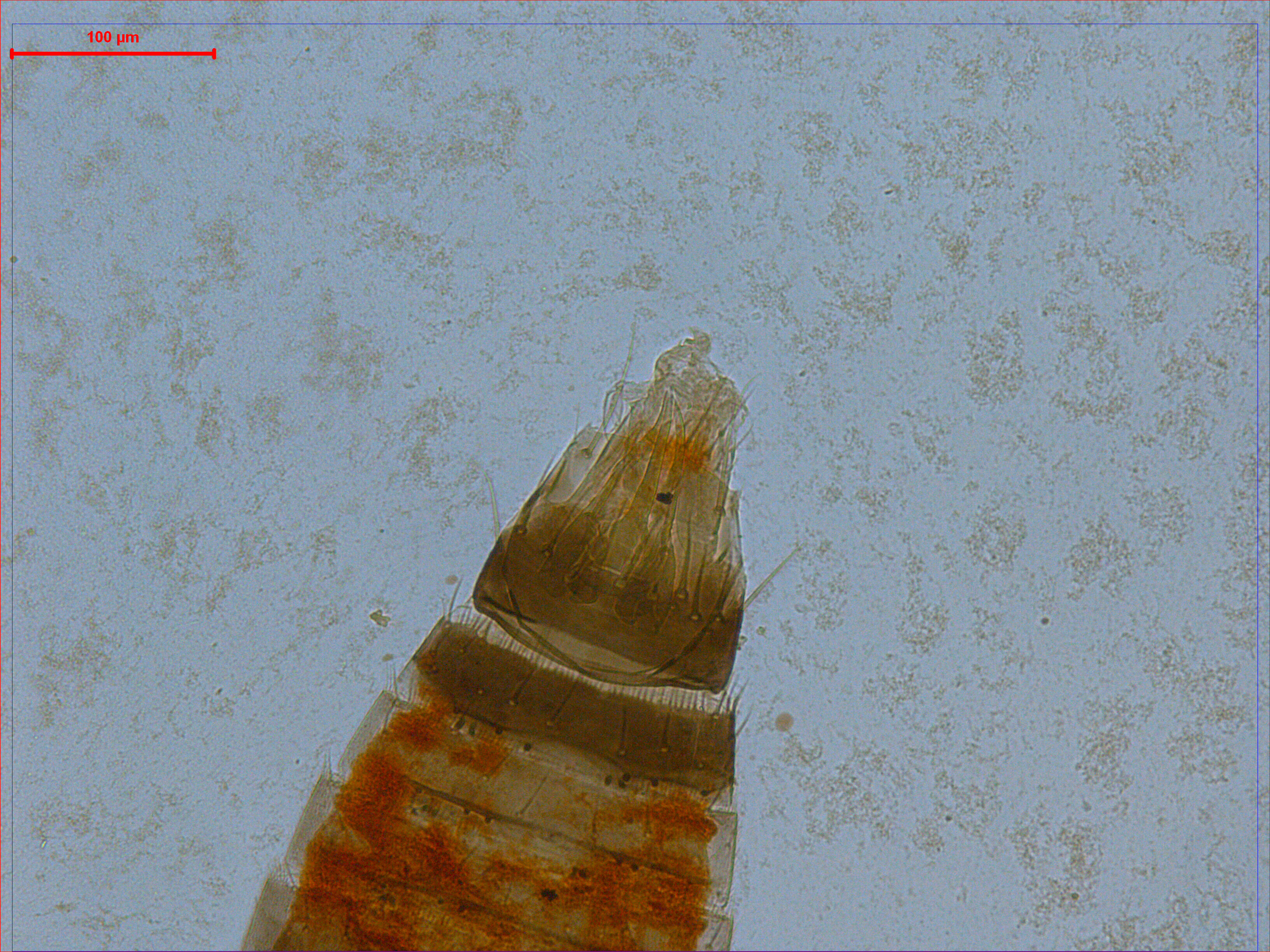 描述:雄虫:体色及一般形态近似于雌虫,但腹部较细,节VIII背板后缘梳中部退化,背板鬃大致为一横列;腹板无腺域,节VIII后缘鬃着生在后缘上。